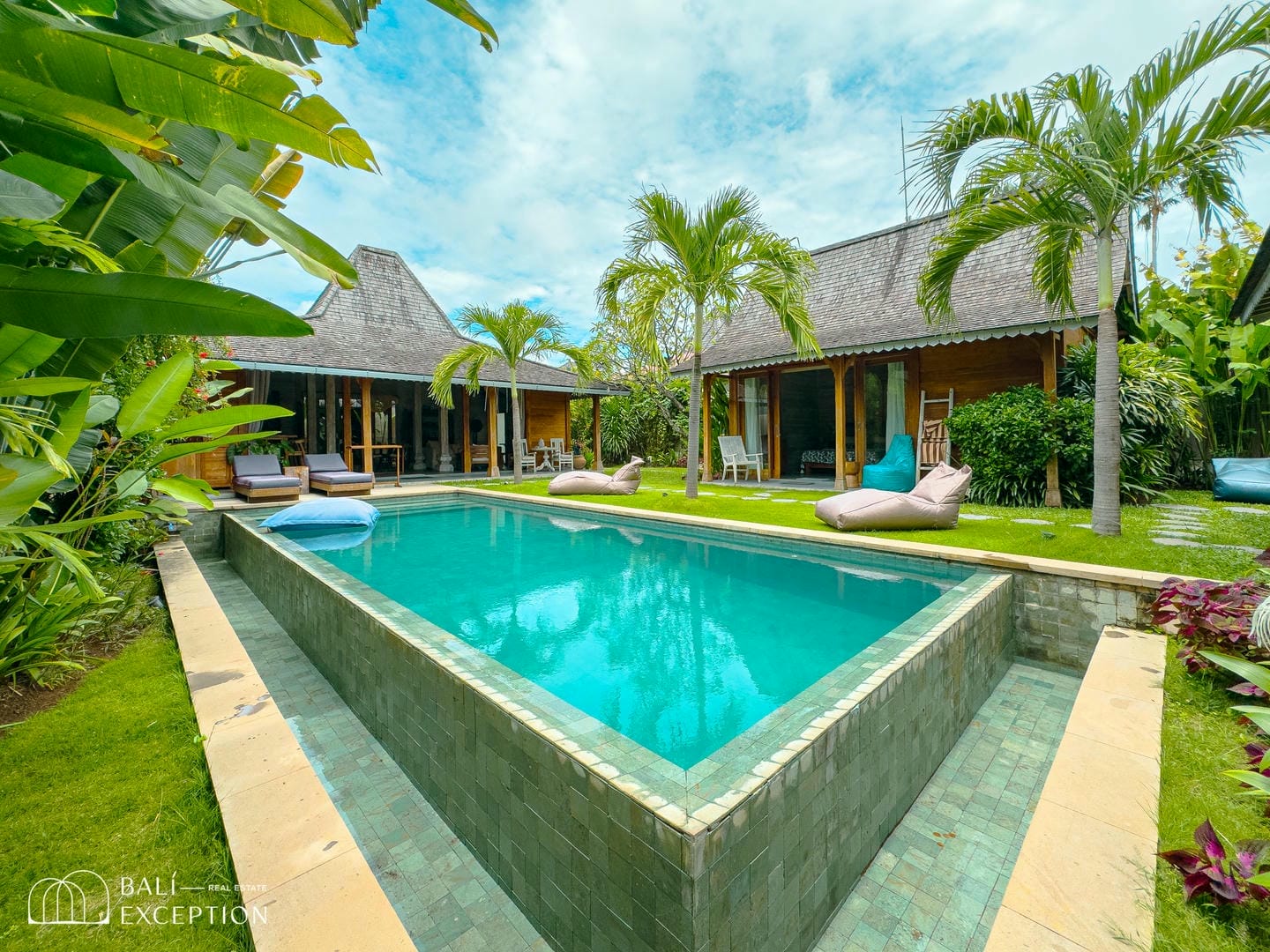 Cette villa allie le charme balinais à un design tropical, sublimé par des touches de bois chaleureux qui créent une atmosphère naturelle et accueillante. Entièrement meublée et équipée d’une cuisine complète, elle offre confort et fonctionnalité. Le séjour lumineux, entouré de grandes fenêtres, laisse entrer abondamment la lumière naturelle pour une ambiance aérée et apaisante. Répartie sur deux étages, la villa comprend trois chambres avec salles de bains attenantes, idéale pour y vivre ou pour un investissement locatif.