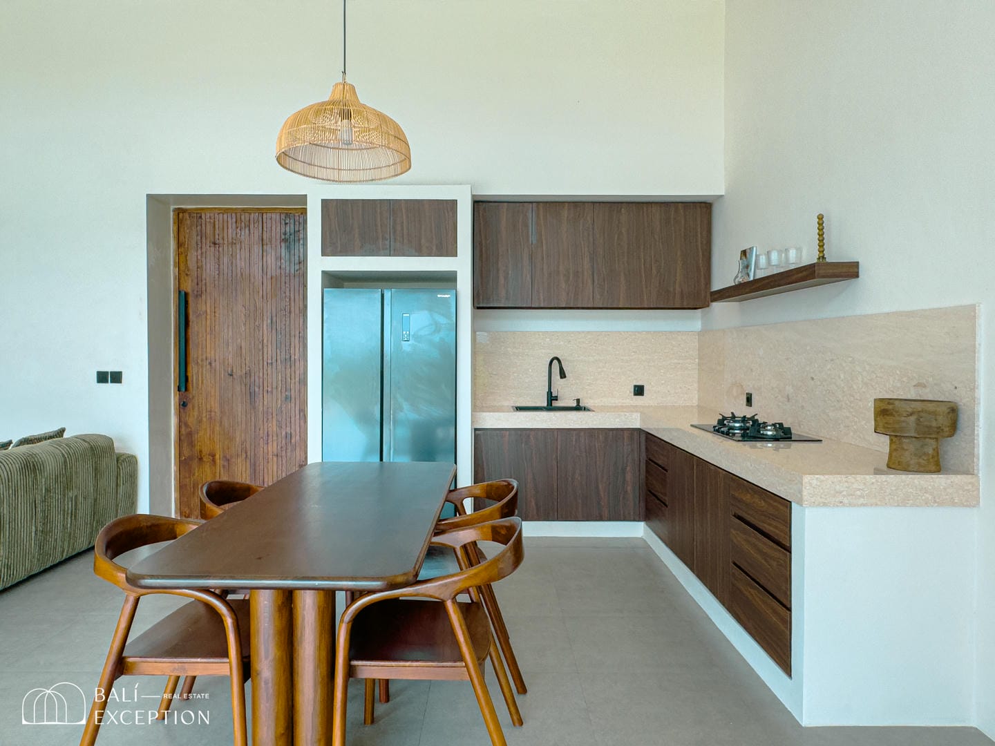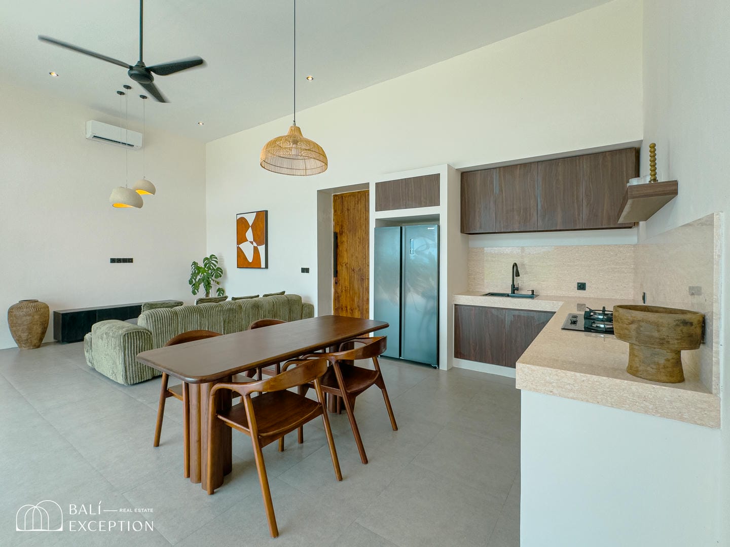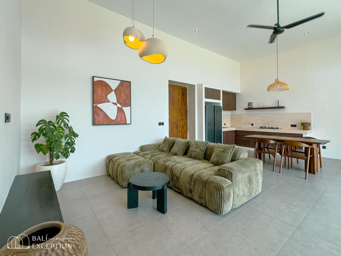 Entrez dans ce sanctuaire où l'élégance se marie avec le confort. Dotée d'intérieurs modernes et tropicaux, de deux chambres avec salles de bains attenantes et d'un ameublement complet, cette villa offre une retraite sereine. Le cœur de la maison comprend une cuisine entièrement équipée et un coin repas confortable parfait pour les repas partagés. Les hauts plafonds et les fenêtres spacieuses inondent l'espace de lumière naturelle, créant une atmosphère lumineuse et aérée.