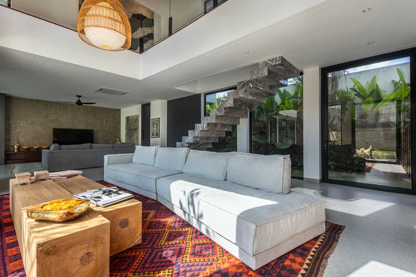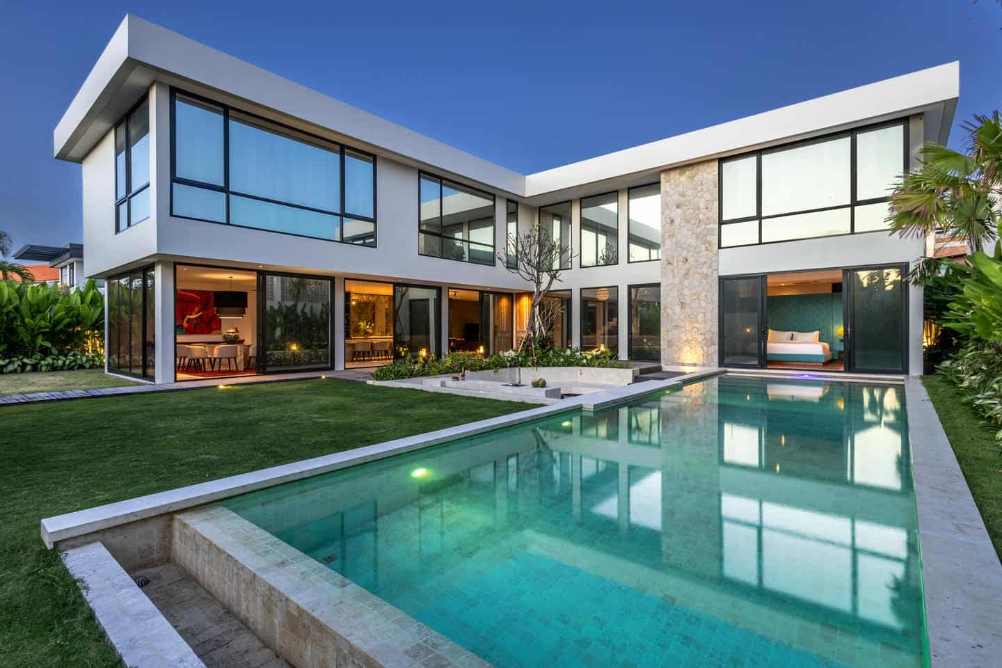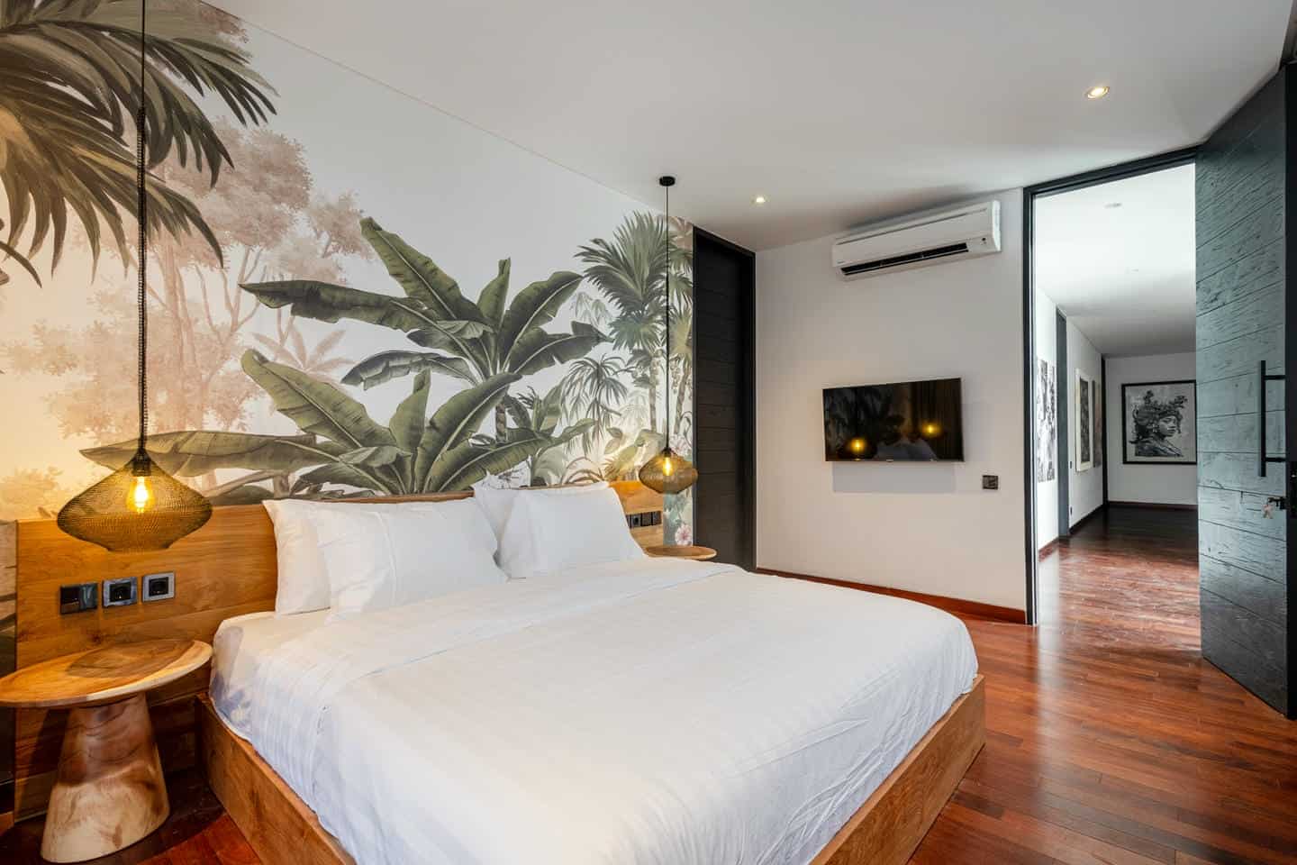 Nichée au cœur d’Umalas, cette villa captivante offre un mélange parfait de luxe moderne et de commodité. Son emplacement privilégié garantit que vous n’êtes qu’à quelques minutes de l’énergie vibrante des cafés, des restaurants, de la plage et d’une école internationale réputée. Cette villa entièrement meublée dispose de 5 chambres et 6 salles de bains. Le rez-de-chaussée vous présente la chambre principale avec vue sur la piscine fascinante. La villa dispose à la fois d’une cuisine bar ouverte et d’une cuisine humide pratique, assurant le plaisir culinaire des résidents. En montant au premier étage, découvrez quatre chambres judicieusement agencées, stratégiquement placées pour un agencement cosy idéal pour les chambres d’enfants. Sortez vers une piscine de 67 m², complétée par des canapés et des chaises encastrés – un endroit idéal pour se détendre et se prélasser au soleil. La conception réfléchie s’étend à une salle du personnel, une buanderie et un espace de rangement, garantissant une expérience de vie fluide. Adoptez le mélange harmonieux d’élégance moderne et de confort dans cette villa d’Umalas – votre retraite idéale pour une vie de famille sereine.