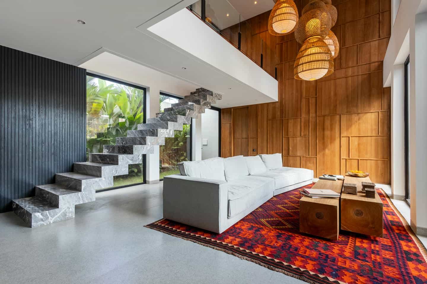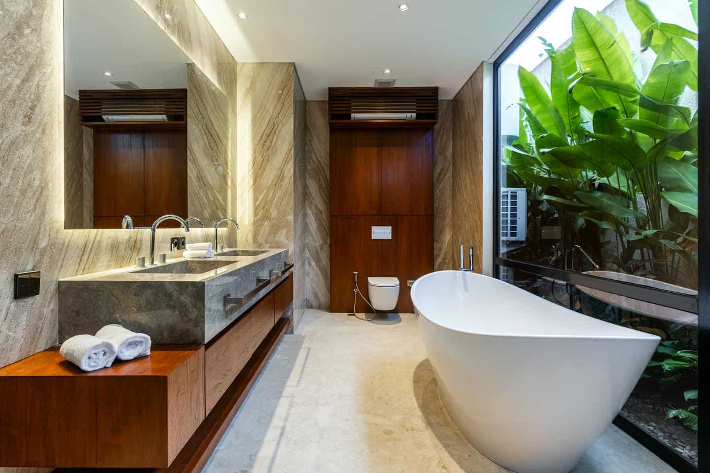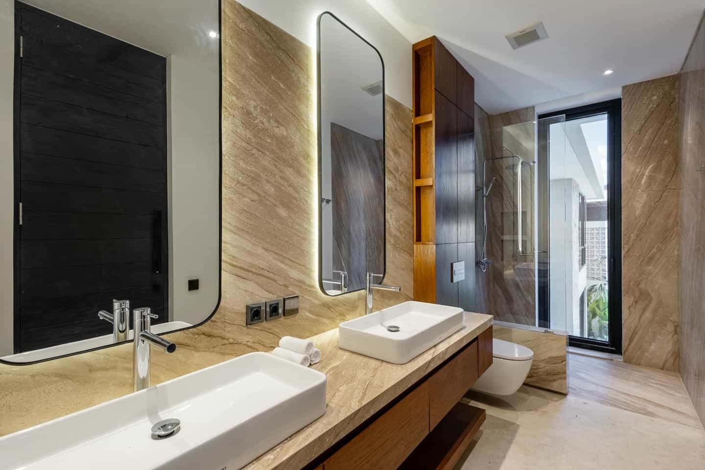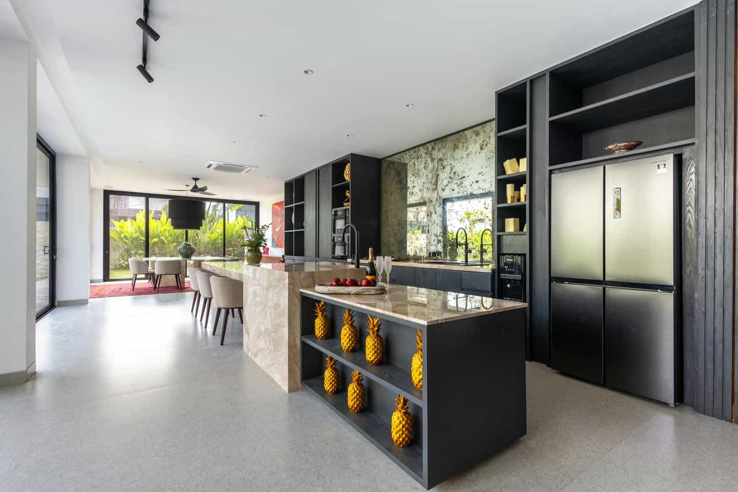 Nichée au cœur d’Umalas, cette villa captivante offre un mélange parfait de luxe moderne et de commodité. Son emplacement privilégié garantit que vous n’êtes qu’à quelques minutes de l’énergie vibrante des cafés, des restaurants, de la plage et d’une école internationale réputée. Cette villa entièrement meublée dispose de 5 chambres et 6 salles de bains. Le rez-de-chaussée vous présente la chambre principale avec vue sur la piscine fascinante. La villa dispose à la fois d’une cuisine bar ouverte et d’une cuisine humide pratique, assurant le plaisir culinaire des résidents. En montant au premier étage, découvrez quatre chambres judicieusement agencées, stratégiquement placées pour un agencement cosy idéal pour les chambres d’enfants. Sortez vers une piscine de 67 m², complétée par des canapés et des chaises encastrés – un endroit idéal pour se détendre et se prélasser au soleil. La conception réfléchie s’étend à une salle du personnel, une buanderie et un espace de rangement, garantissant une expérience de vie fluide. Adoptez le mélange harmonieux d’élégance moderne et de confort dans cette villa d’Umalas – votre retraite idéale pour une vie de famille sereine.