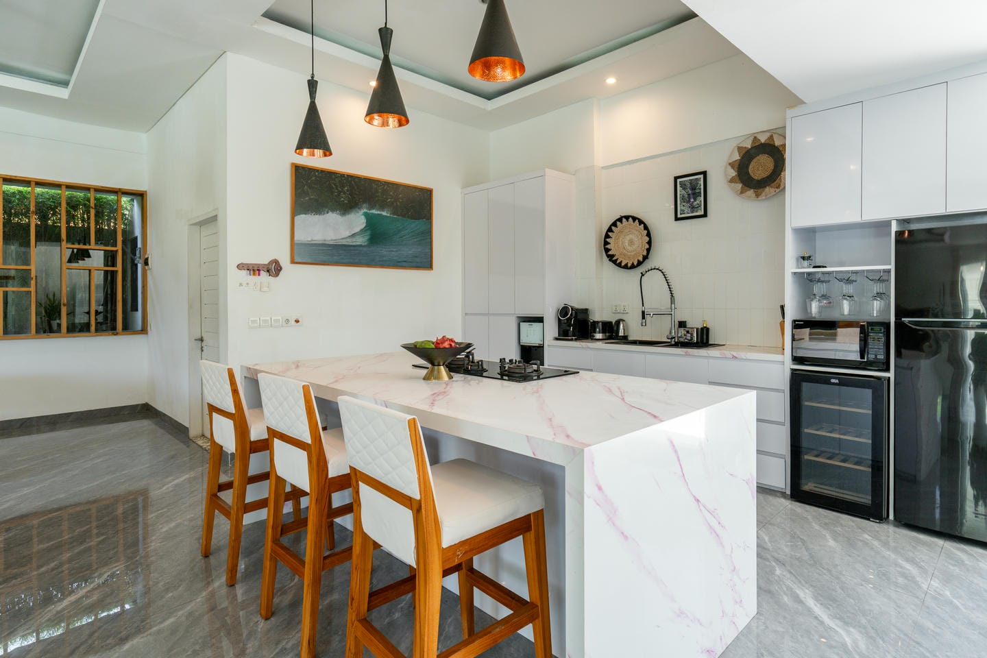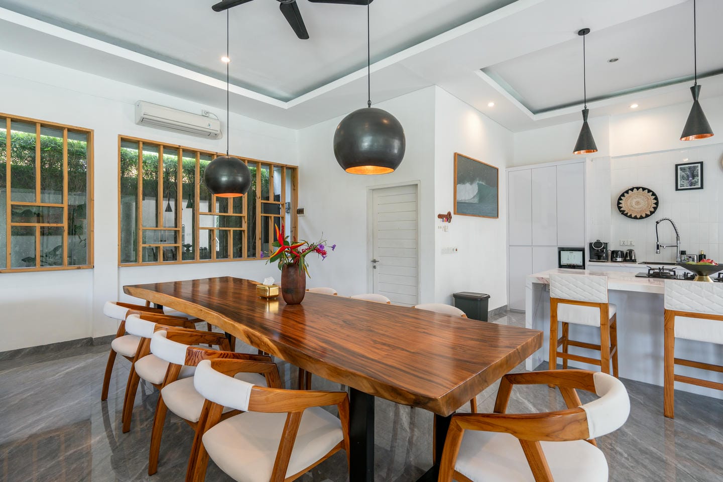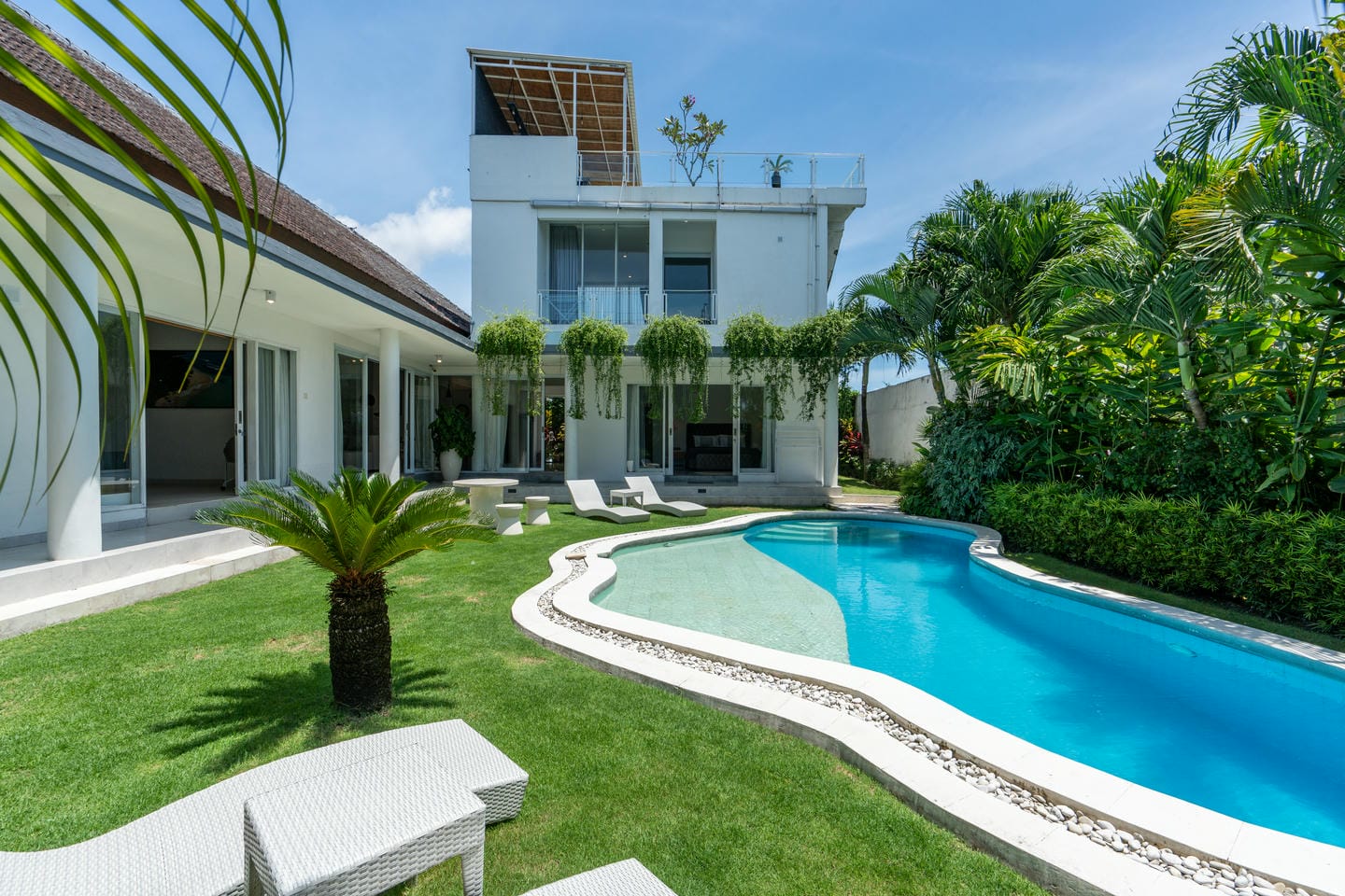 Cette magnifique villa à Canggu offre un mélange parfait de luxe et de commodité, située dans l'une des zones les plus prisées. À seulement quelques minutes des cafés branchés, des restaurants renommés et à 9 minutes en moto de la plage la plus proche, c'est un emplacement idéal pour ceux qui souhaitent profiter du meilleur de la vie à Bali. La villa présente un design moderne impeccable avec une superficie de terrain de 650 m² et une construction de 450 m². Avec 5 chambres magnifiquement conçues, 5 salles de bains élégantes, un salon à concept ouvert, une cuisine entièrement équipée et une charmante salle à manger, c'est une maison de rêve qui allie parfaitement confort et élégance. Un véritable point fort de la propriété est l'espace extérieur impressionnant, avec un jardin luxuriant et une piscine privée—parfait pour se détendre dans un cadre paradisiaque ou recevoir des invités. Que vous recherchiez une retraite personnelle ou un investissement rentable, cette villa est une opportunité en or. Son emplacement privilégié, ses caractéristiques luxueuses et son jardin tranquille avec piscine en font une propriété de location très demandée, garantissant de solides retours pour les investisseurs. Ne manquez pas cette opportunité exceptionnelle !