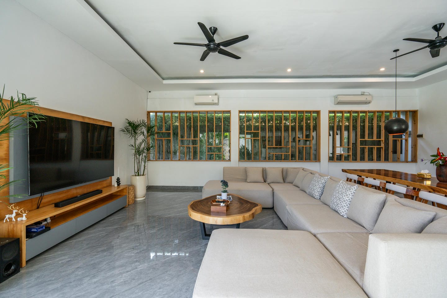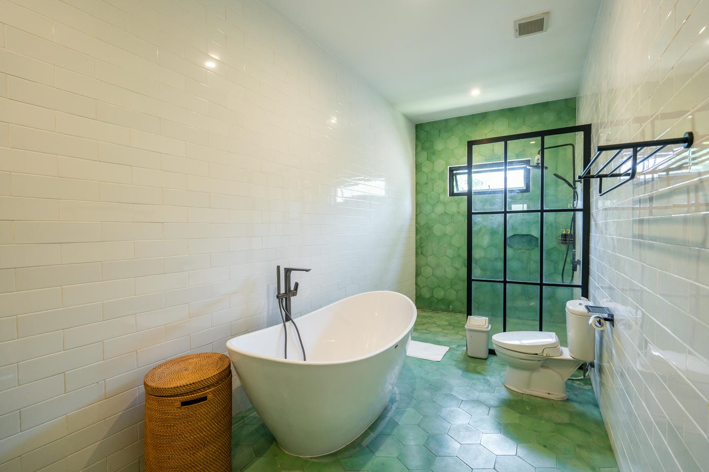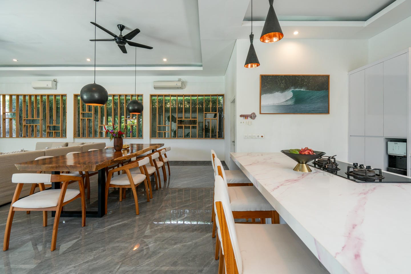 Cette magnifique villa à Canggu offre un mélange parfait de luxe et de commodité, située dans l'une des zones les plus prisées. À seulement quelques minutes des cafés branchés, des restaurants renommés et à 9 minutes en moto de la plage la plus proche, c'est un emplacement idéal pour ceux qui souhaitent profiter du meilleur de la vie à Bali. La villa présente un design moderne impeccable avec une superficie de terrain de 650 m² et une construction de 450 m². Avec 5 chambres magnifiquement conçues, 5 salles de bains élégantes, un salon à concept ouvert, une cuisine entièrement équipée et une charmante salle à manger, c'est une maison de rêve qui allie parfaitement confort et élégance. Un véritable point fort de la propriété est l'espace extérieur impressionnant, avec un jardin luxuriant et une piscine privée—parfait pour se détendre dans un cadre paradisiaque ou recevoir des invités. Que vous recherchiez une retraite personnelle ou un investissement rentable, cette villa est une opportunité en or. Son emplacement privilégié, ses caractéristiques luxueuses et son jardin tranquille avec piscine en font une propriété de location très demandée, garantissant de solides retours pour les investisseurs. Ne manquez pas cette opportunité exceptionnelle !