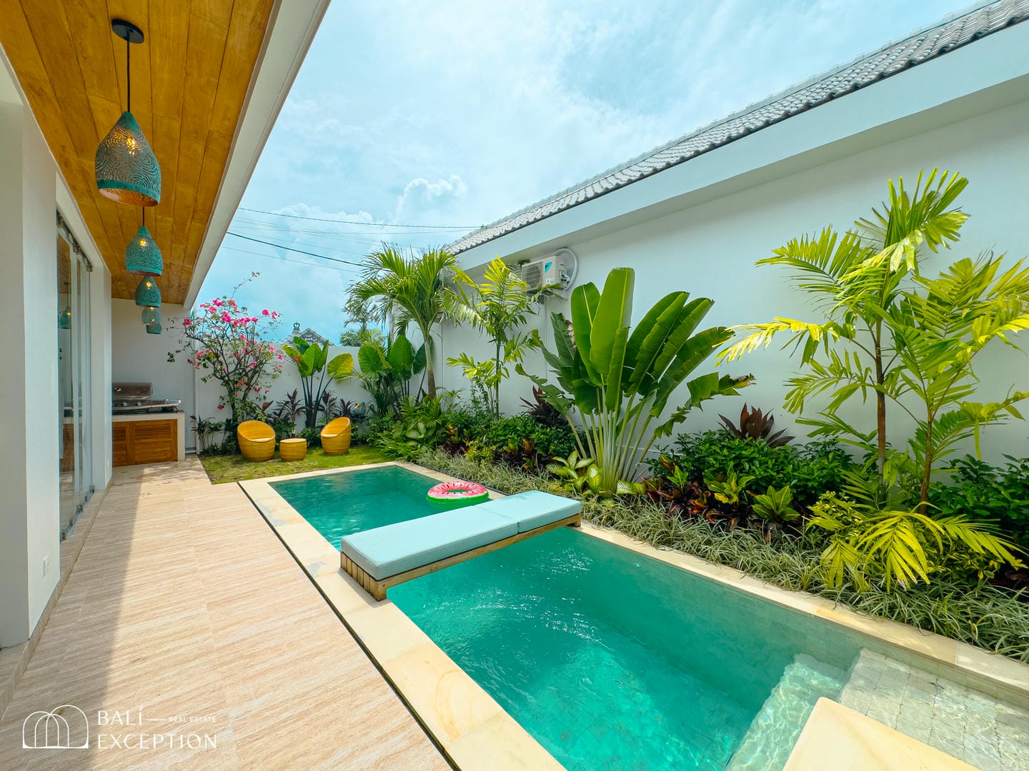 L’un des points forts de cette villa est sa piscine privée, créant une oasis sereine pour se détendre et profiter de l’ambiance tropicale de Bali. De plus, la villa dispose d’un rooftop idéal pour admirer les couchers de soleil, dîner en plein air ou simplement se relaxer sous les étoiles.