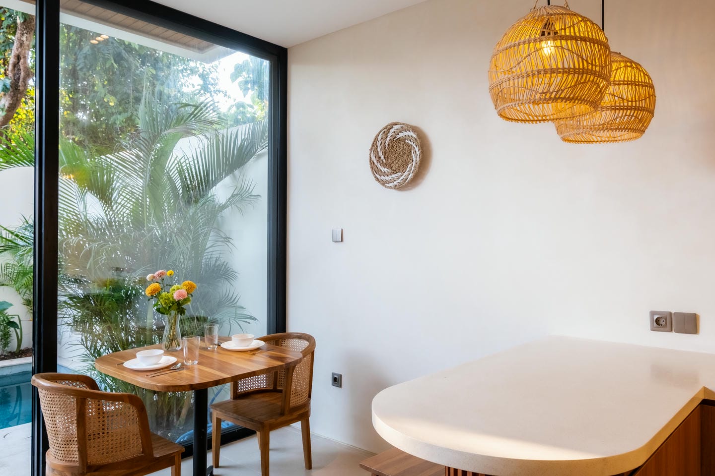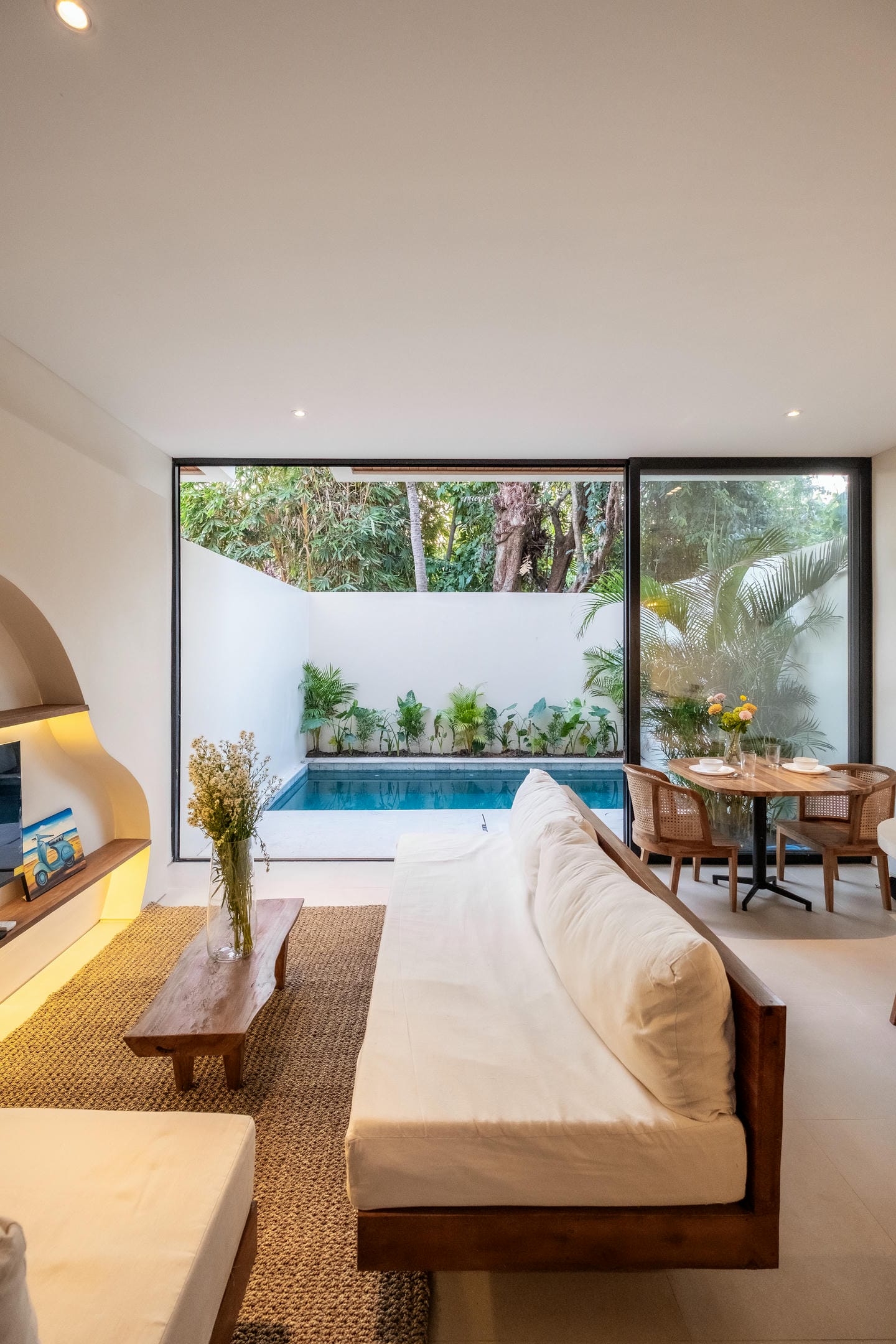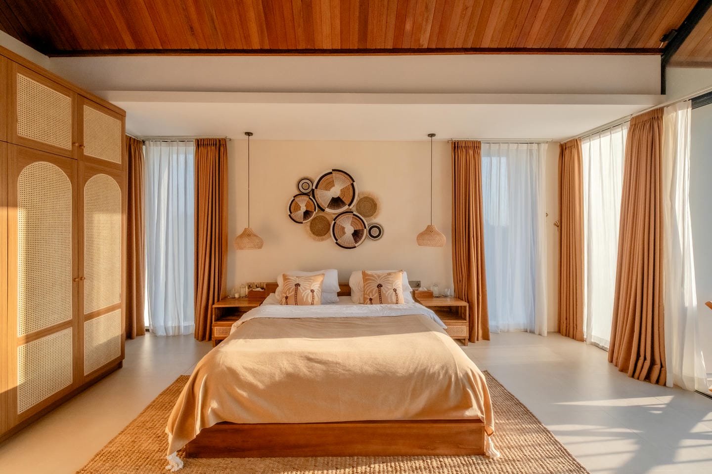 Cette villa minimaliste arbore un style intérieur en bois et dispose d’une cuisine ainsi que d’un salon confortable avec de grandes fenêtres laissant entrer une abondante lumière naturelle. Elle comprend une luxueuse suite d’une chambre. La villa est disponible en version entièrement meublée ou non meublée.