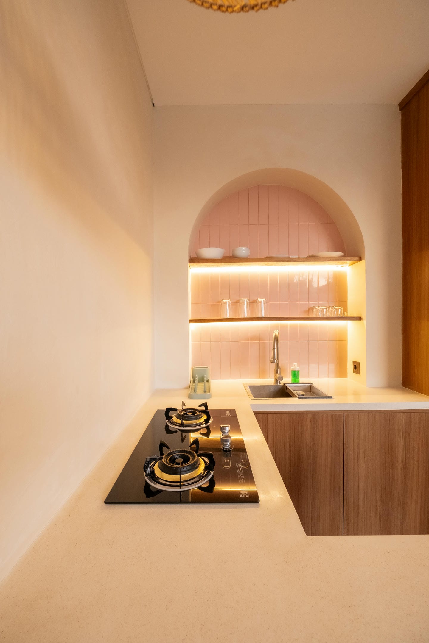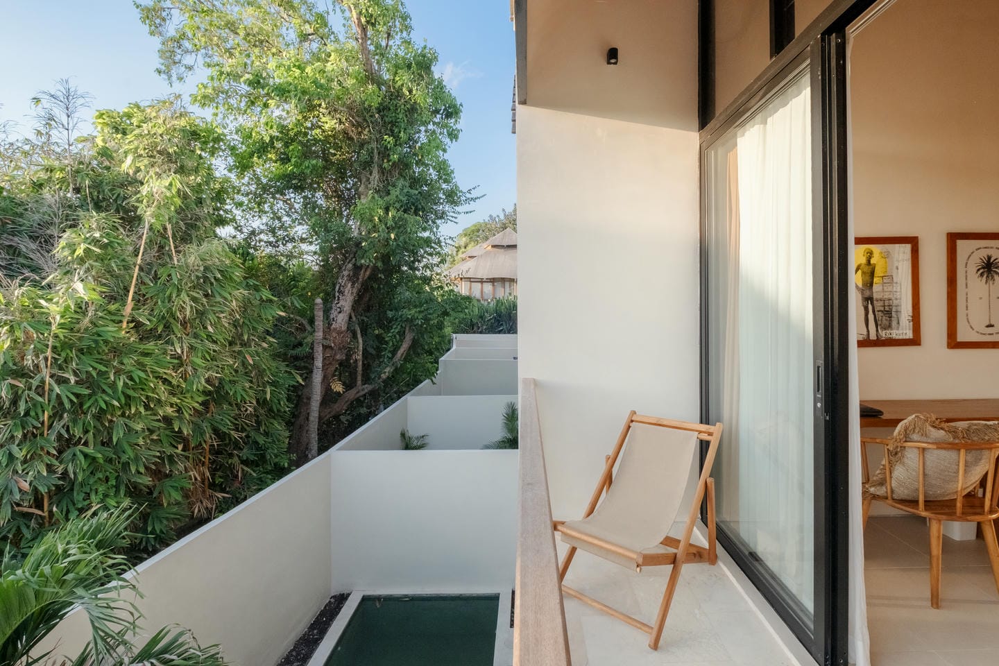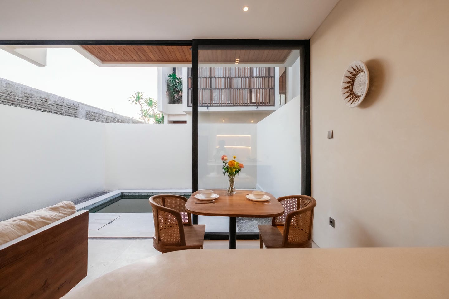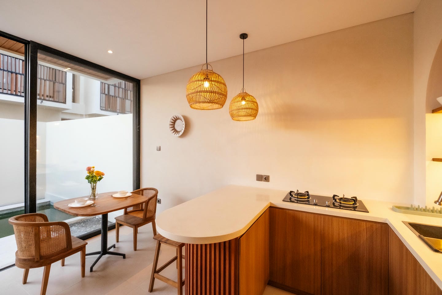Cette villa minimaliste arbore un style intérieur en bois et dispose d’une cuisine ainsi que d’un salon confortable avec de grandes fenêtres laissant entrer une abondante lumière naturelle. Elle comprend une luxueuse suite d’une chambre. La villa est disponible en version entièrement meublée ou non meublée.