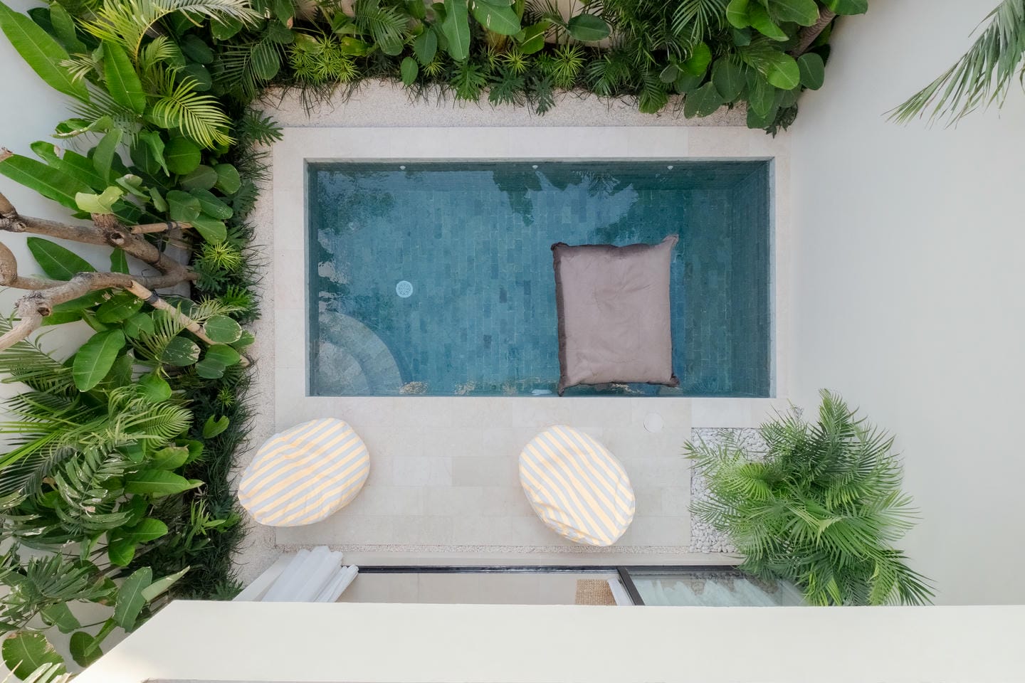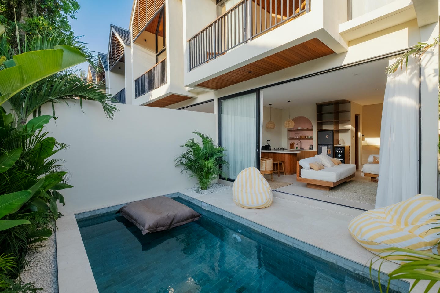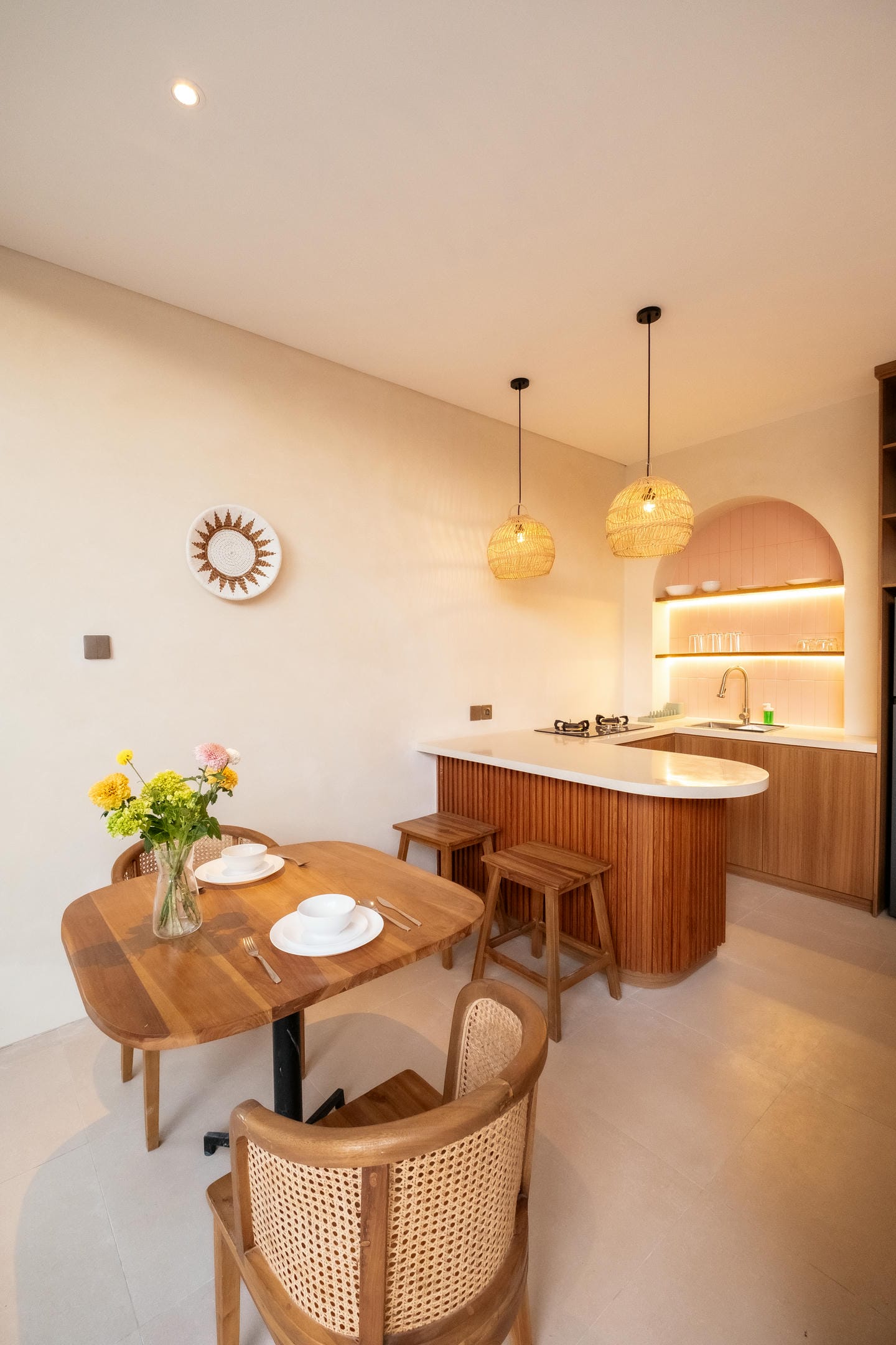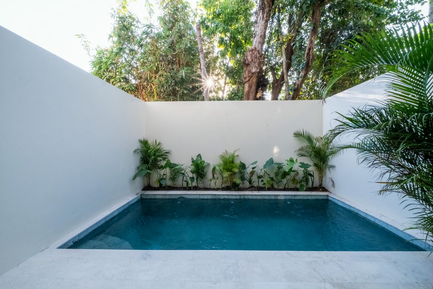 Située à Mengwi, une zone paisible, verdoyante et en plein essor avec de nouvelles boutiques, cafés et restaurants, cette propriété se trouve à seulement 15 minutes de la plage animée de Canggu et de ses lieux branchés.