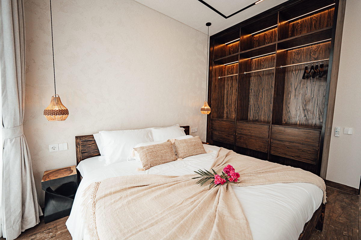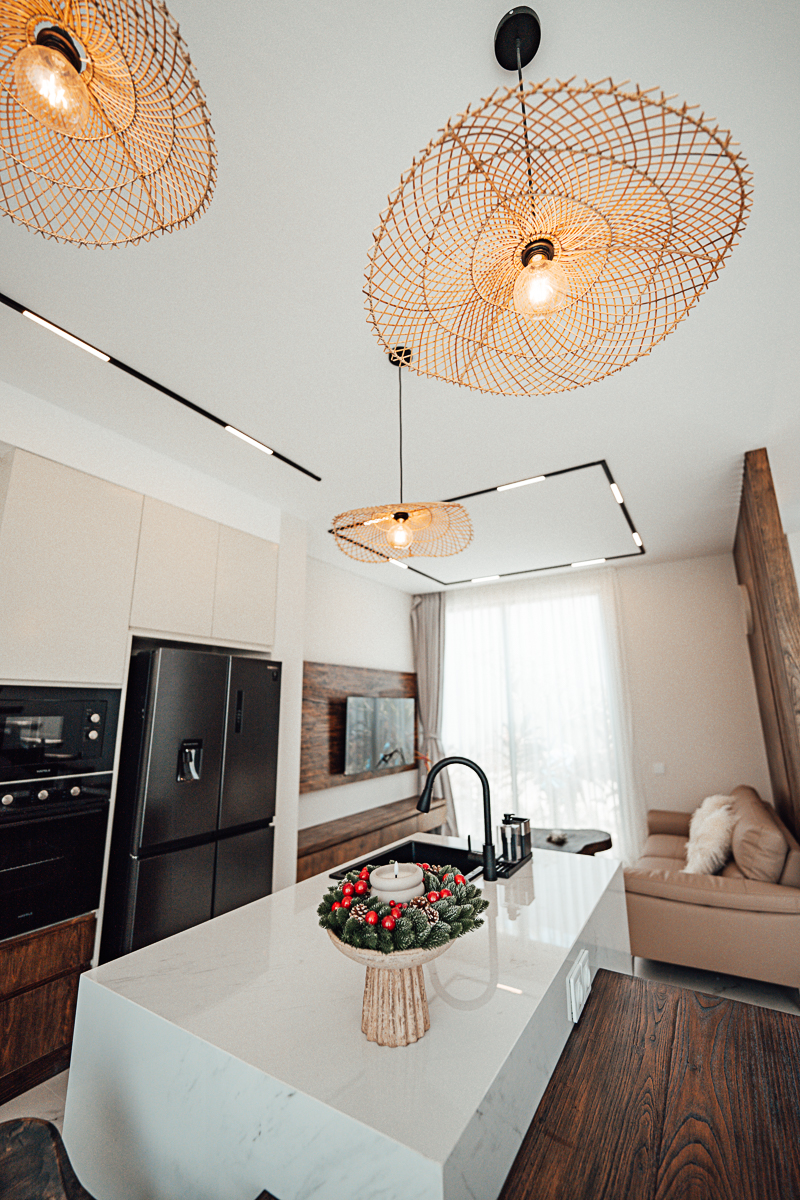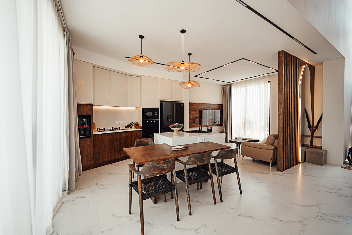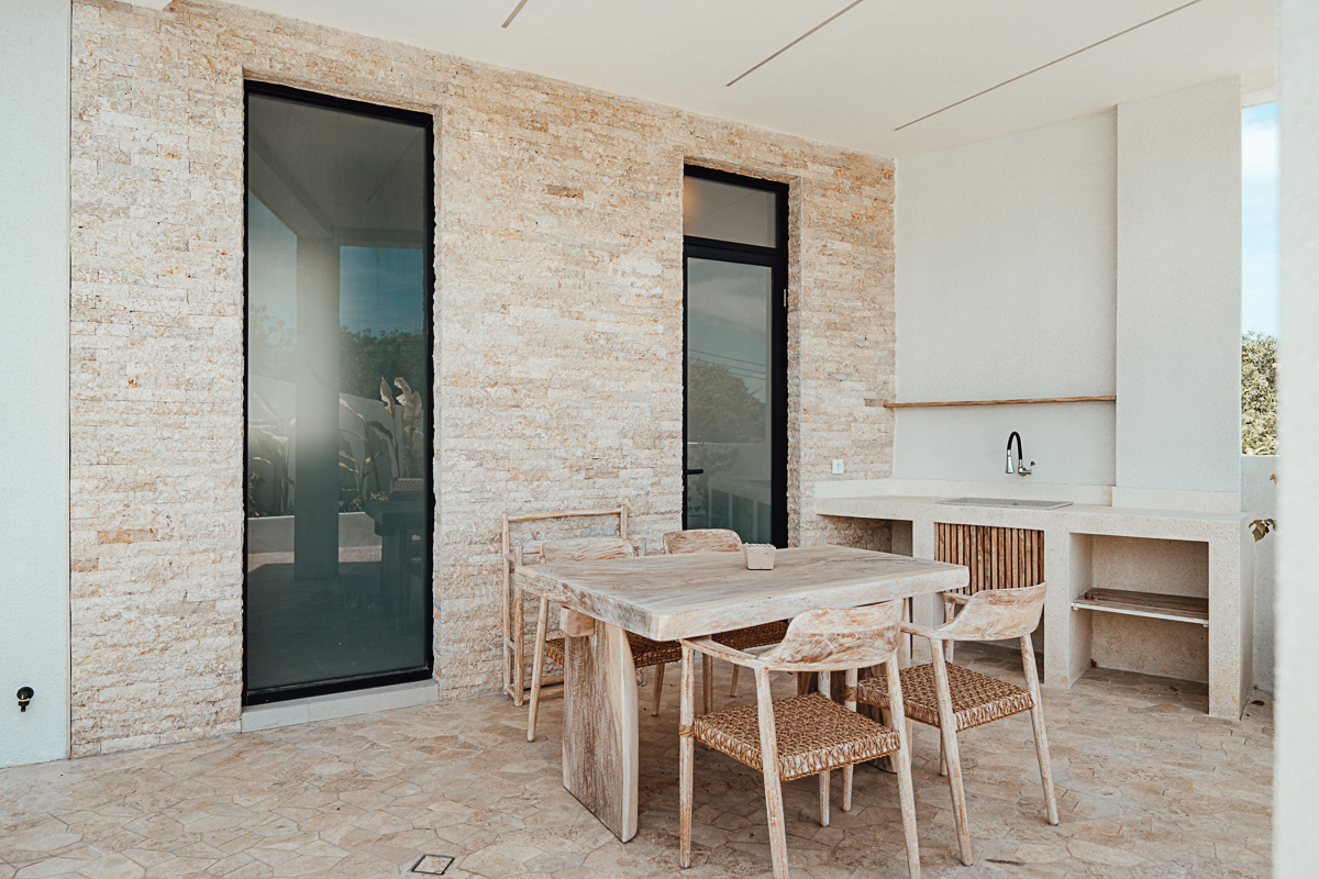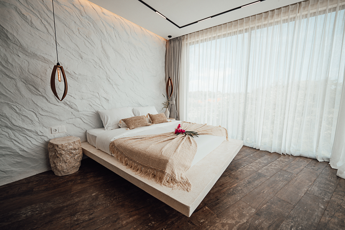 Cette villa à deux niveaux incarne un design Japandi raffiné, combinant harmonieusement l’esthétique japonaise et scandinave avec des murs en pierre naturelle et des intérieurs élégants. Elle dispose de trois chambres, chacune avec sa salle de bain attenante, dont une baignoire dans la suite parentale. De grandes fenêtres à haute hauteur sous plafond baignent les espaces de lumière naturelle, créant une atmosphère ouverte et aérée. Entièrement meublée, la villa comprend une cuisine entièrement équipée, idéale pour un quotidien sans effort.
