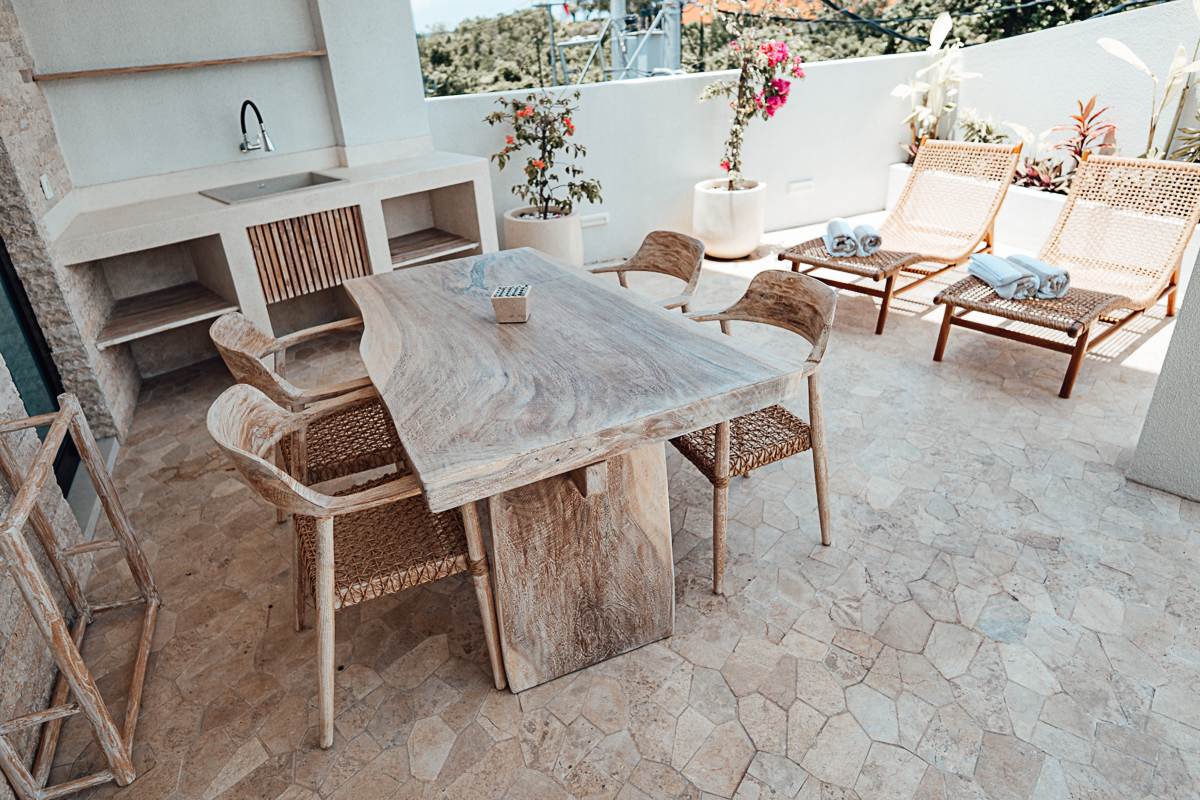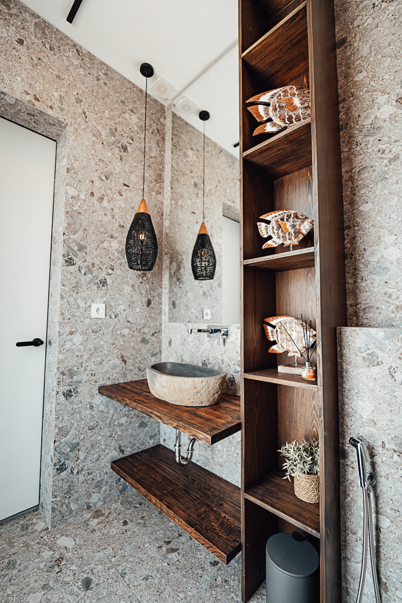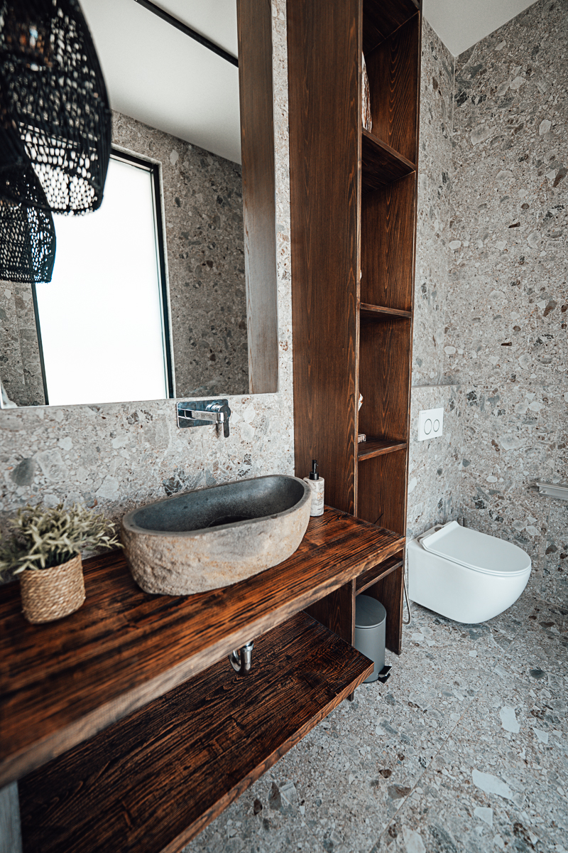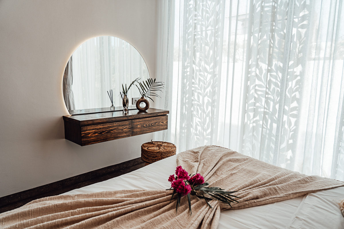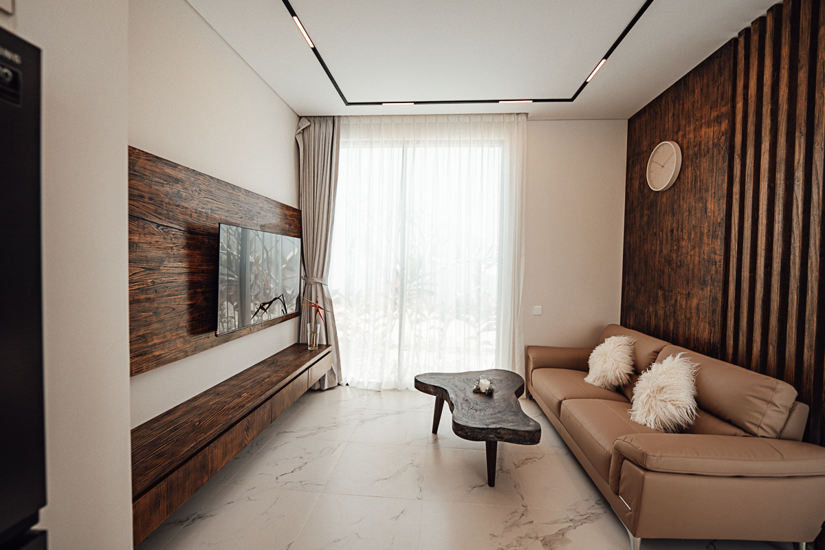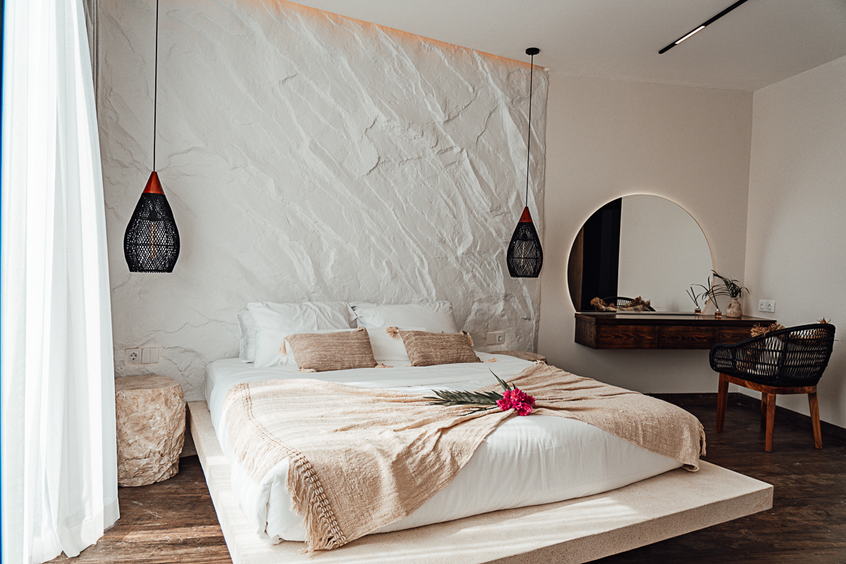 Cette villa à deux niveaux incarne un design Japandi raffiné, combinant harmonieusement l’esthétique japonaise et scandinave avec des murs en pierre naturelle et des intérieurs élégants. Elle dispose de trois chambres, chacune avec sa salle de bain attenante, dont une baignoire dans la suite parentale. De grandes fenêtres à haute hauteur sous plafond baignent les espaces de lumière naturelle, créant une atmosphère ouverte et aérée. Entièrement meublée, la villa comprend une cuisine entièrement équipée, idéale pour un quotidien sans effort.