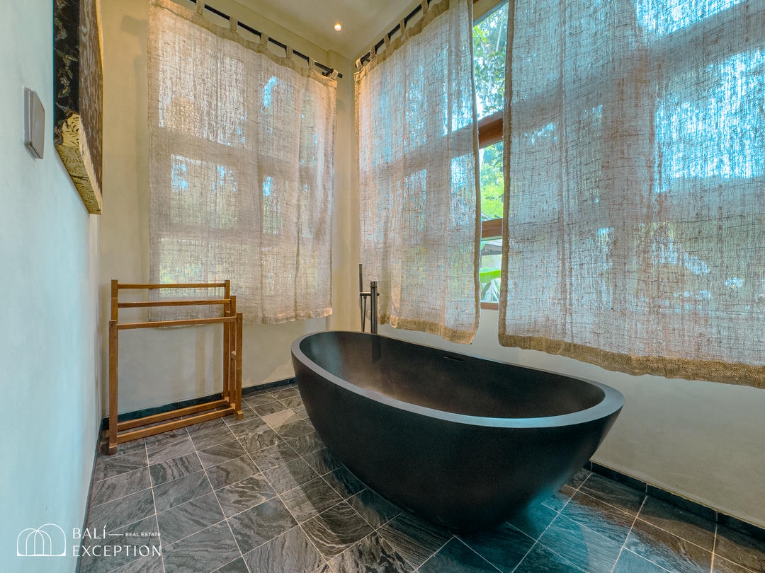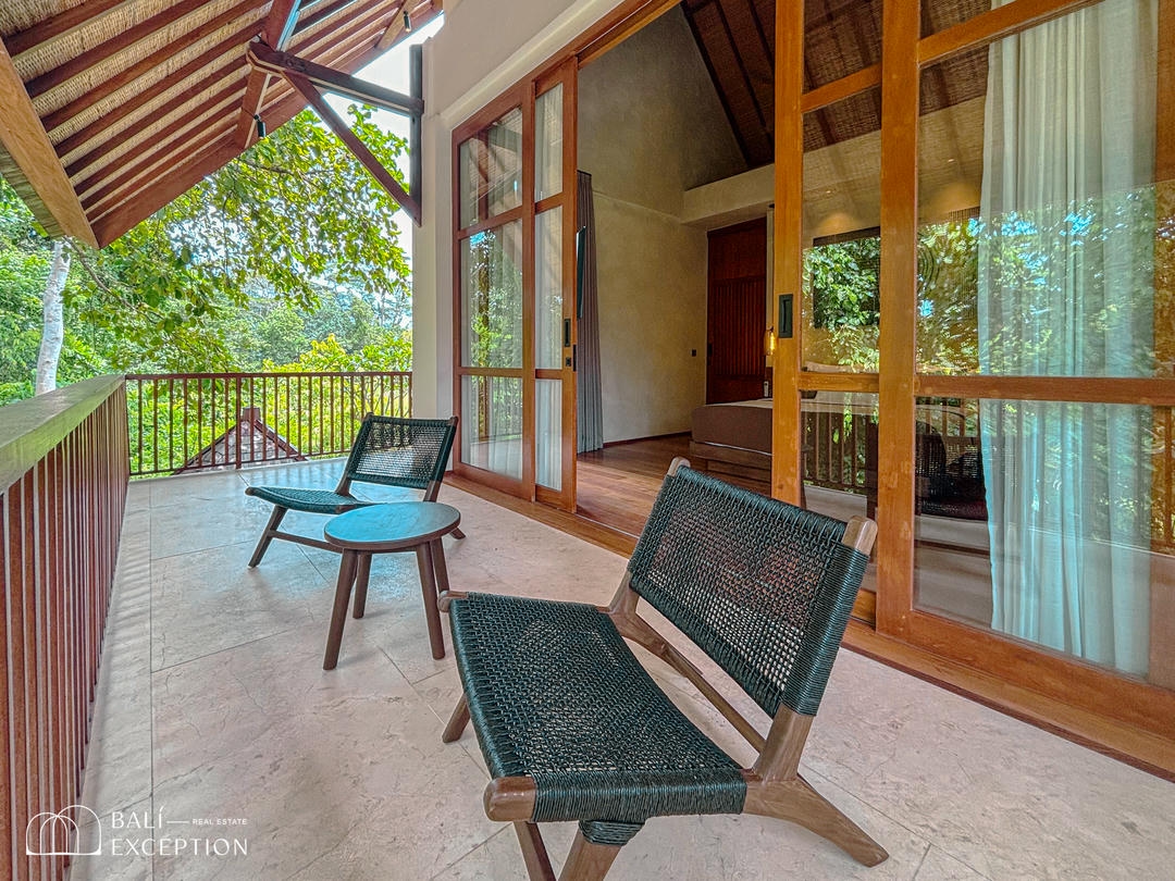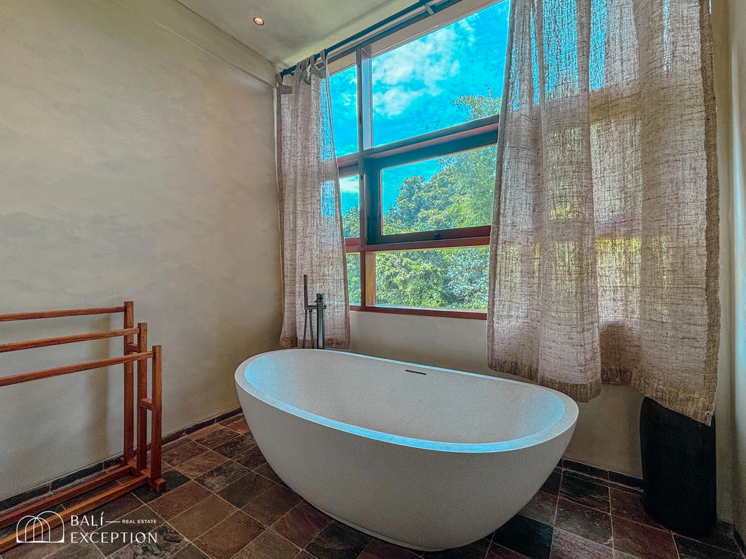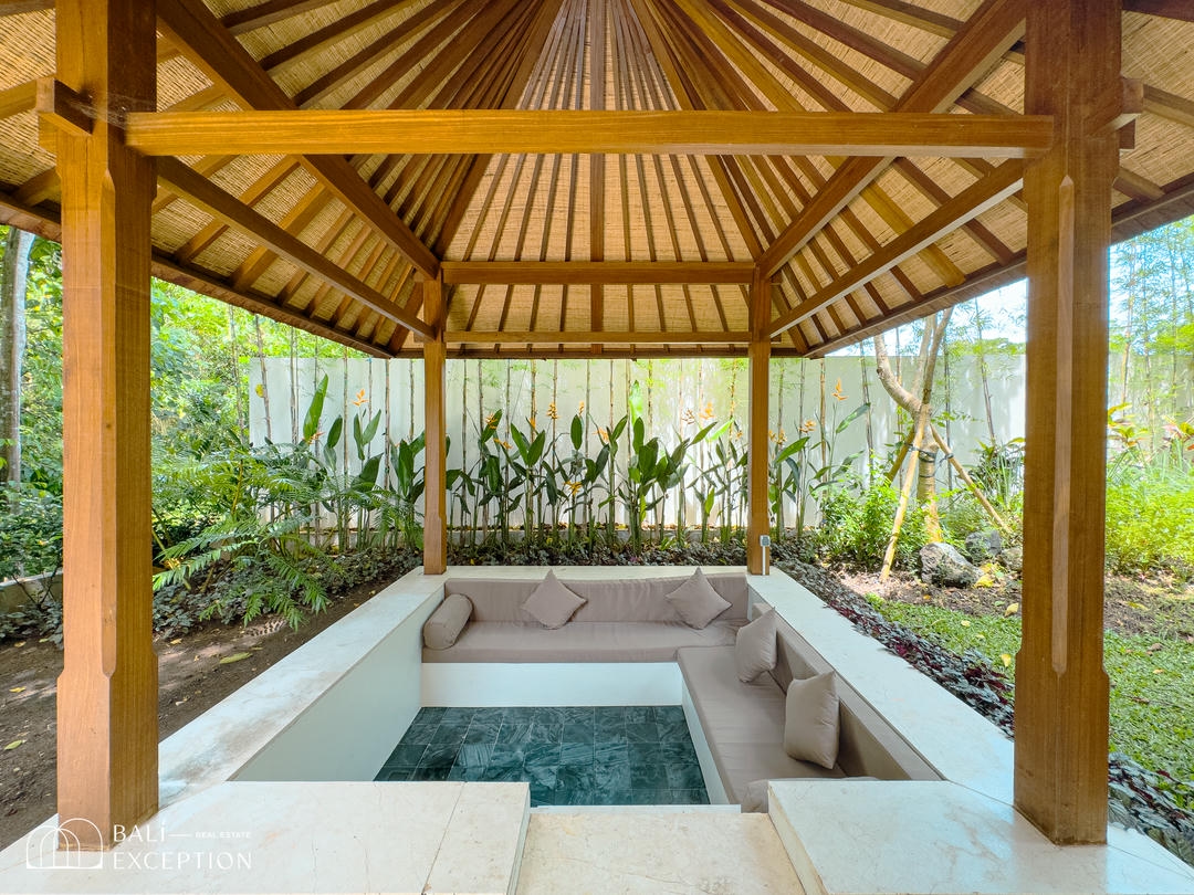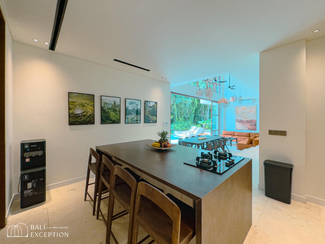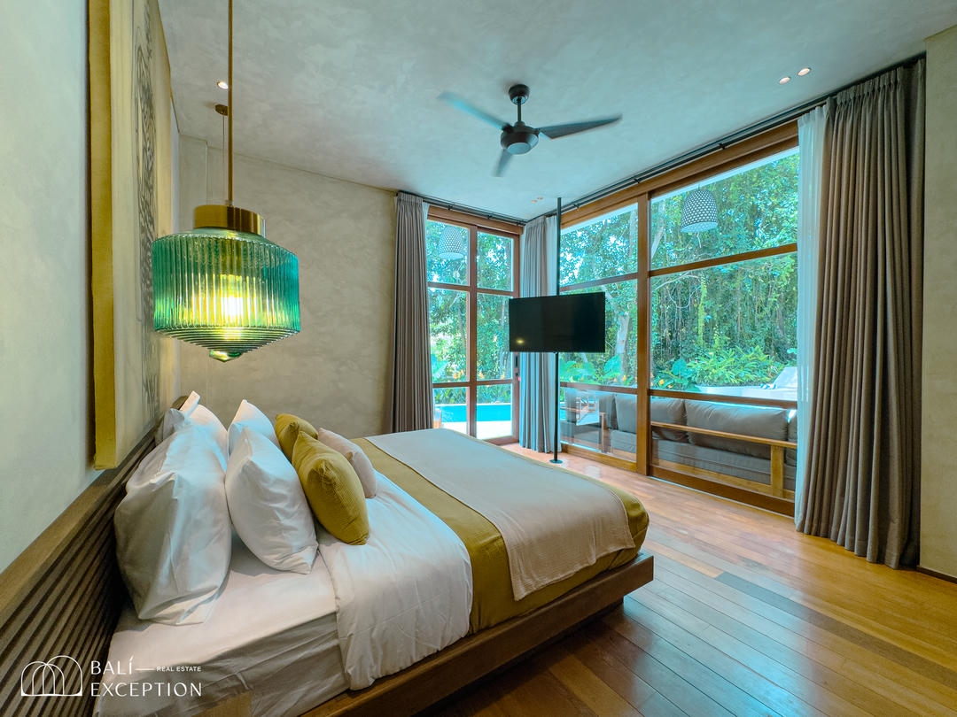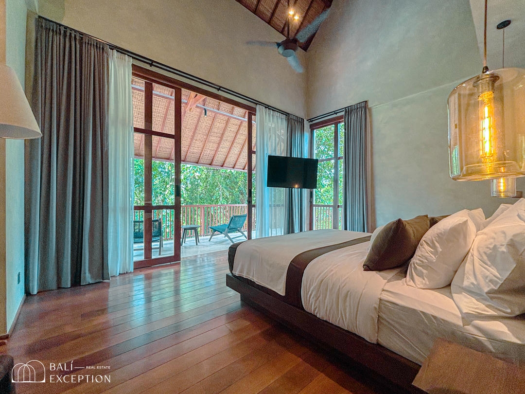 À l’extérieur, un cadre enchanteur vous attend : une grande piscine s’étend vers une rivière bordée de jungle, entourée d’une végétation luxuriante. Un véritable espace de détente et d’évasion pour profiter pleinement de la splendeur de Bali dans un cadre exclusif et luxueux. Ne manquez pas cette opportunité unique d’acquérir cette somptueuse villa.