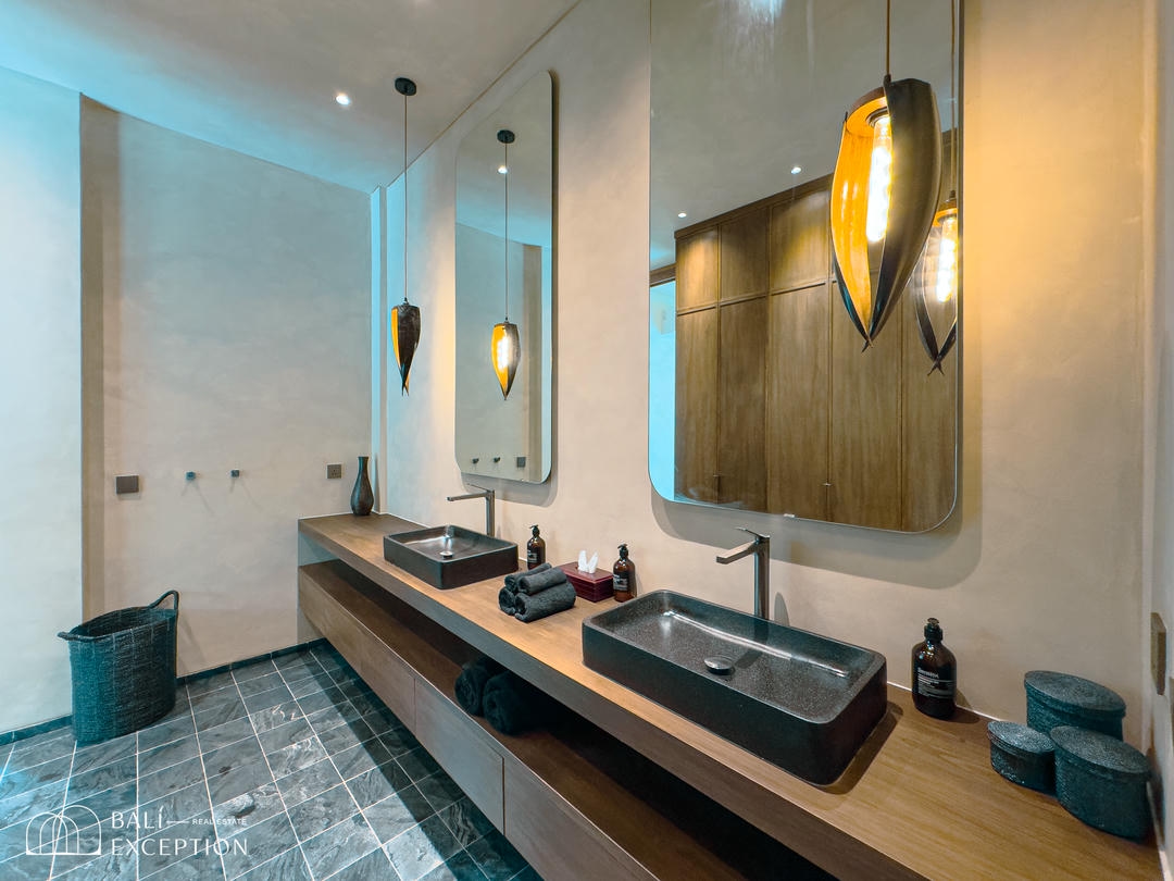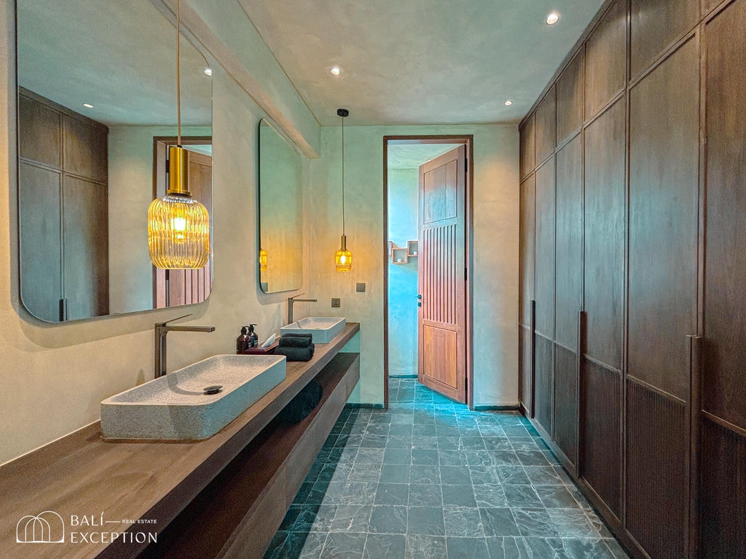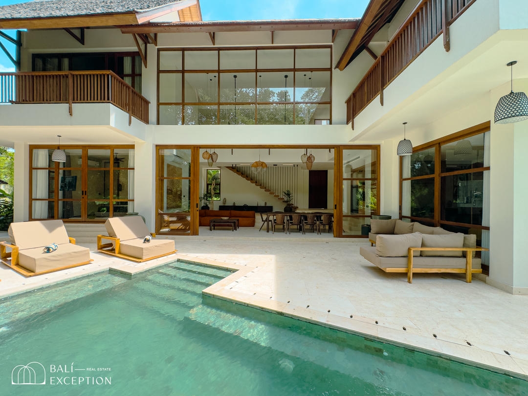 Nichée dans le quartier exclusif de Nyanyi à Bali, cette luxueuse villa est entourée d’une végétation luxuriante et offre une vue imprenable sur la rivière, créant ainsi un havre de paix idyllique tout en étant à quelques minutes seulement des lieux emblématiques tels que Luna Beach Club, Nuanu et la plage de Nyanyi. C’est l’équilibre parfait entre tranquillité et commodité, où la beauté naturelle rencontre le luxe absolu.