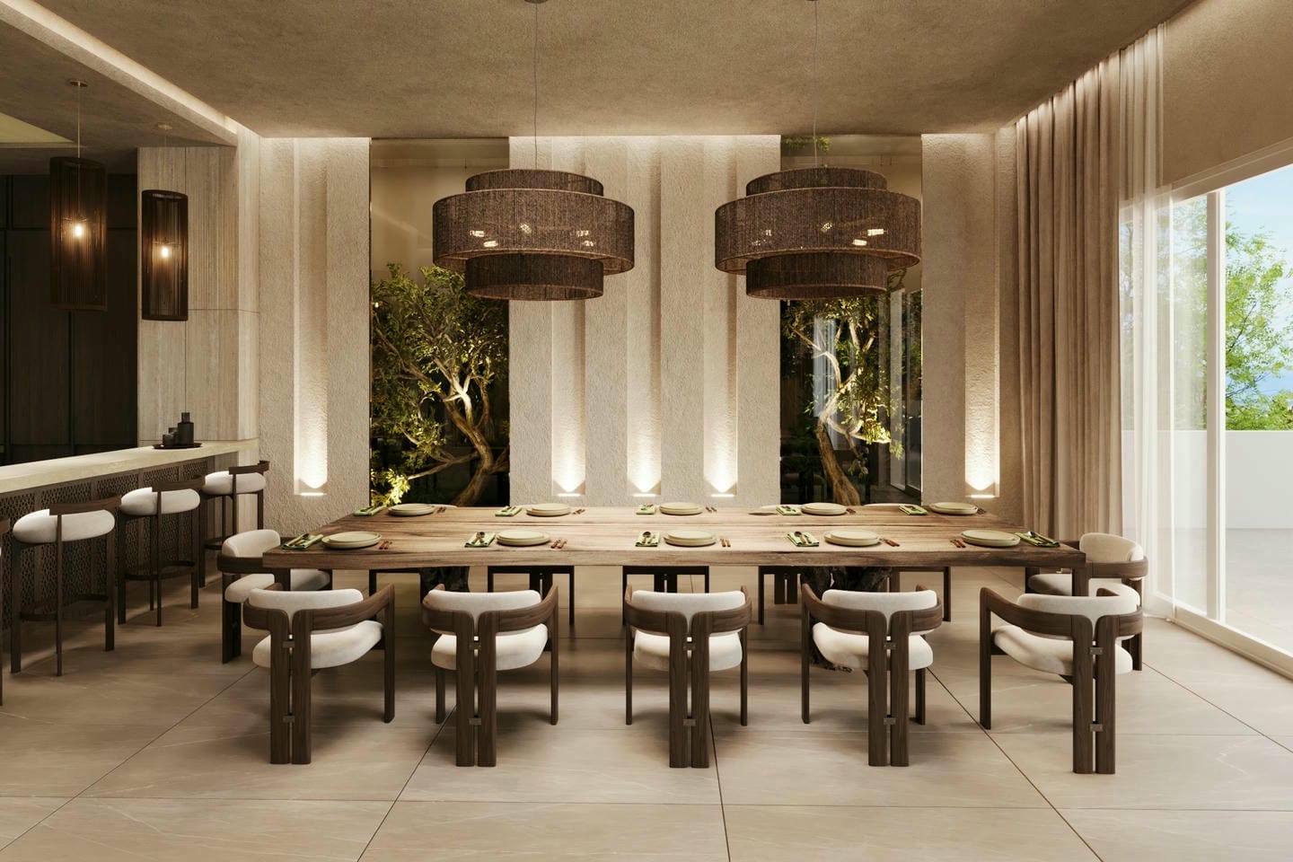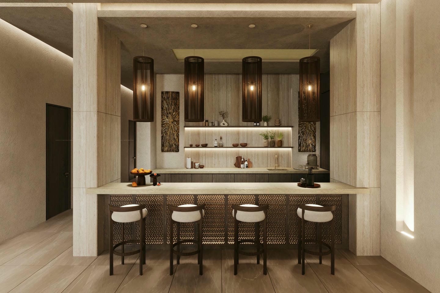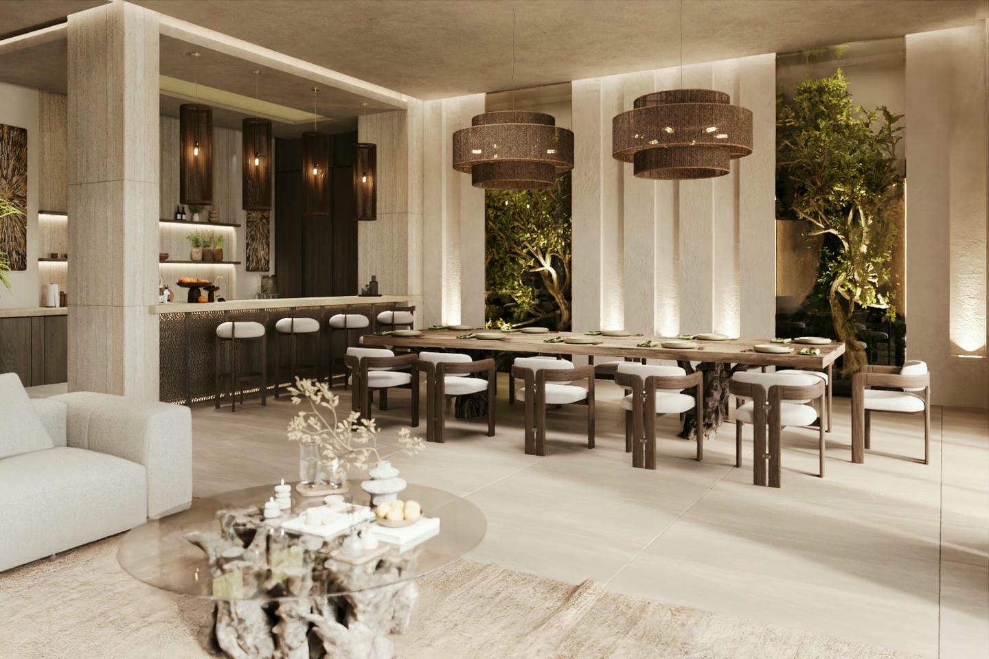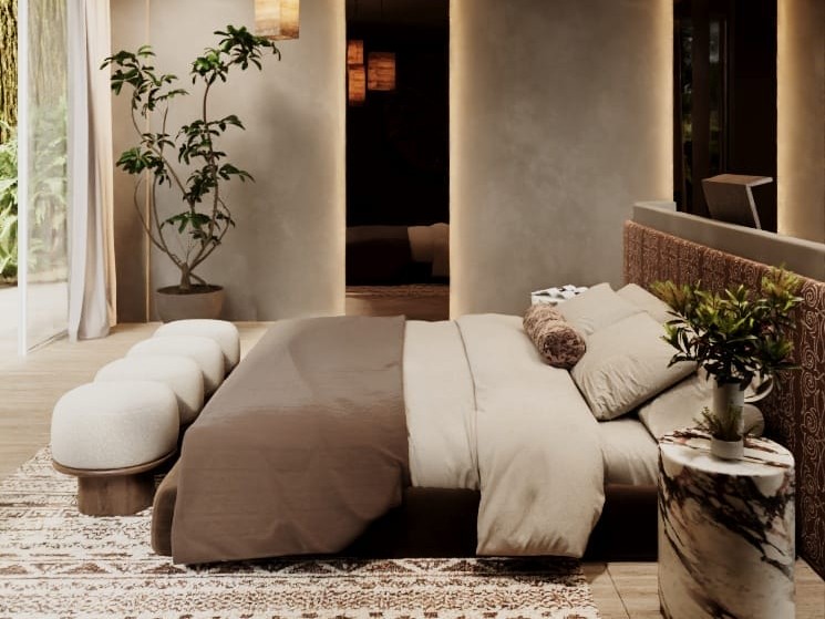 Cet appartement adopte un style tropical moderne axé sur l’espace, le confort et un mode de vie fluide entre intérieur et extérieur. L’espace de vie est conçu en plan ouvert, offrant une atmosphère lumineuse et accueillante, sublimée par de hauts plafonds et de larges ouvertures laissant entrer la lumière naturelle et l’air frais. La connexion avec la terrasse crée une transition harmonieuse vers les espaces extérieurs, idéals pour se détendre ou recevoir tout en profitant de la vue sur l’océan. L’agencement privilégie à la fois l’intimité et la convivialité, le rendant adapté à la vie quotidienne comme aux séjours de vacances. Ce qui distingue cet appartement est sa grande polyvalence, proposant plusieurs styles de design pour répondre à différentes préférences, ainsi qu’un large choix d’unités allant de 1 à 6 chambres, toutes soigneusement conçues pour maximiser le confort et tirer pleinement parti de l’orientation face à l’océan.