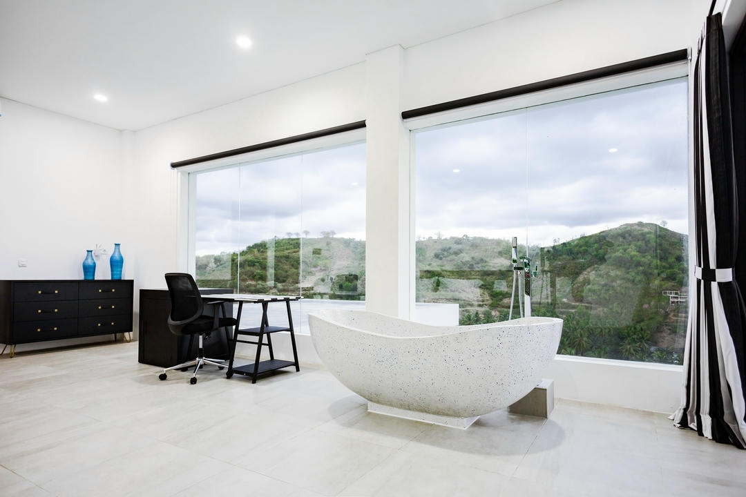 Le domaine se compose d’une villa principale de 3 chambres, ainsi que de quatre bungalows indépendants d’une chambre, chacun disposant de sa propre salle de bain attenante. La villa principale bénéficie de sa piscine privée, tandis que les bungalows s’articulent autour d’une piscine commune, créant une configuration de type resort idéale pour les groupes, les retraites ou une exploitation locative à forte occupation. Un vaste espace de stationnement vient faciliter l’accueil des hôtes.