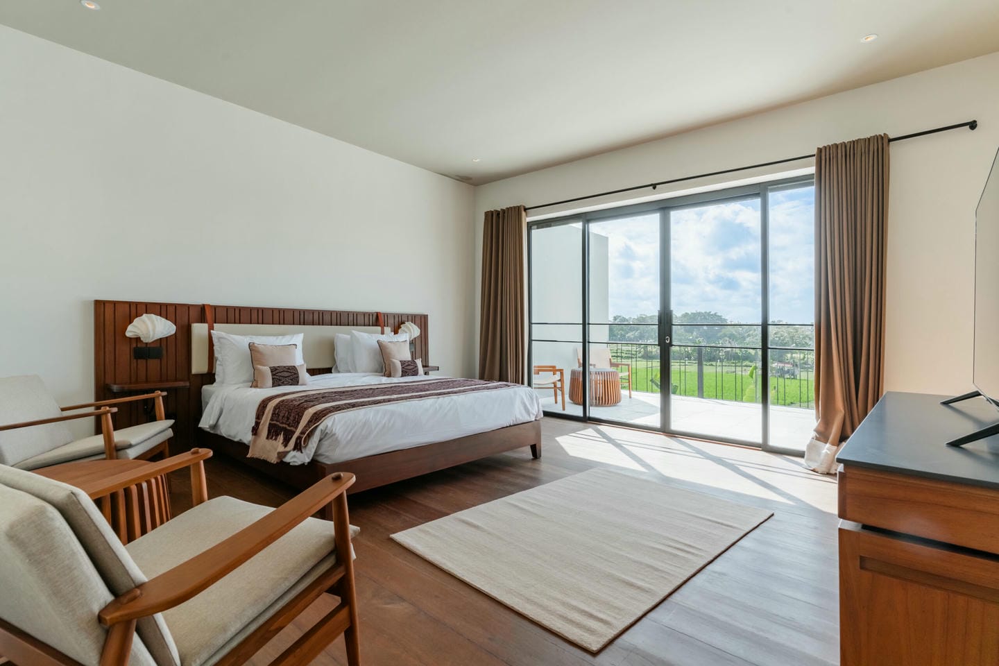 Cette magnifique villa de 6 chambres propose des espaces de vie généreux, chaque chambre disposant de sa propre salle de bain pour un confort et une intimité optimaux. La suite parentale est un véritable sanctuaire, avec un balcon privé offrant une vue imprenable sur les rizières luxuriantes et une baignoire luxueuse pour des moments de détente absolue.