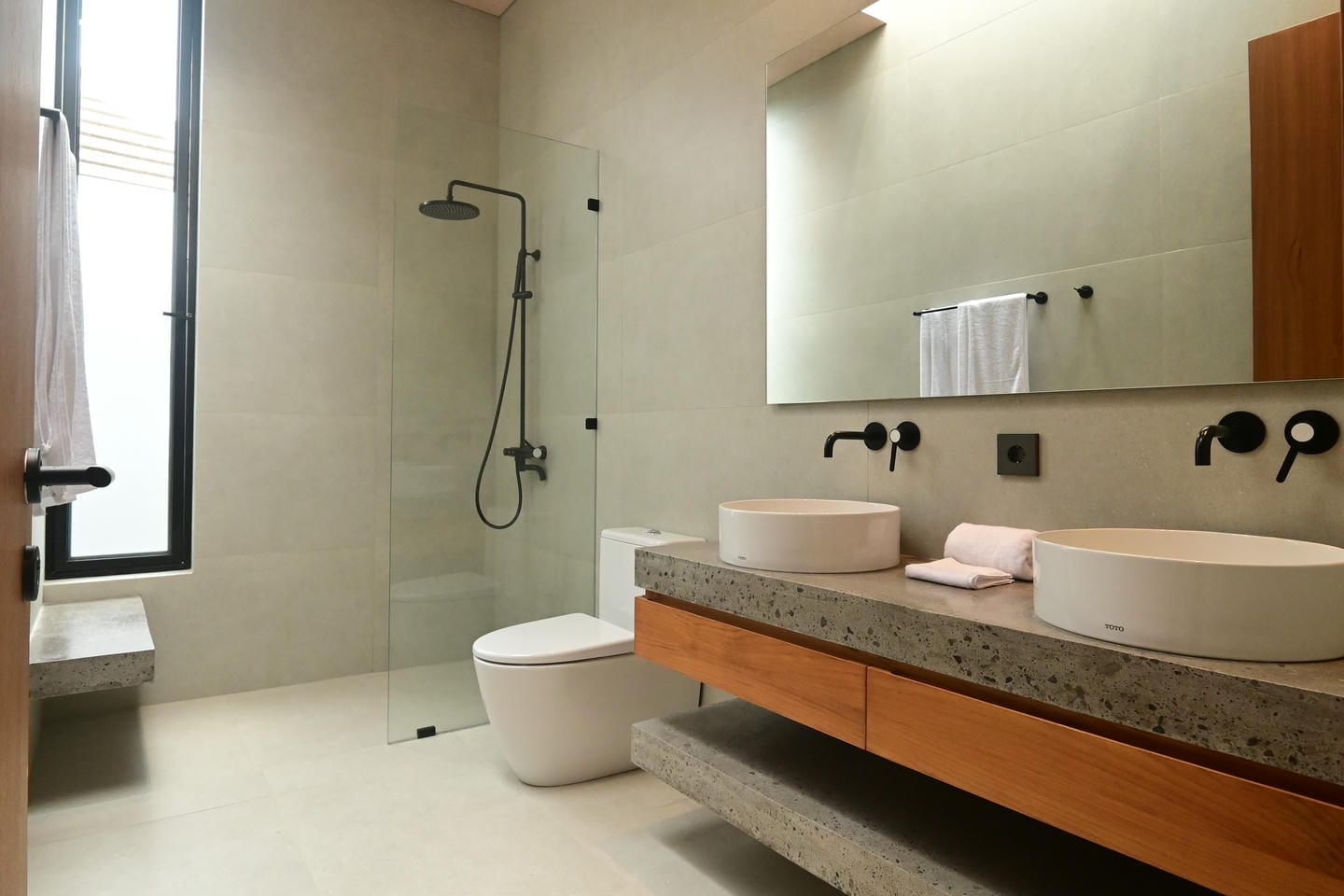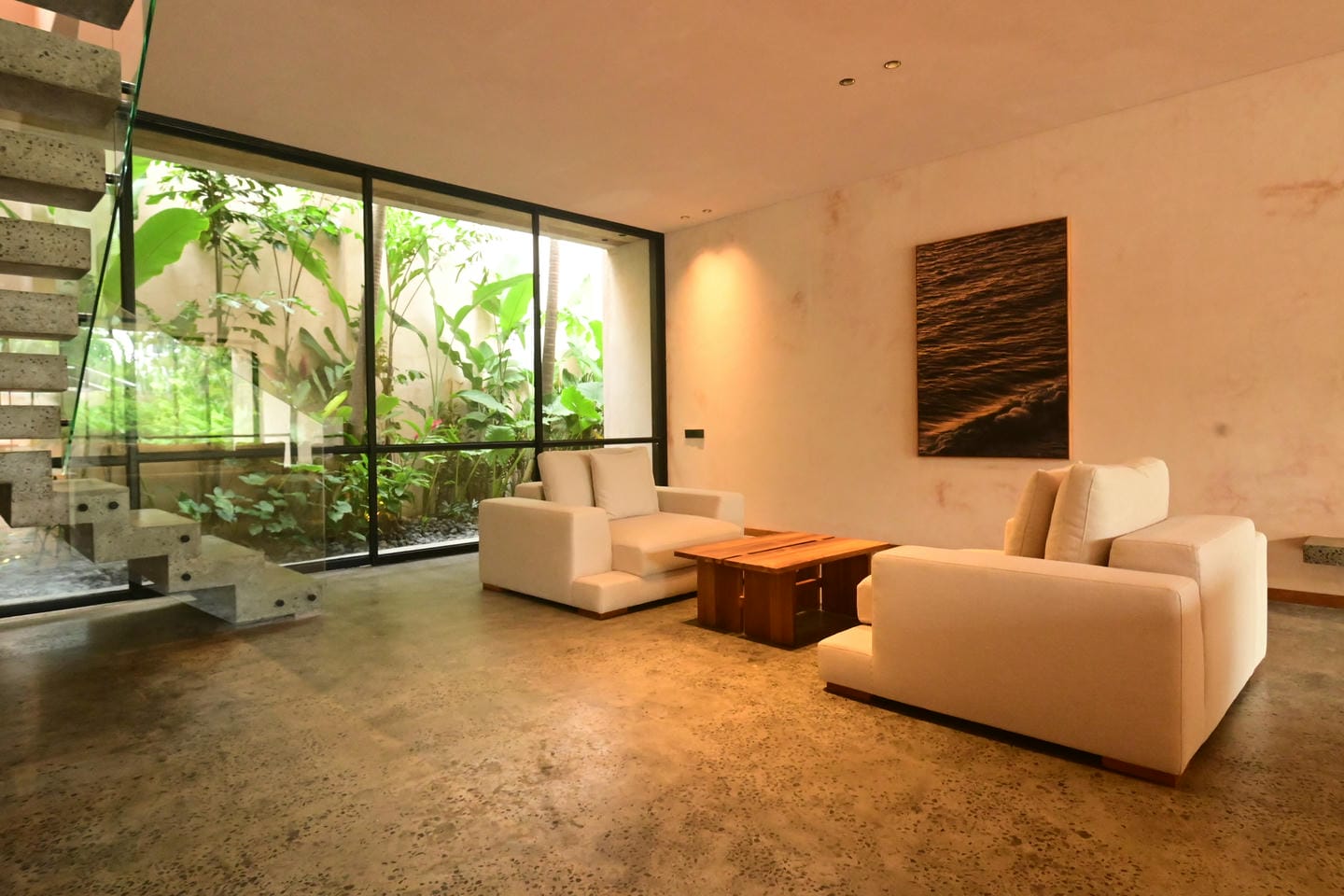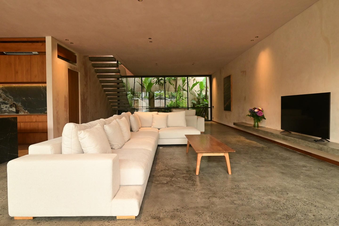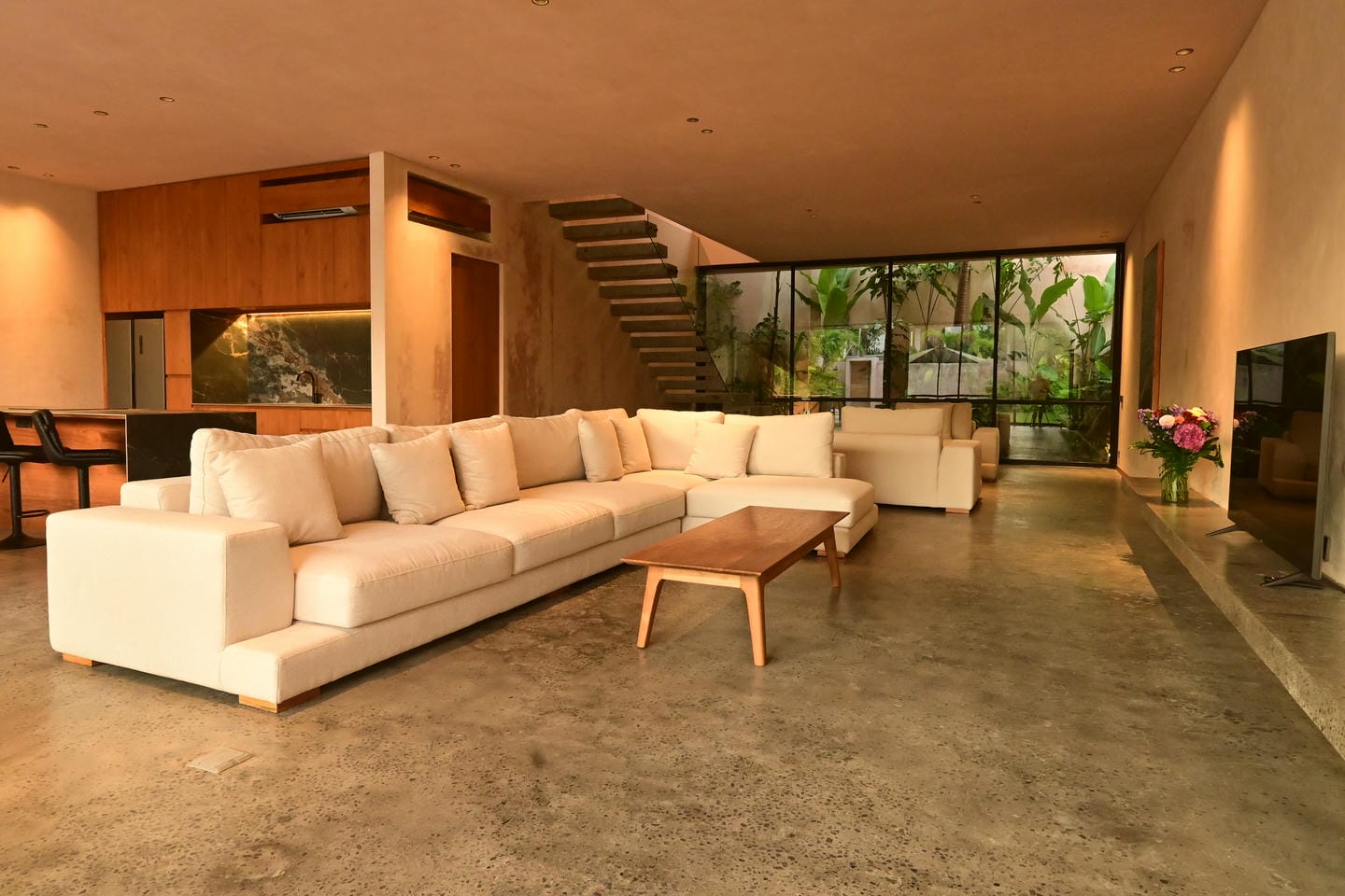Les villas présentent un style architectural tropical moderne avec des matériaux naturels chaleureux et un design minimaliste. Construite sur deux étages, chacune des propriétés dispose de 4 chambres spacieuses et de 5 salles de bains, ainsi que d'un salon et d'une salle à manger décloisonnés et lumineux reliés à une cuisine élégante. Les grandes portes coulissantes en verre permettent à la lumière naturelle de circuler dans toute la maison, créant une atmosphère confortable et aérée qui allie la vie intérieure et extérieure.