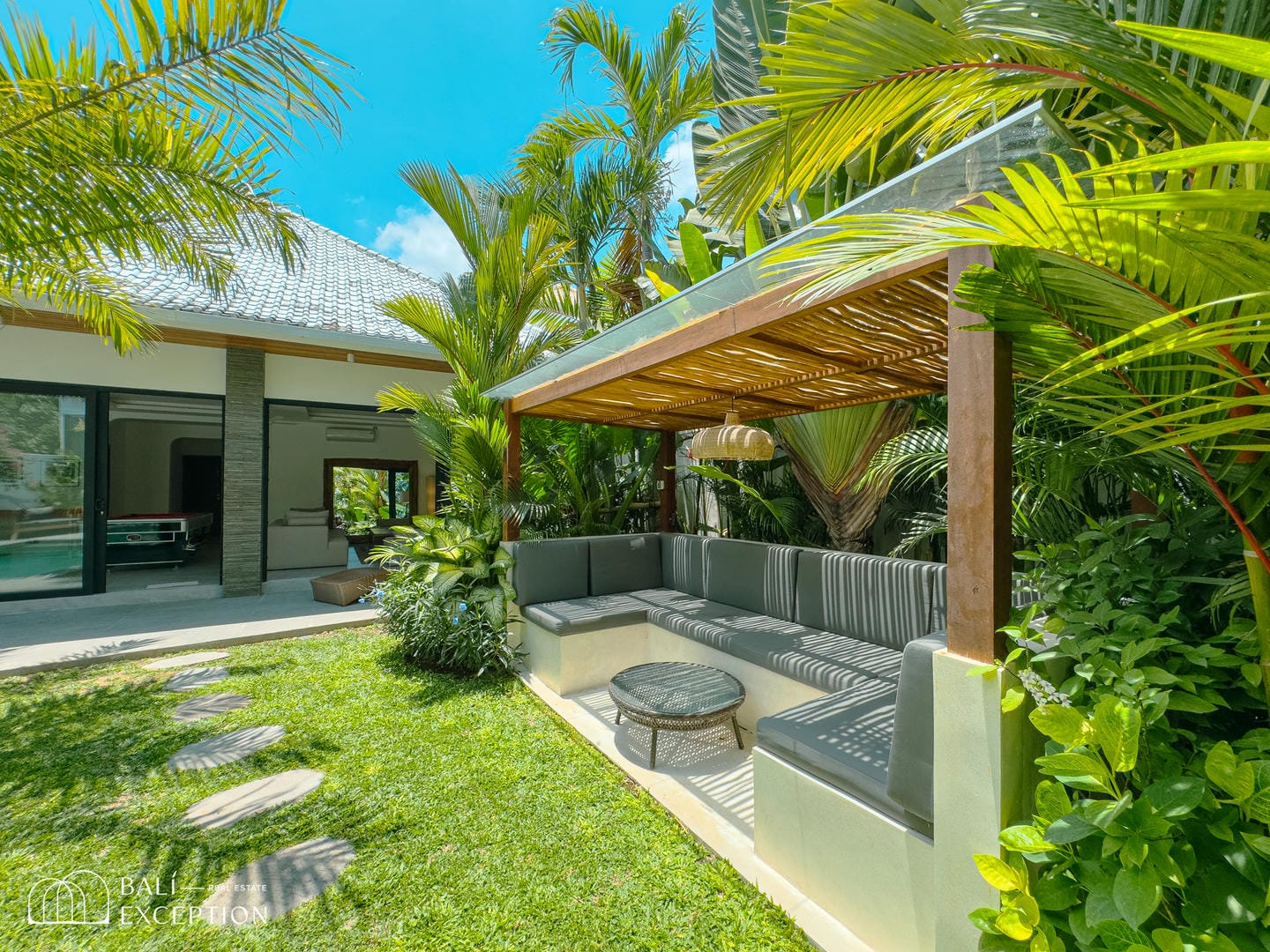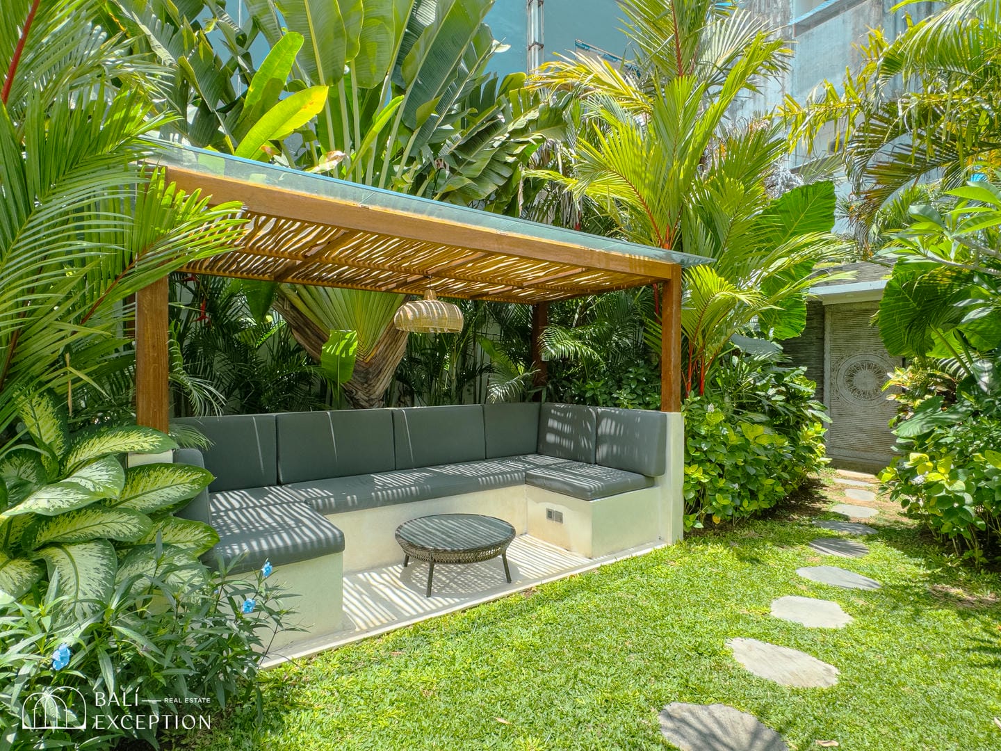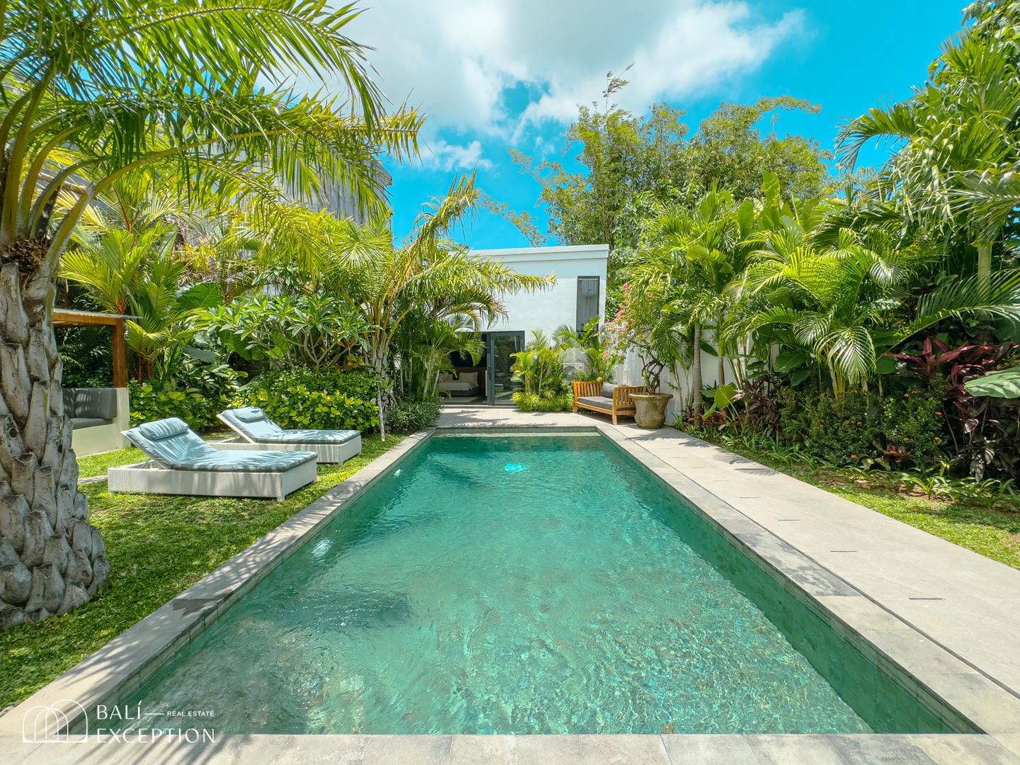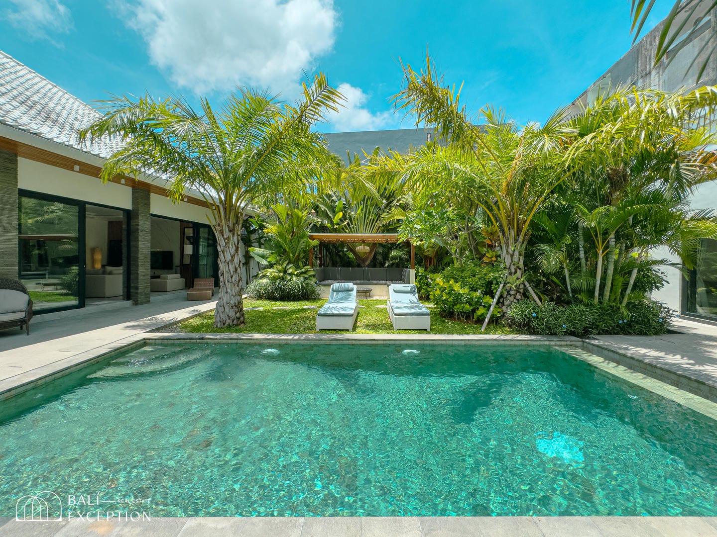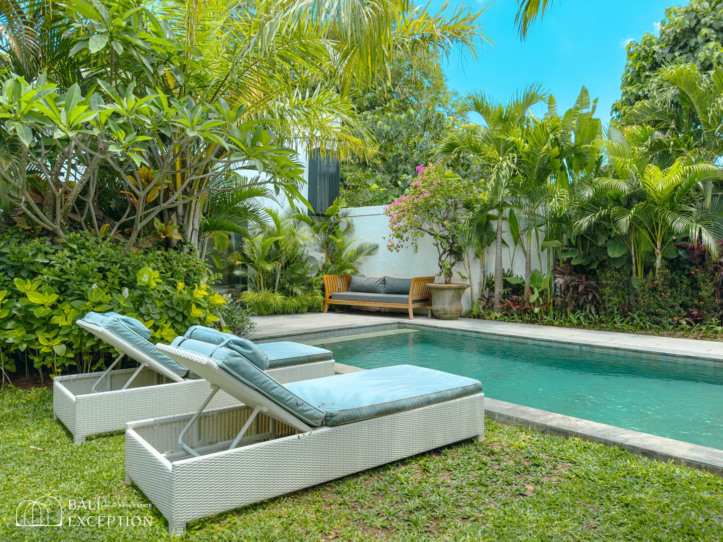 À l’extérieur, la pièce maîtresse est une piscine rafraîchissante de 4×8 m, entourée d’un jardin luxuriant et d’une grande terrasse idéale pour se relaxer sous le soleil de Bali.