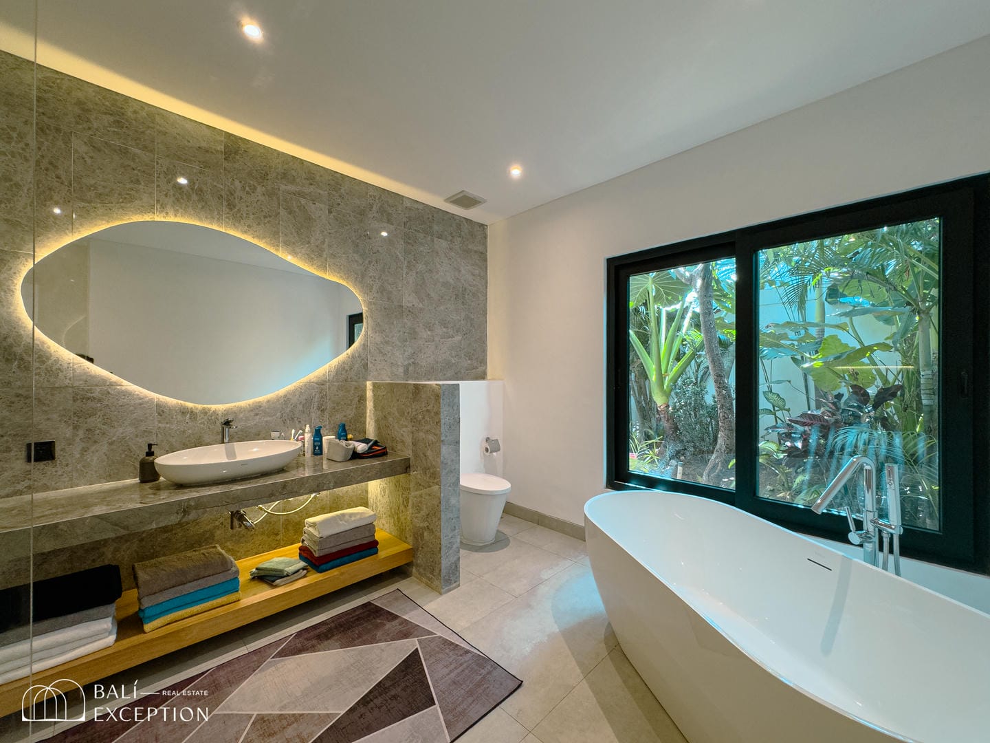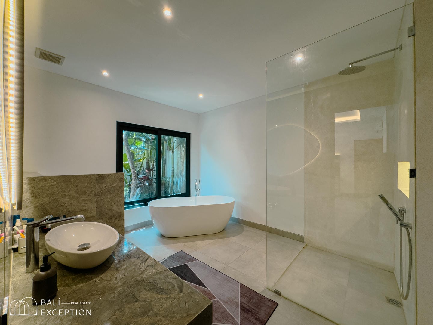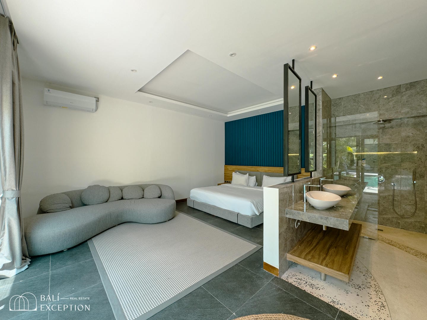 Cette villa se distingue non seulement par son design et son confort, mais aussi par la manière dont elle relie élégance intérieure et charme tropical balinais.