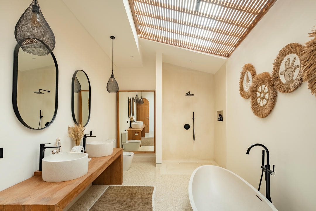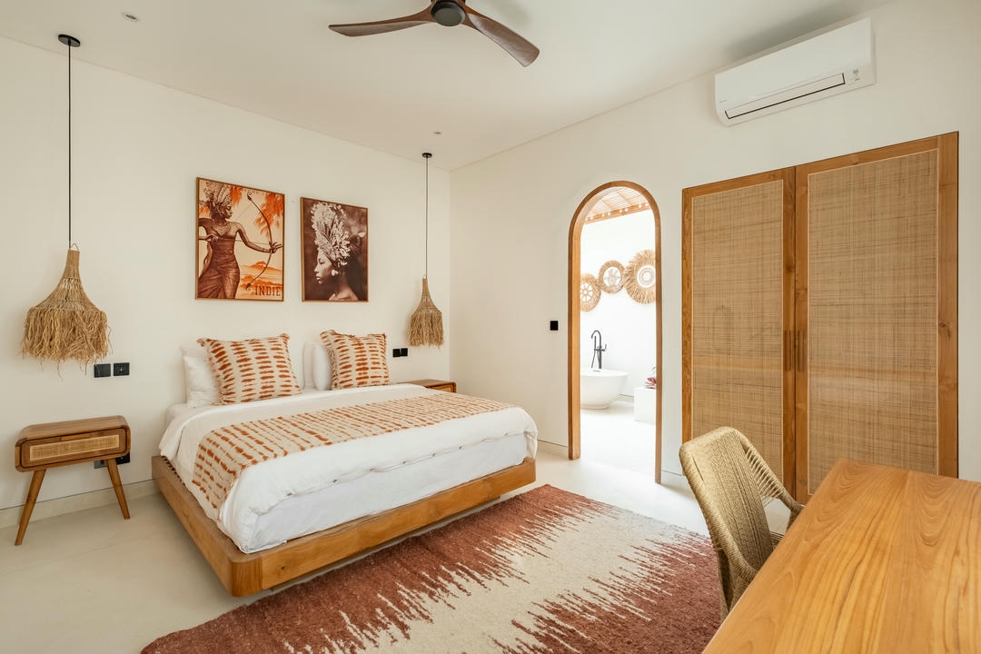 Implantée sur un généreux terrain de 600 m², la villa dispose de 4 spacieuses chambres avec salles de bains attenantes, dont une baignoire dans la suite parentale. Le salon en contrebas, entièrement fermé et doté de hauts plafonds, baigne dans la lumière naturelle et bénéficie d’un aménagement élégant ainsi que d’une cuisine entièrement équipée. La villa dispose également d’un bureau privé et d’une salle de cinéma dédiée, offrant un confort supplémentaire pour le travail, le divertissement et la vie quotidienne.