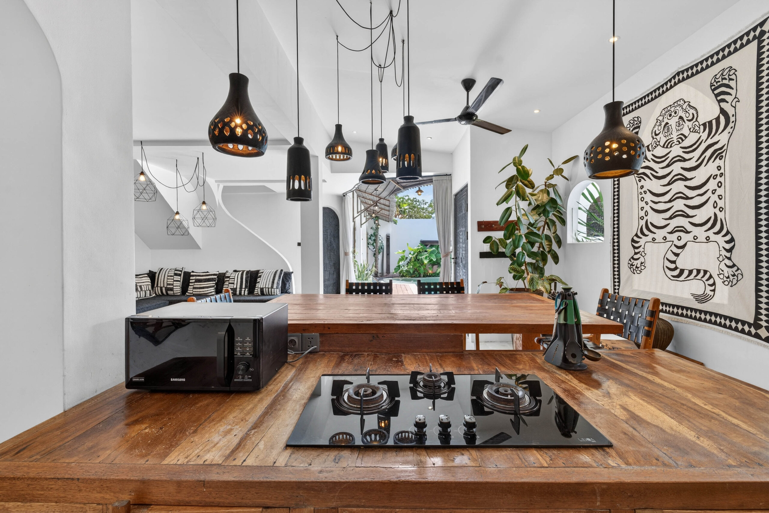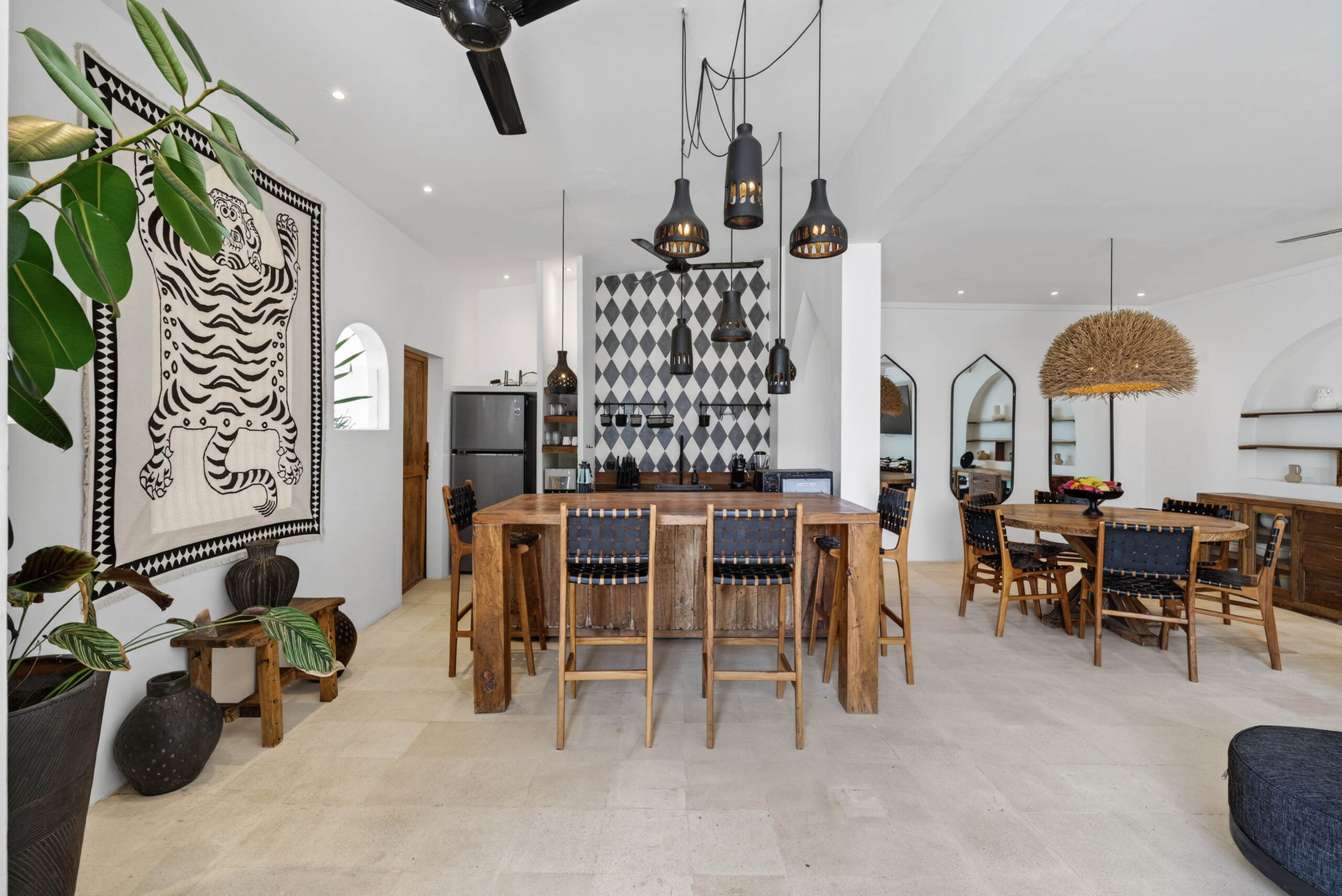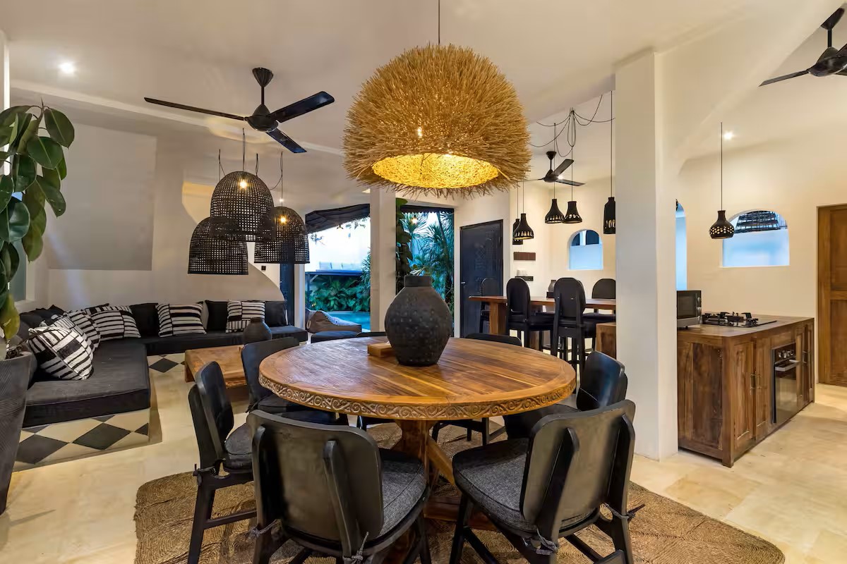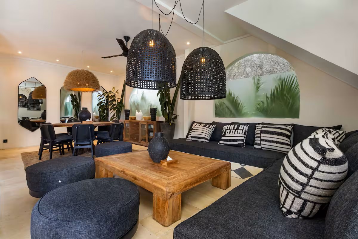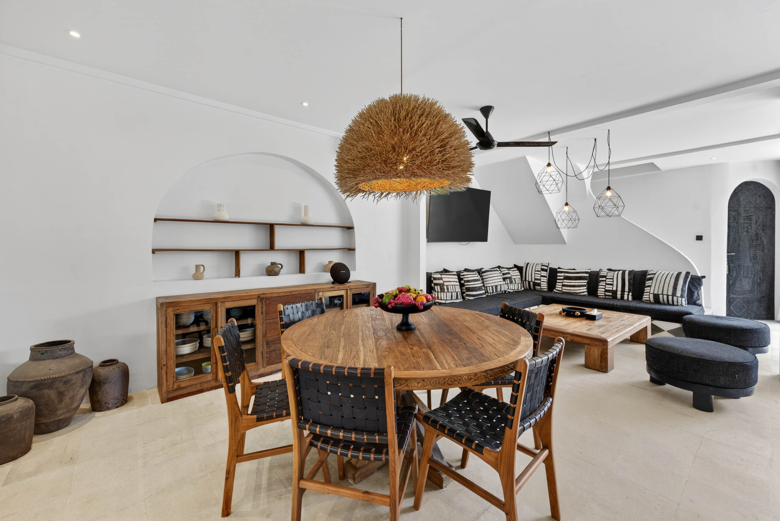 À l'intérieur, la villa s'étend sur deux étages et comprend 4 chambres et 3 salles de bains. Le design s'oriente vers un style tropical-moderne avec de subtiles influences ethniques, combinant des éléments en bois naturel, des détails artisanaux et des lignes épurées. Les intérieurs sont chaleureux et accueillants, avec un mélange équilibré de finitions contemporaines et de textures rustiques qui créent un espace de vie confortable et élégant.