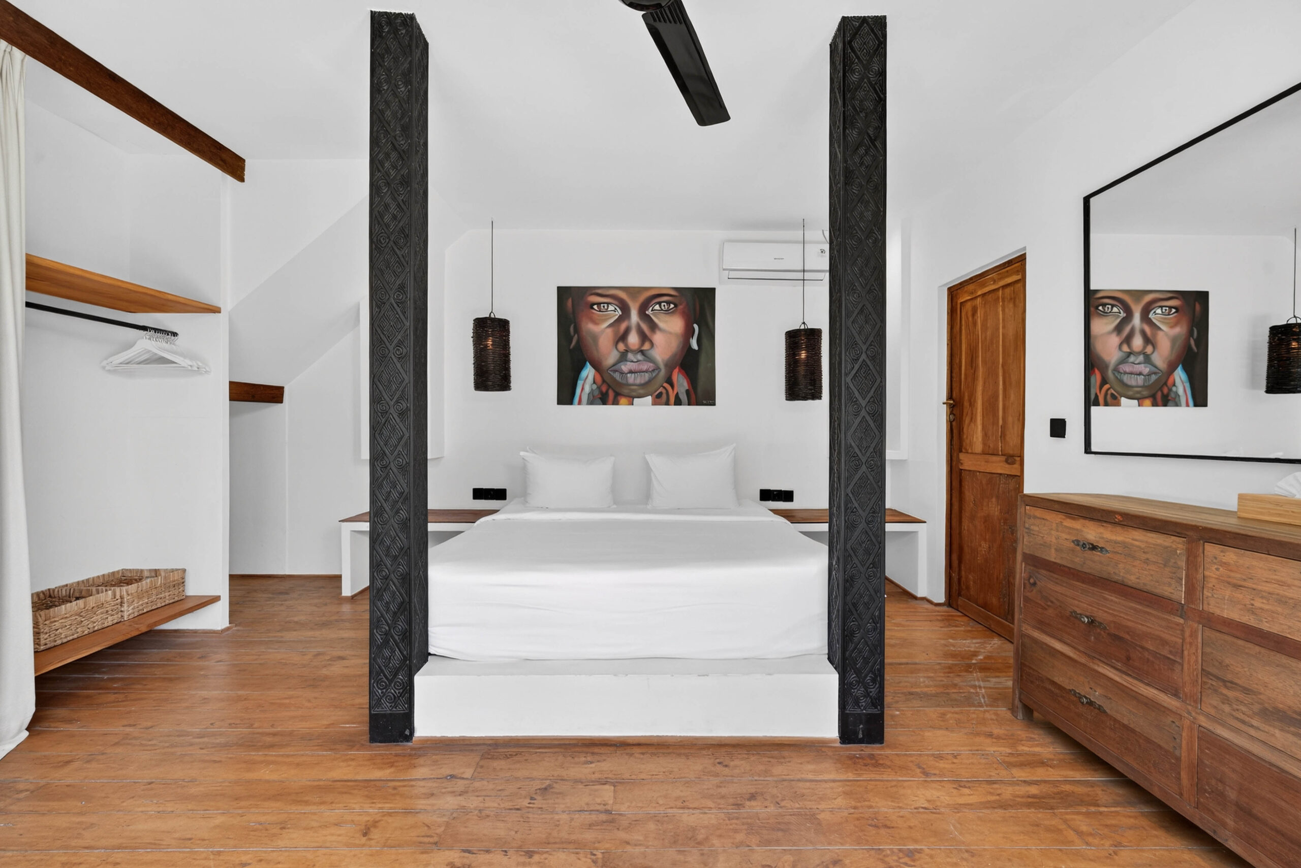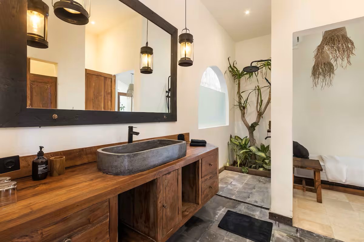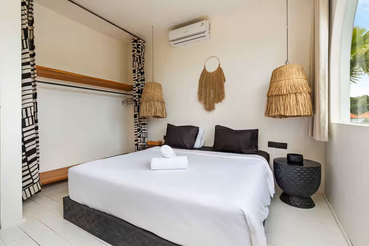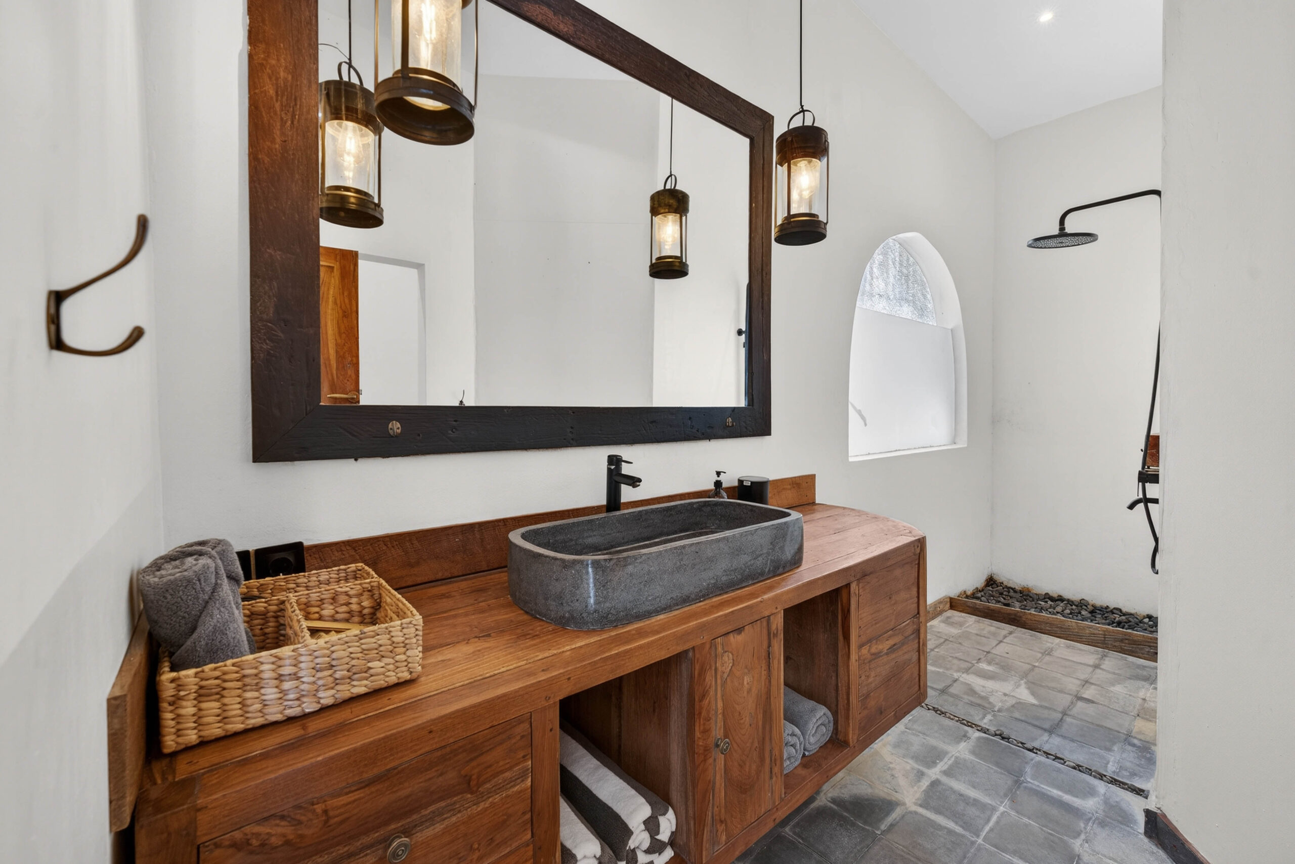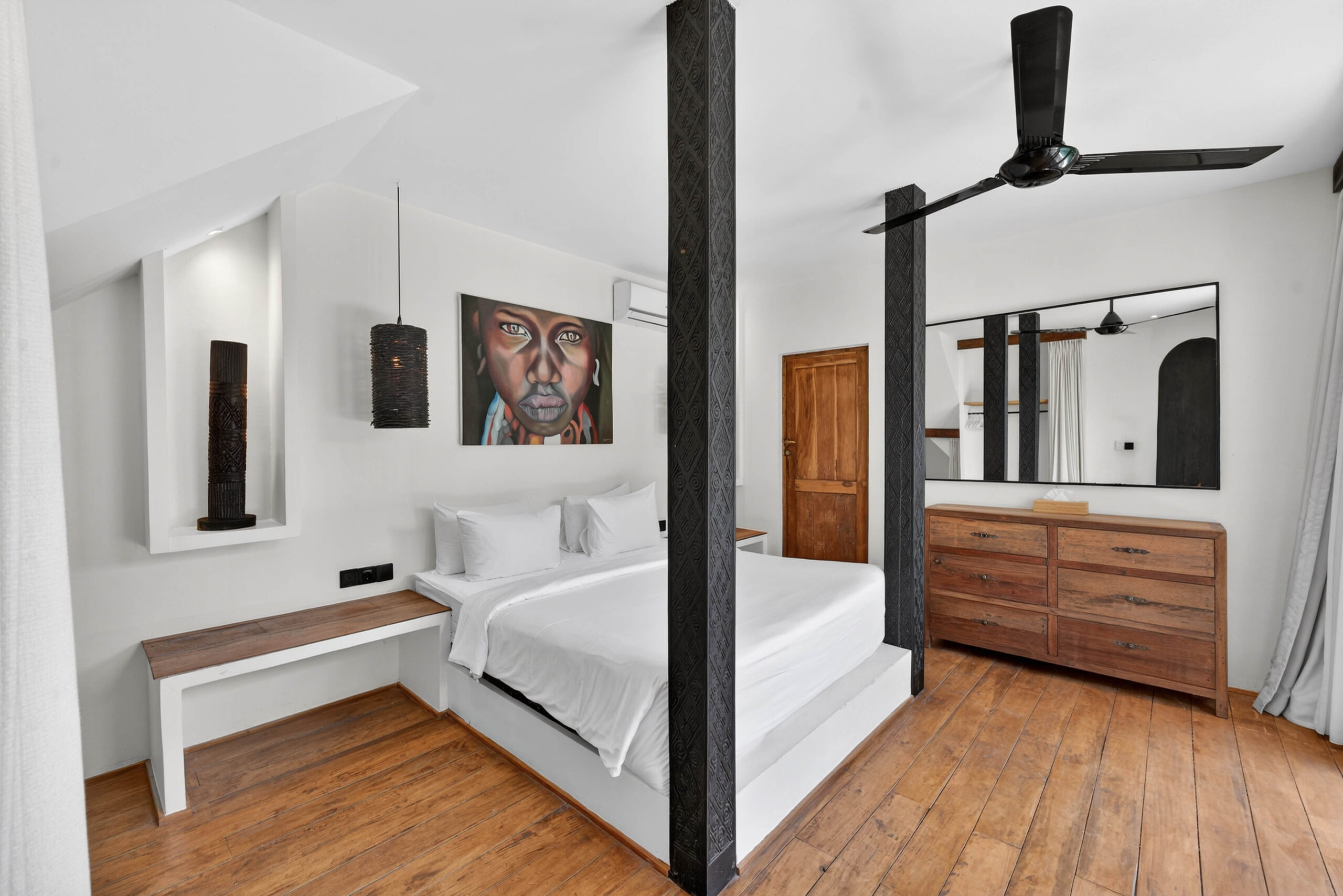 À l'intérieur, la villa s'étend sur deux étages et comprend 4 chambres et 3 salles de bains. Le design s'oriente vers un style tropical-moderne avec de subtiles influences ethniques, combinant des éléments en bois naturel, des détails artisanaux et des lignes épurées. Les intérieurs sont chaleureux et accueillants, avec un mélange équilibré de finitions contemporaines et de textures rustiques qui créent un espace de vie confortable et élégant.