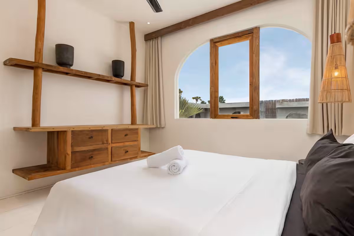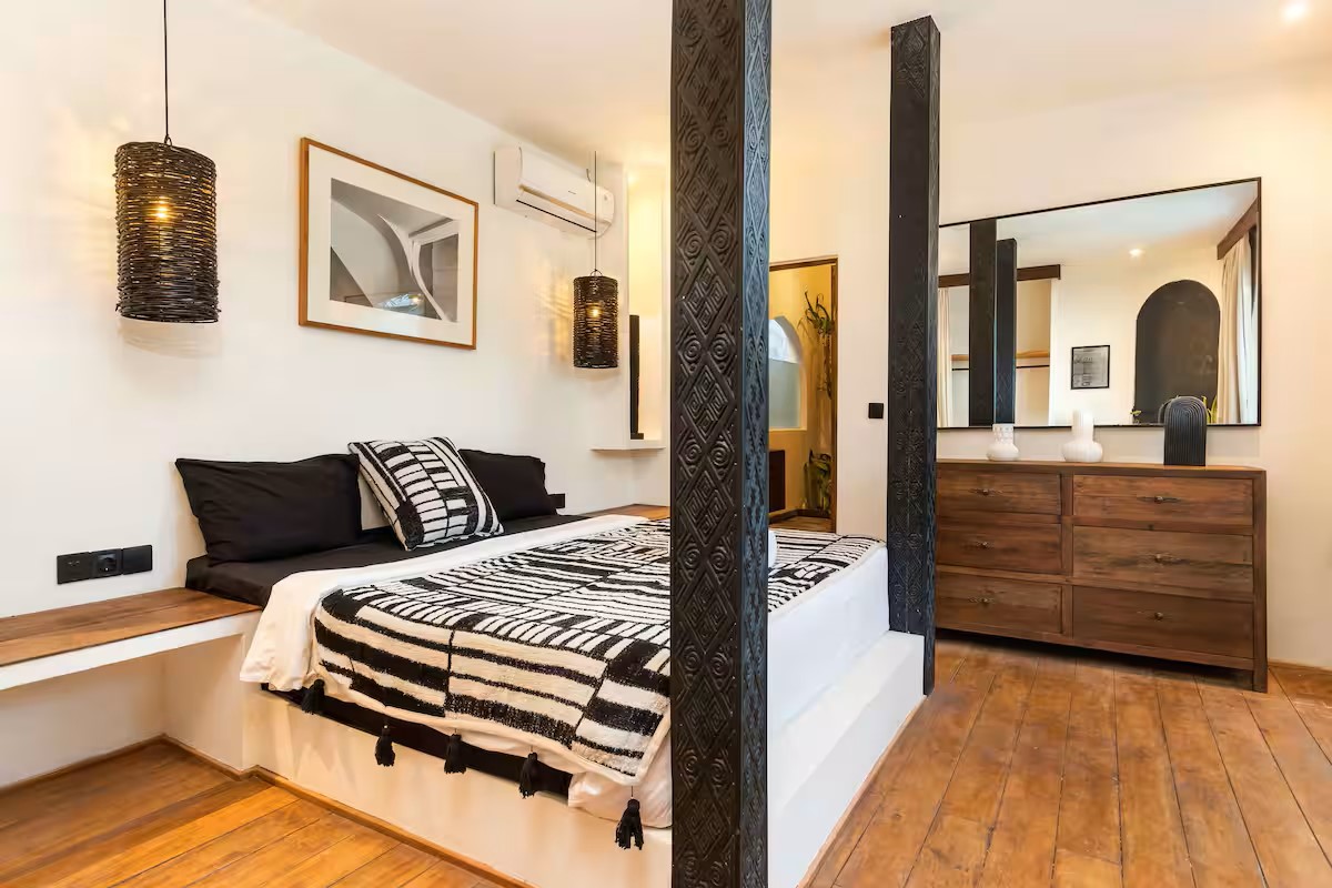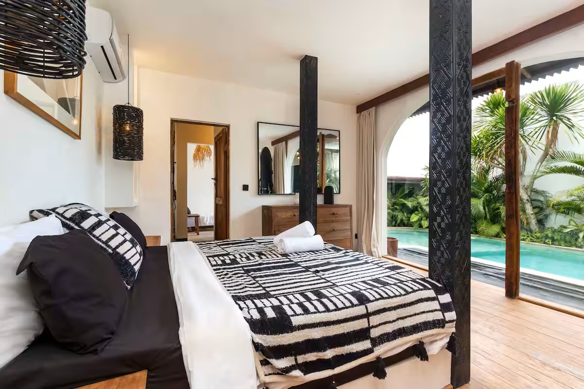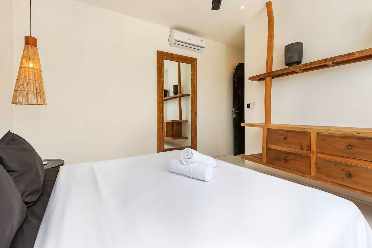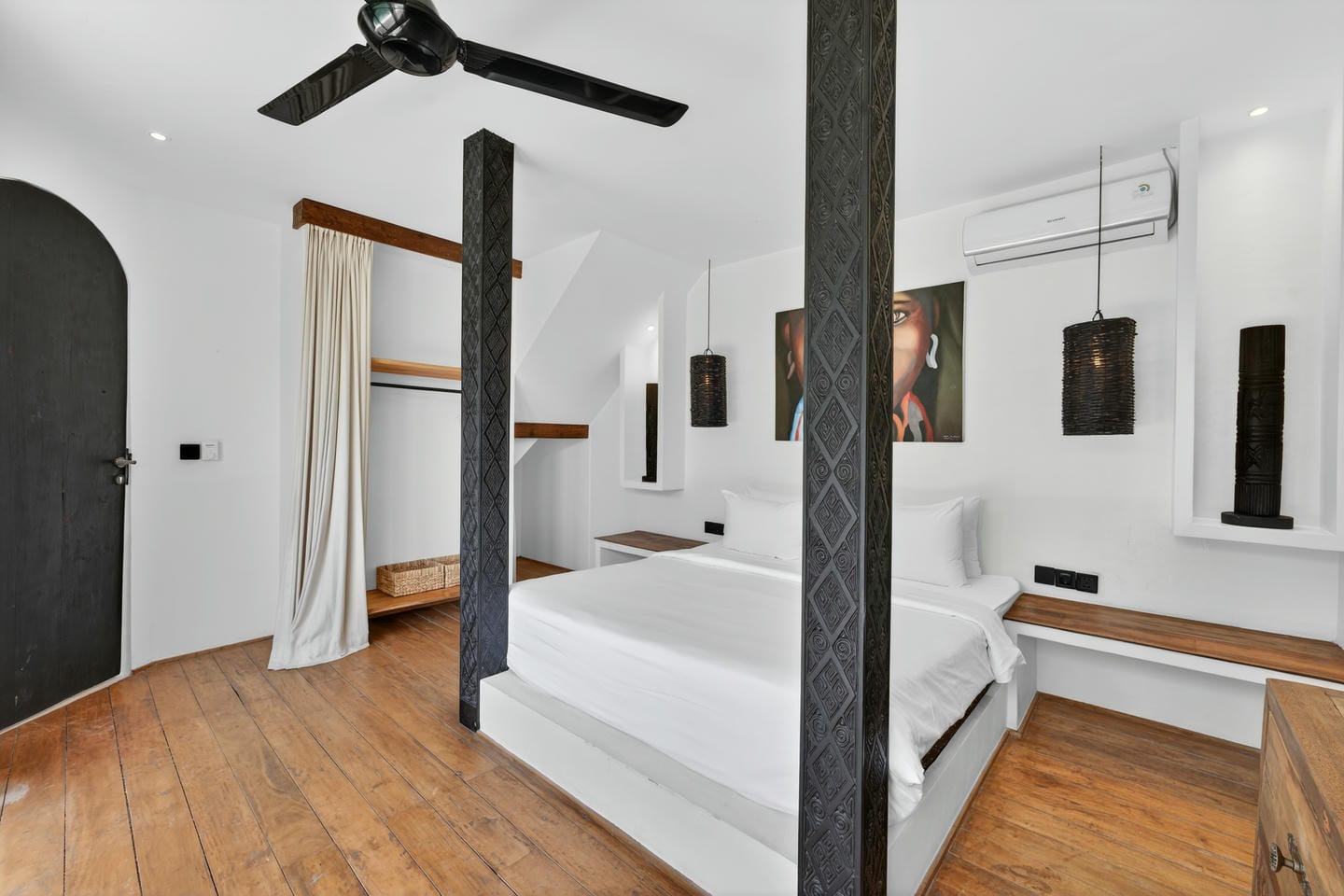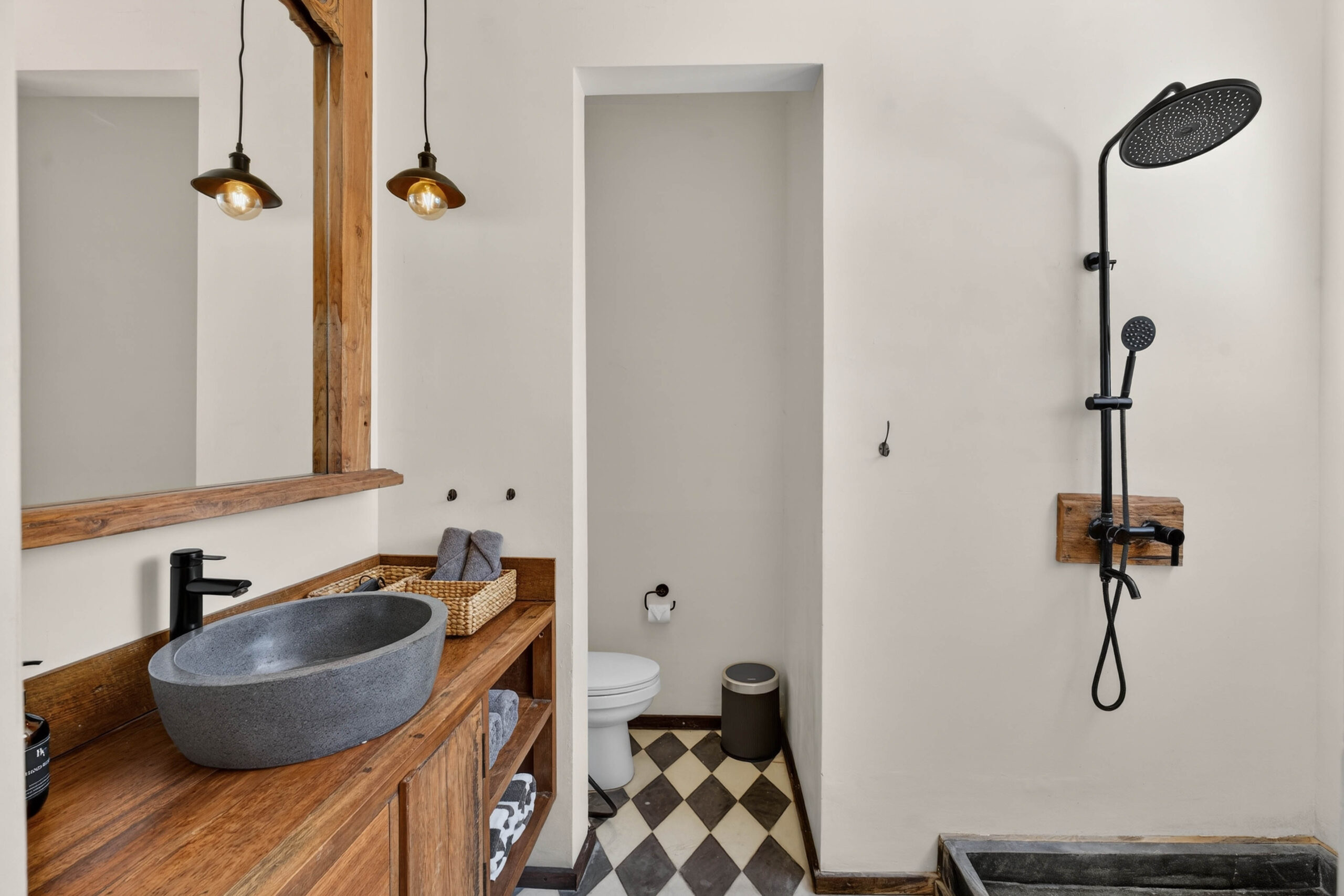 À l'intérieur, la villa s'étend sur deux étages et comprend 4 chambres et 3 salles de bains. Le design s'oriente vers un style tropical-moderne avec de subtiles influences ethniques, combinant des éléments en bois naturel, des détails artisanaux et des lignes épurées. Les intérieurs sont chaleureux et accueillants, avec un mélange équilibré de finitions contemporaines et de textures rustiques qui créent un espace de vie confortable et élégant.