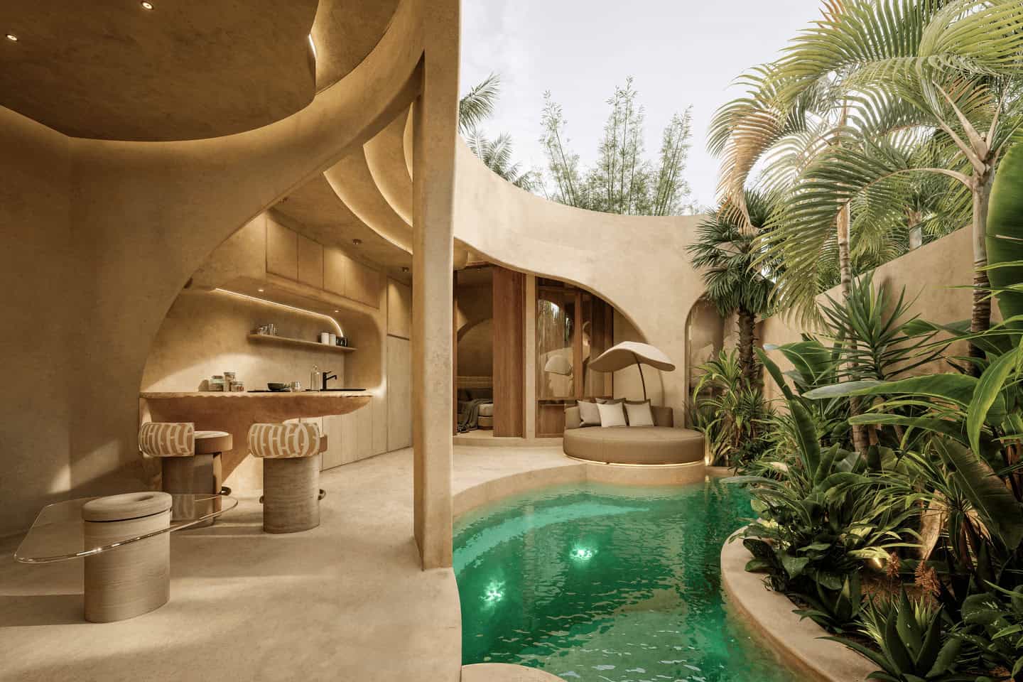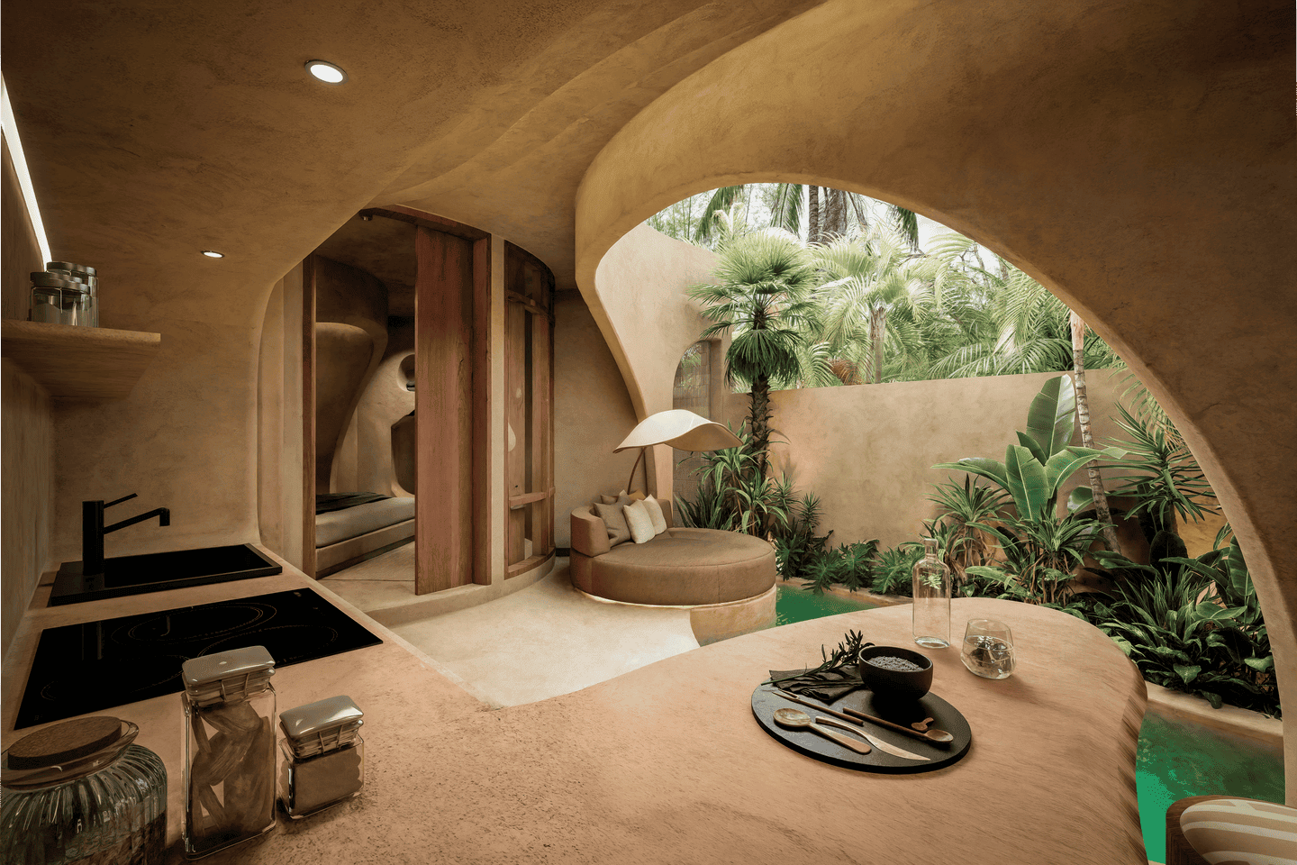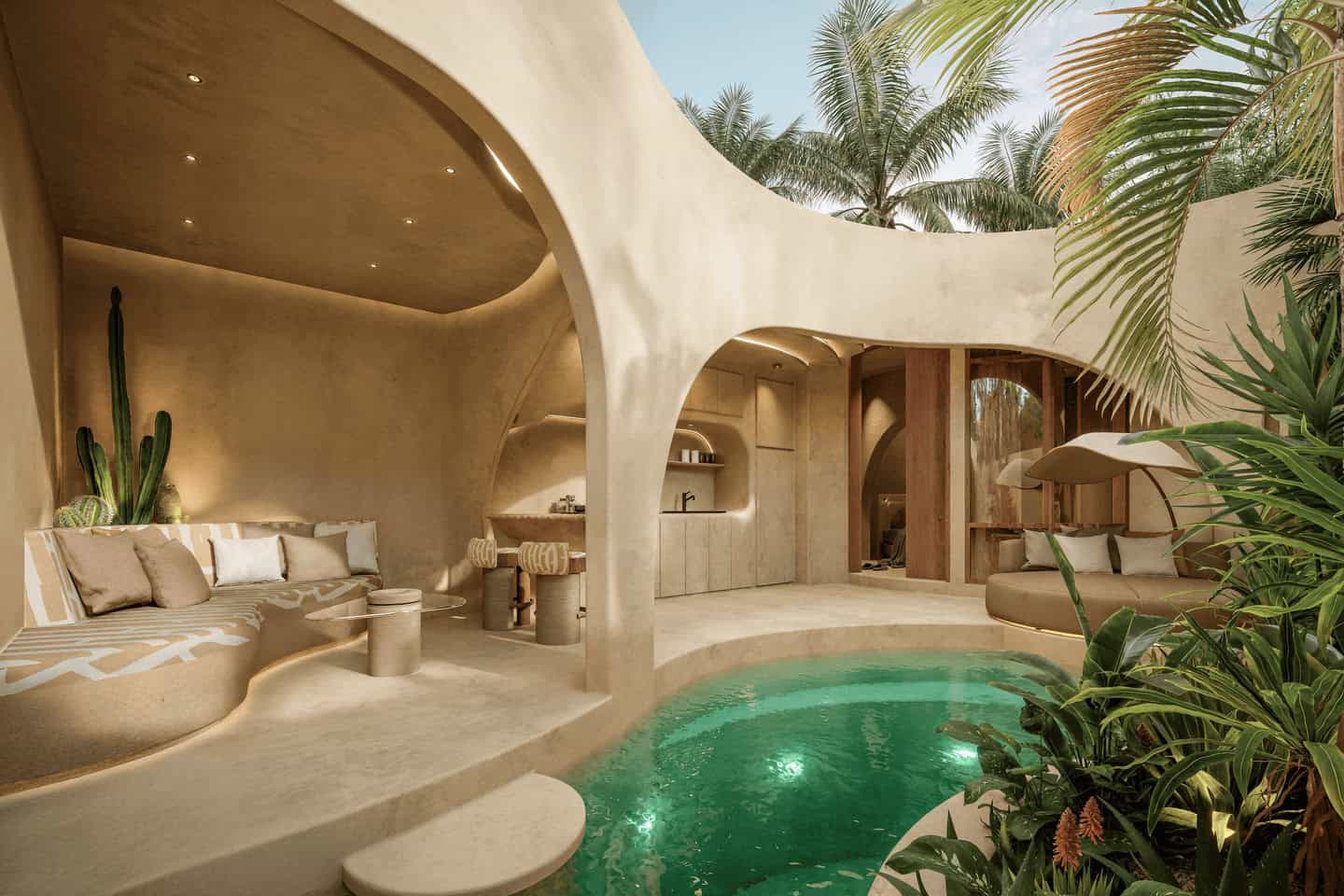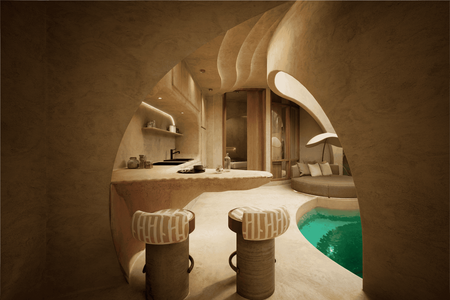 Cette charmante villa de style Tulum est implantée sur un terrain de 60 à 80 m² et offre un espace de vie ouvert qui laisse entrer la lumière naturelle et l’air frais. La cuisine entièrement équipée s’ouvre harmonieusement sur un salon confortable, créant un espace idéal pour se détendre ou recevoir. La villa est disponible en deux configurations : un étage ou deux étages, et comprend 1 chambre spacieuse avec salle de bain attenante, ce qui en fait un refuge idéal pour les voyageurs solos ou les couples en quête d’une escapade élégante et paisible.