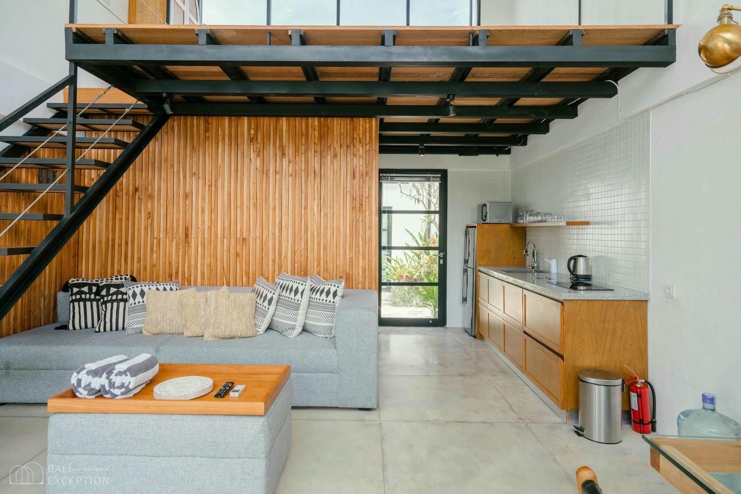 Le design loft tropical moderne avec mezzanine, offrant une configuration unique et très recherchée pour la location.