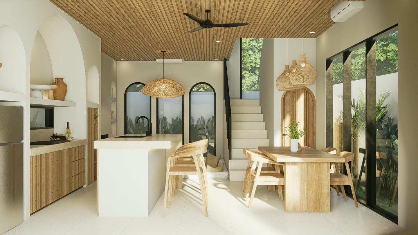 Cette villa d’une chambre est soigneusement conçue dans un style moderne tropical. La chambre spacieuse dispose d’une salle de bain attenante, complétée par une salle de bain invités supplémentaire. L’intérieur entièrement meublé comprend une cuisine intégrée, créant un espace de vie à la fois fonctionnel et élégant.