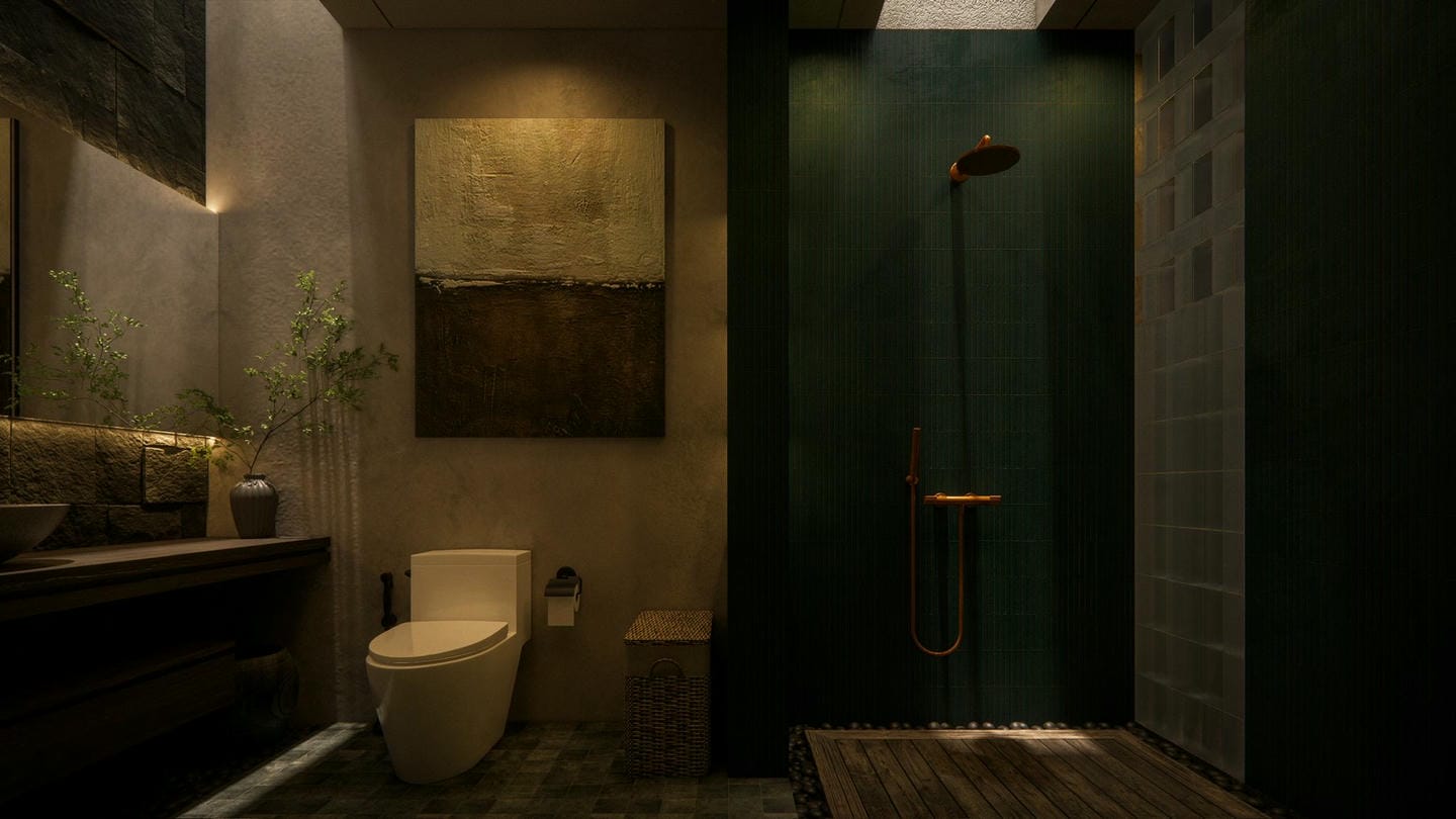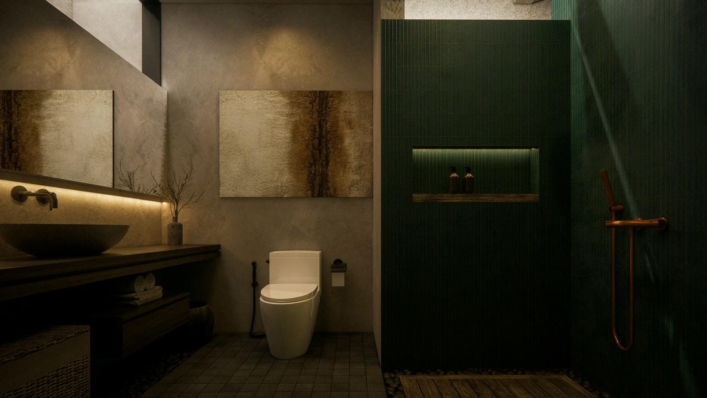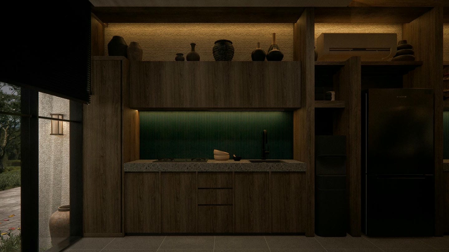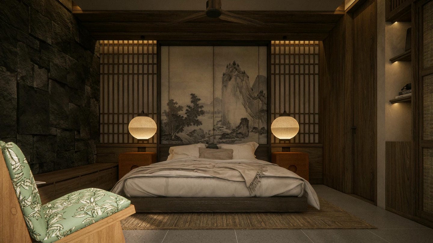 À l’entrée, une élégante statue Japandi vous accueille. Cette villa au design Japandi dispose de 2 chambres avec salles de bain privatives, d’un toilette invités, et d’un salon lumineux et ouvert avec de grandes fenêtres laissant entrer la lumière naturelle toute la journée. Entièrement meublée avec une décoration minimaliste aux tons naturels chaleureux, elle marie avec harmonie la simplicité japonaise et la fonctionnalité scandinave. La cuisine est entièrement équipée et prête à l’emploi.