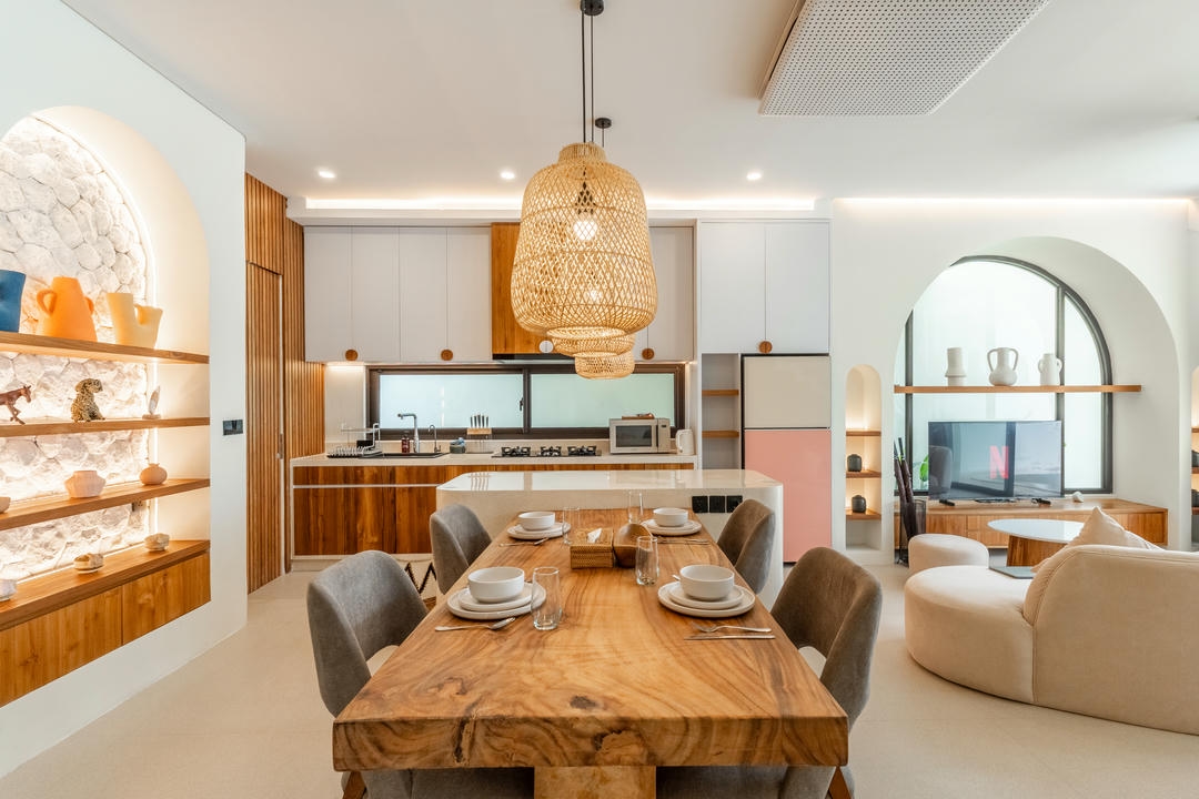 Cette villa sur deux niveaux comprend deux chambres avec salles de bain attenantes ainsi qu’un salon fermé sublimé par de grandes fenêtres à hauteur sous plafond, offrant un intérieur lumineux et aéré. Entièrement meublée et prête à être habitée, la villa dispose d’une cuisine moderne entièrement équipée avec îlot central, d’un espace salle à manger dédié, d’un toilette invités et d’une machine à laver pour plus de confort.