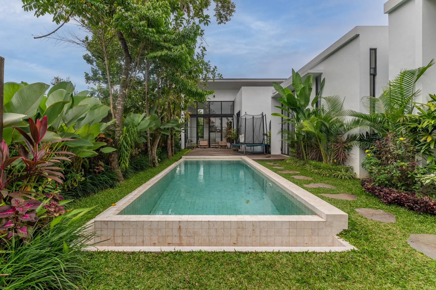 À l’extérieur, profitez d’une piscine privée accompagnée d’un mini jardin, créant un véritable havre de paix tropical.