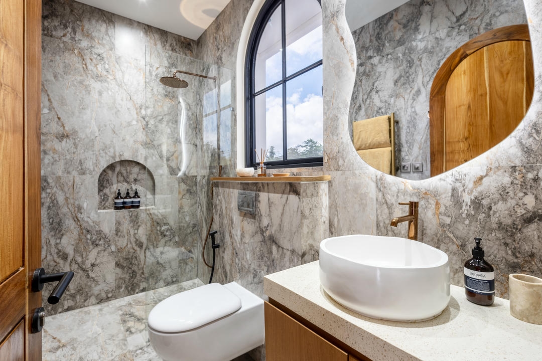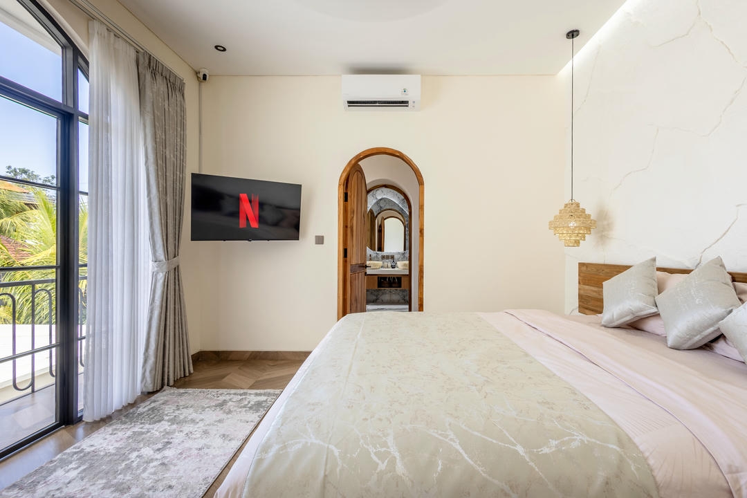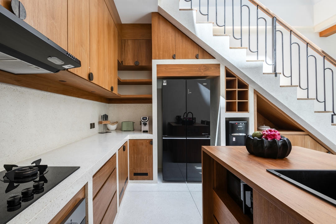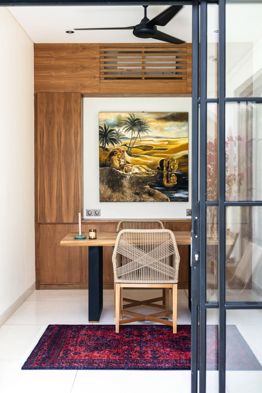 Cette villa à deux niveaux comprend 3 chambres avec salles de bain attenantes, un salon fermé avec de grandes baies vitrées et des plafonds hauts, et est entièrement meublée avec une cuisine moderne entièrement équipée. Un espace de travail dédié rend cette villa idéale pour y vivre ou travailler à distance.