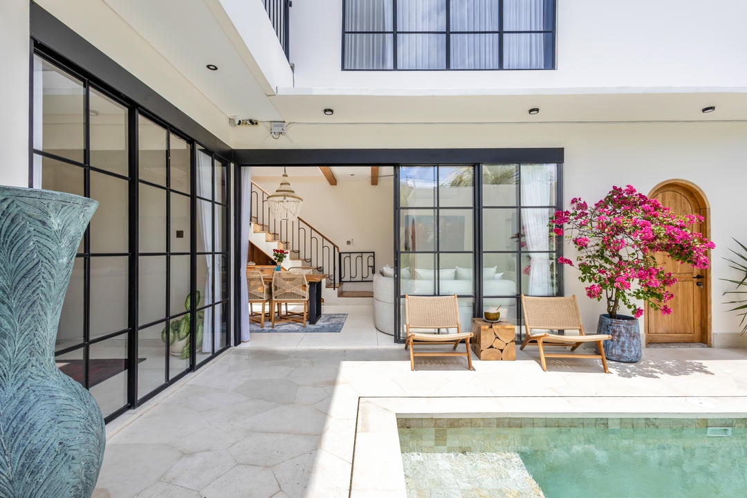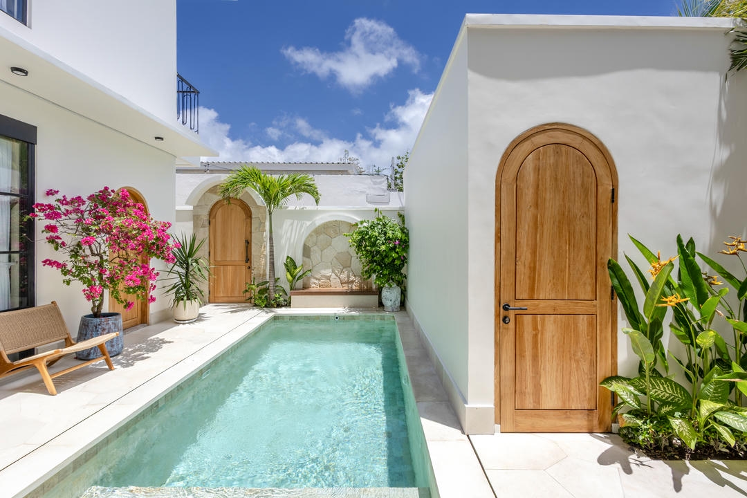 À l’extérieur, profitez d’une piscine privée, d’un espace lounge et d’une douche extérieure, parfaits pour se détendre dans une atmosphère tropicale.