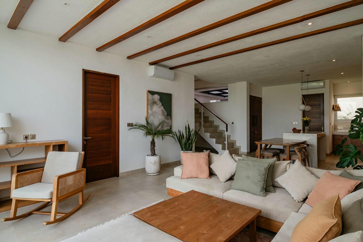 Située à Cemagi, à seulement 3 minutes de la plage, cette résidence soigneusement conçue allie confort moderne avec une forte attention portée à la santé, à la nature et à une qualité de vie durable. Nichée dans un quartier calme et familial, la maison offre intimité et tranquillité tout en restant proche des commodités essentielles, notamment de l’école internationale Bloom Preschool située à proximité. La propriété se trouve également à seulement 15 minutes de Canggu et à 15 minutes de la ville créative de Nuanu, ce qui la rend particulièrement adaptée aux familles.
