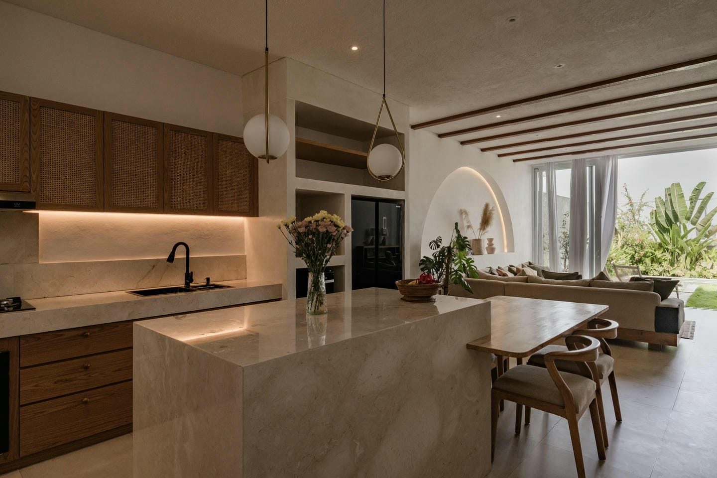 Cette villa présente un design tropical moderne avec de subtiles influences méditerranéennes, caractérisé par des lignes architecturales épurées et une atmosphère lumineuse et aérée. Répartie sur deux étages, la villa offre un agencement spacieux avec 4 chambres et 4 salles de bains, idéal pour une vie confortable ou pour recevoir des invités. L’espace de vie adopte un concept ouvert reliant harmonieusement le salon, la salle à manger et la cuisine, tandis que les hauts plafonds, les grandes fenêtres et les portes coulissantes en verre permettent une abondance de lumière naturelle et créent une connexion fluide entre les espaces intérieurs et extérieurs. Des matériaux de haute qualité sont utilisés dans toute la villa, complétés par des peintures naturelles non toxiques et un système complet de filtration de l’eau. La propriété dispose également d’une piscine d’eau salée sans produits chimiques, ainsi que d’un sauna et d’un bain glacé conçus pour la récupération et le bien-être.