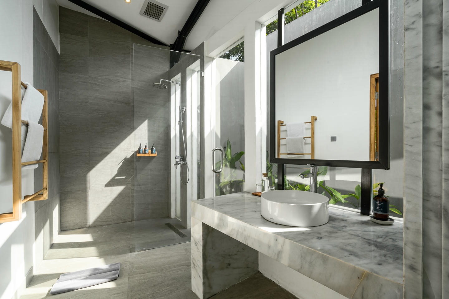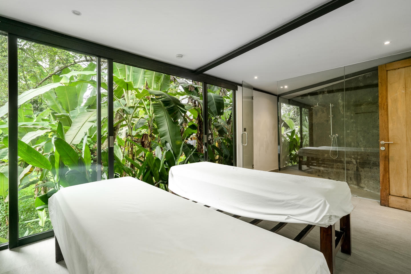 À l’extérieur, le véritable point fort est la spectaculaire piscine à débordement de 90 m², surplombant une végétation luxuriante et offrant une vue imprenable sur la jungle — un véritable sanctuaire privé au cœur de la nature.