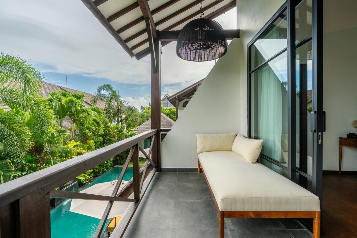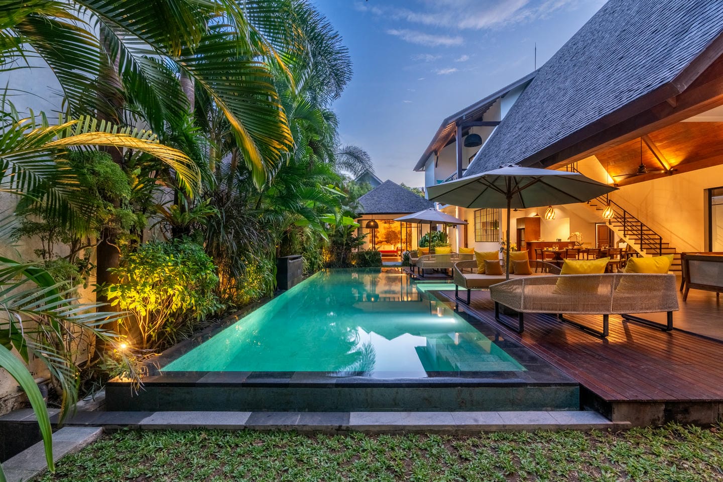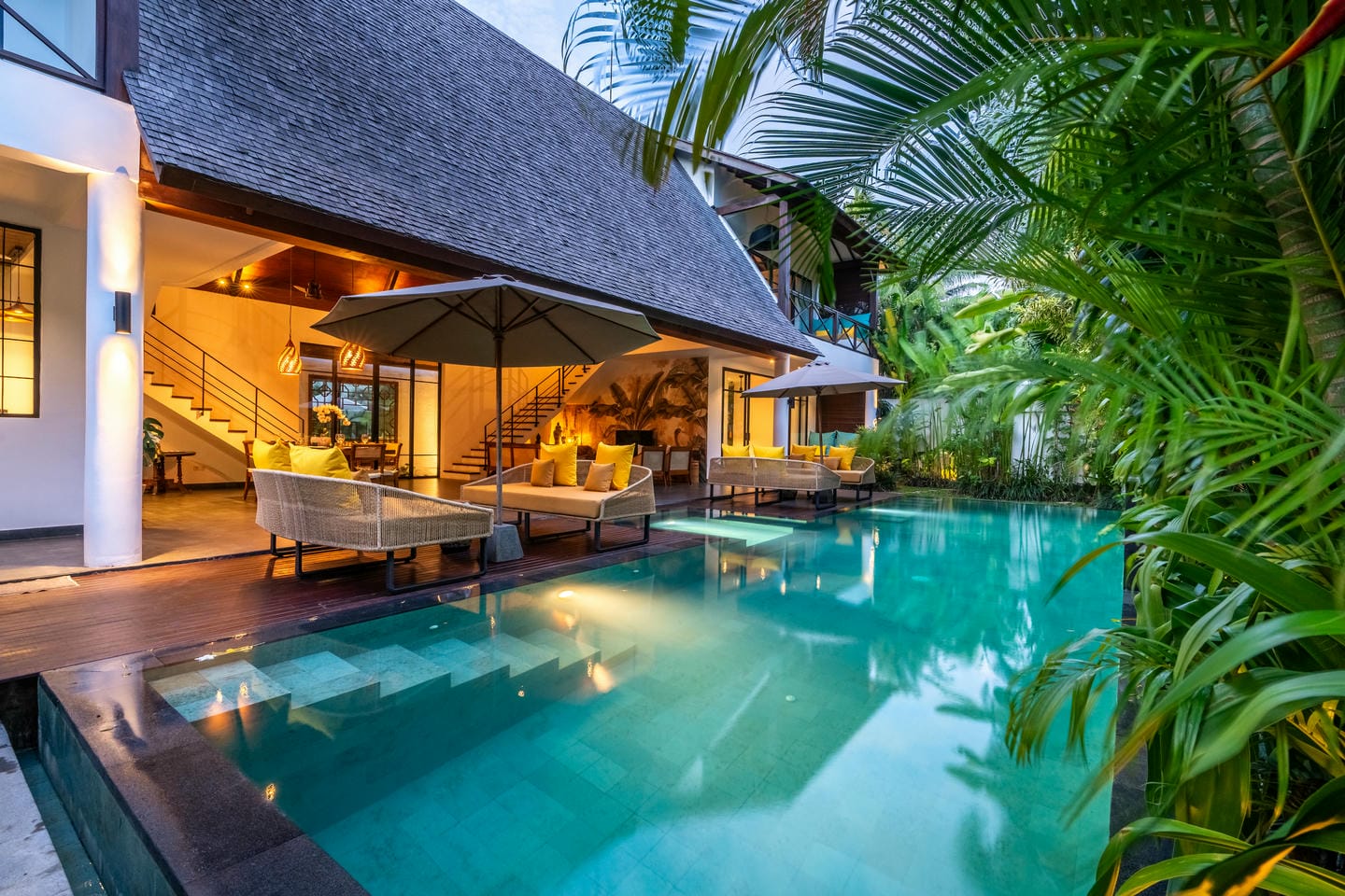 Une piscine de 48 m² constitue le cœur de la villa, agrémentée de canapés-lounge confortables, parfaits pour se détendre sous le soleil balinais.