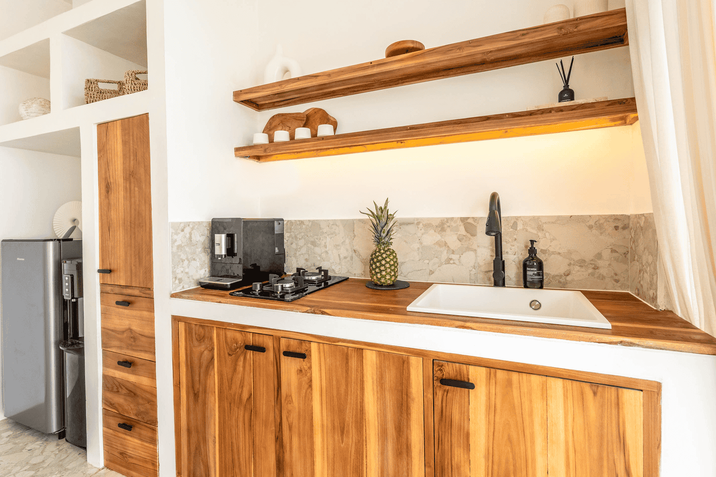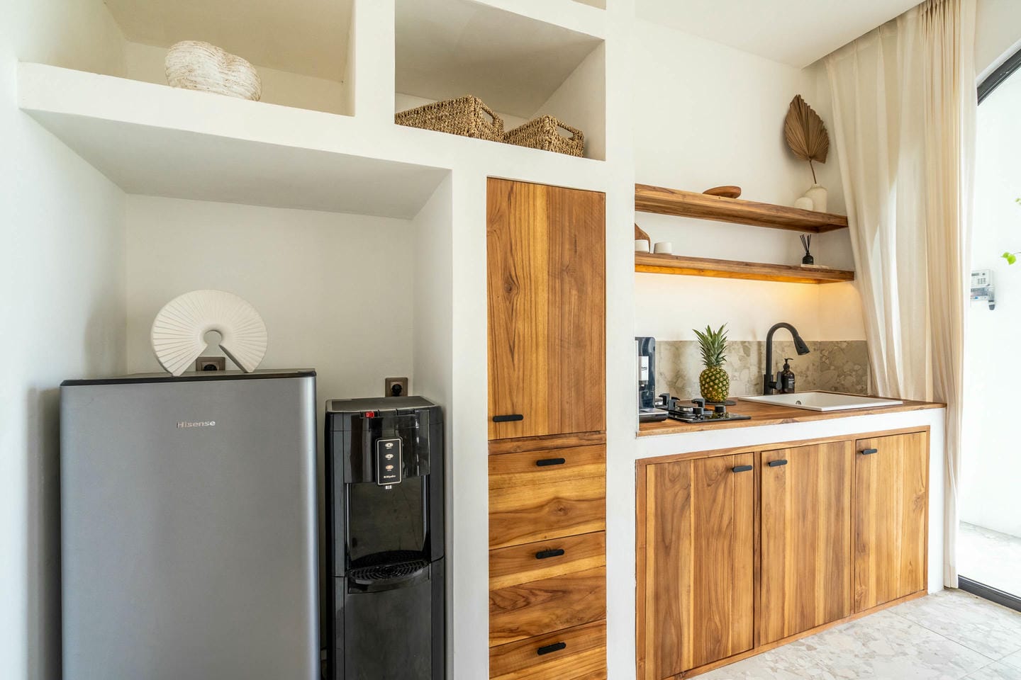 Située dans le quartier paisible de Tumbak Bayuh, cette villa de deux chambres offre une escapade sereine à quelques minutes de la plage de Pererenan, des cafés branchés et des boutiques de Canggu. Elle allie parfaitement tranquillité et accès facile au dynamisme de Bali.