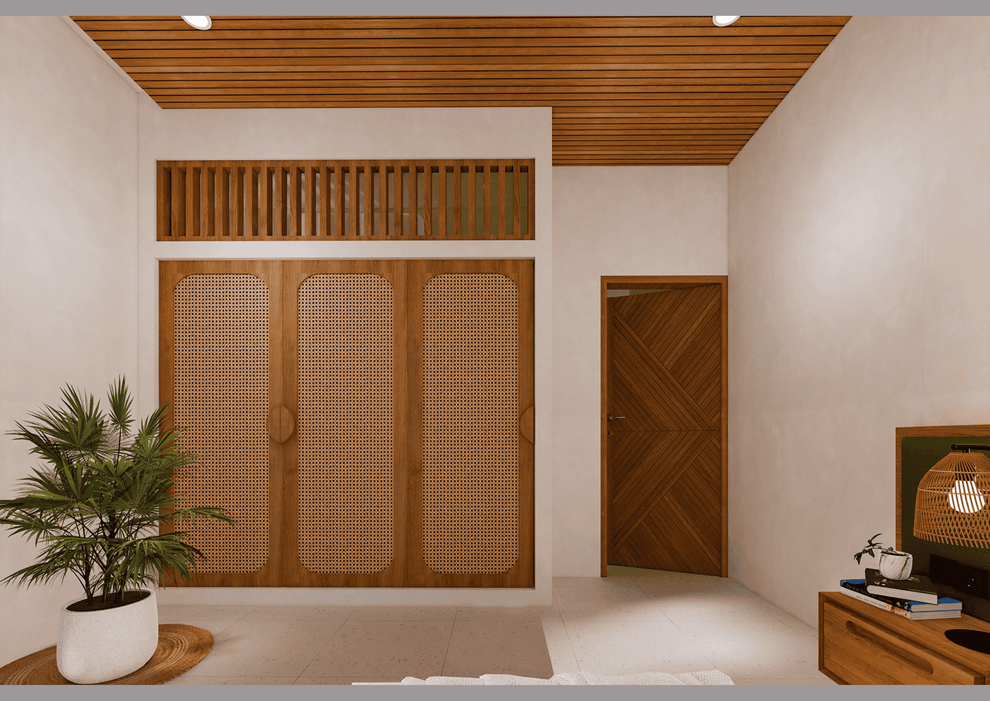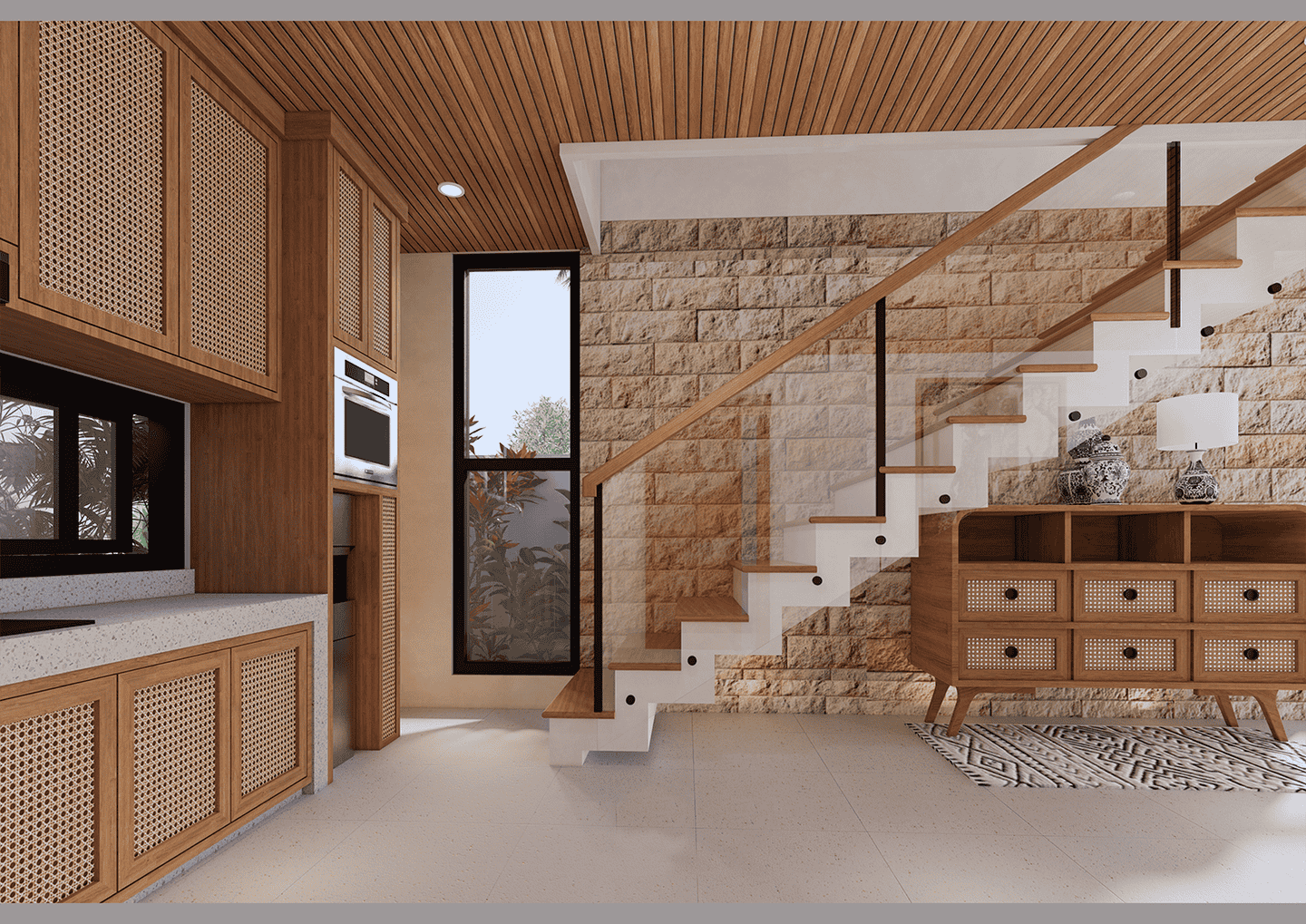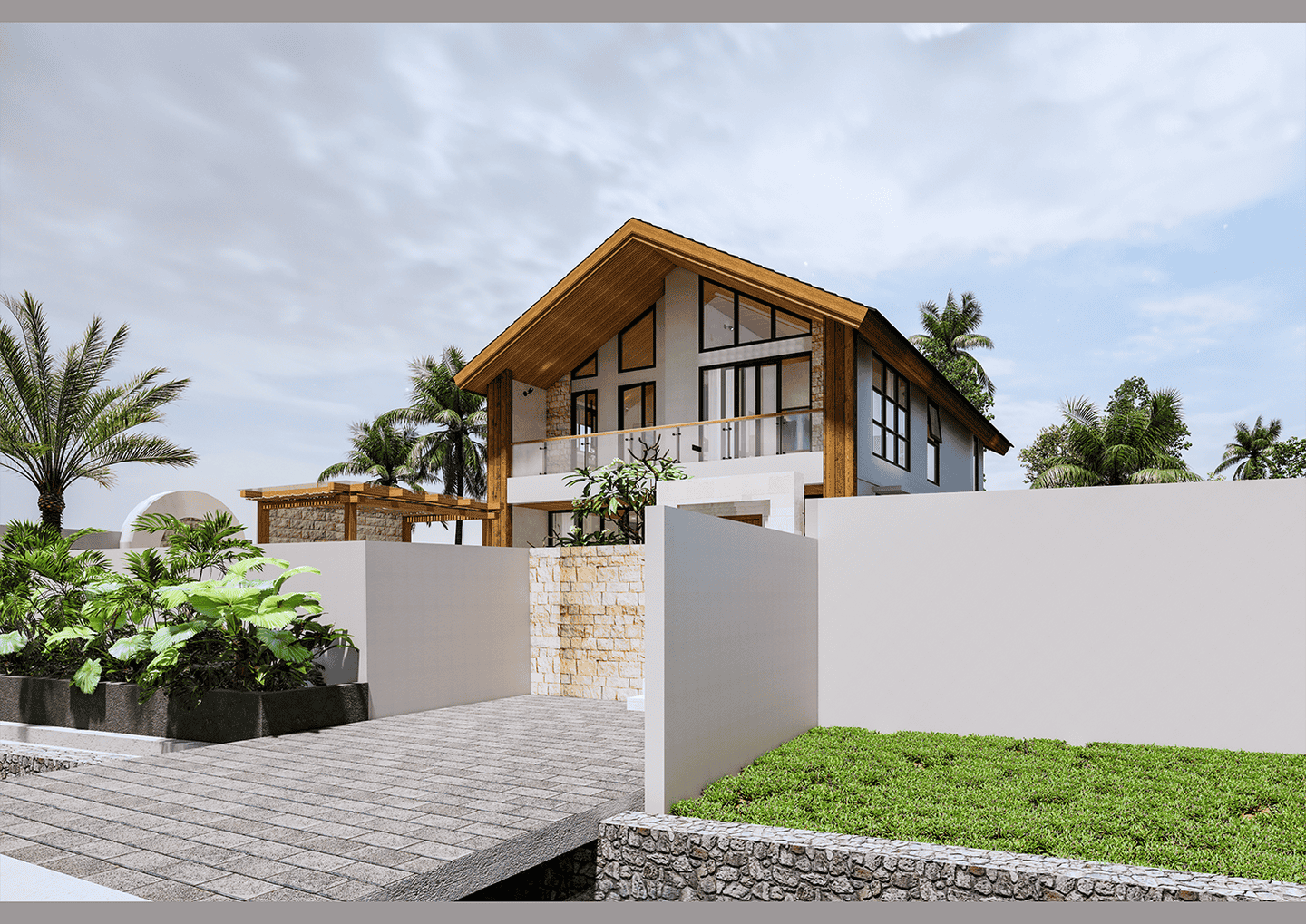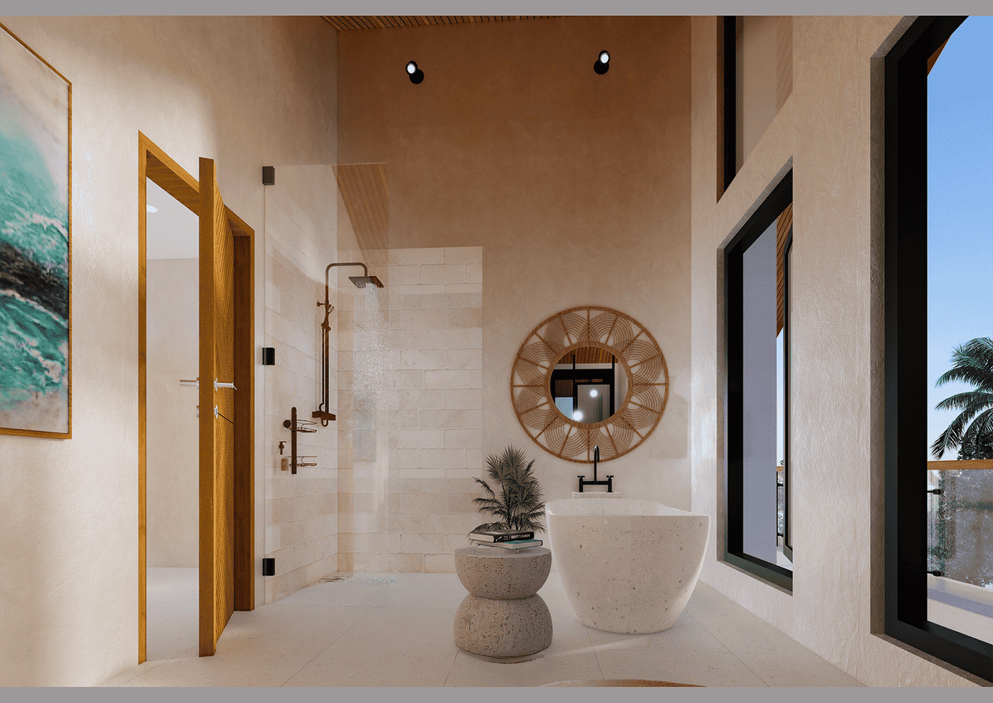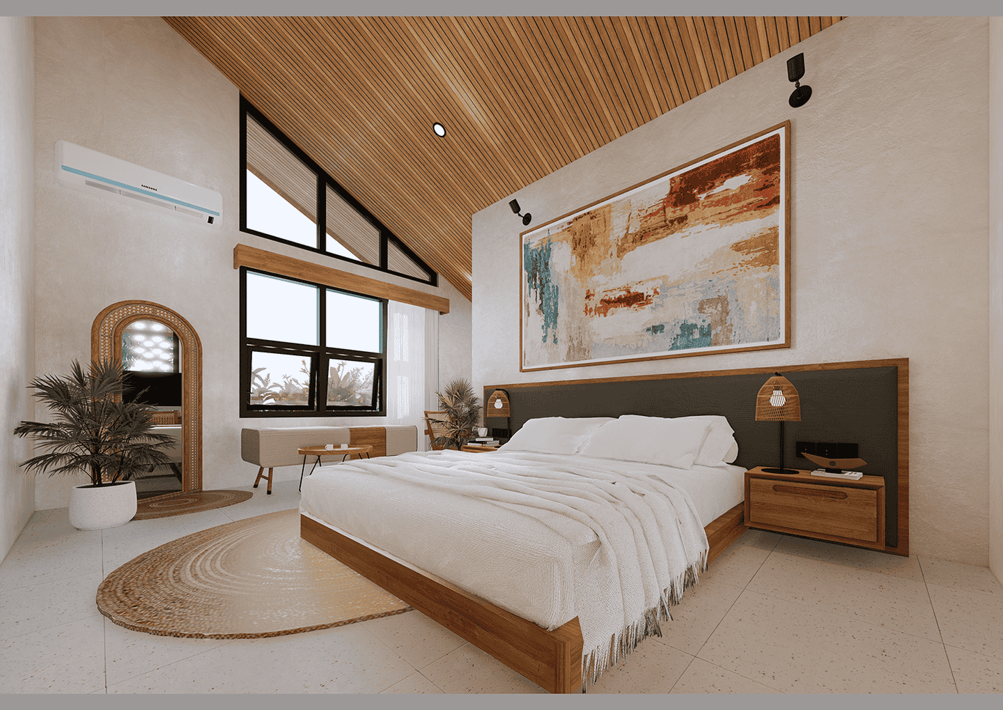 L’intérieur de la villa arbore un design tropical moderne avec une touche chaleureuse. De hauts plafonds, des finitions en bois naturel et de grandes baies vitrées créent une atmosphère aérée alliant confort intérieur et beauté extérieure. Chaque détail reflète un équilibre entre style et fonctionnalité, idéal pour la détente et la vie quotidienne.