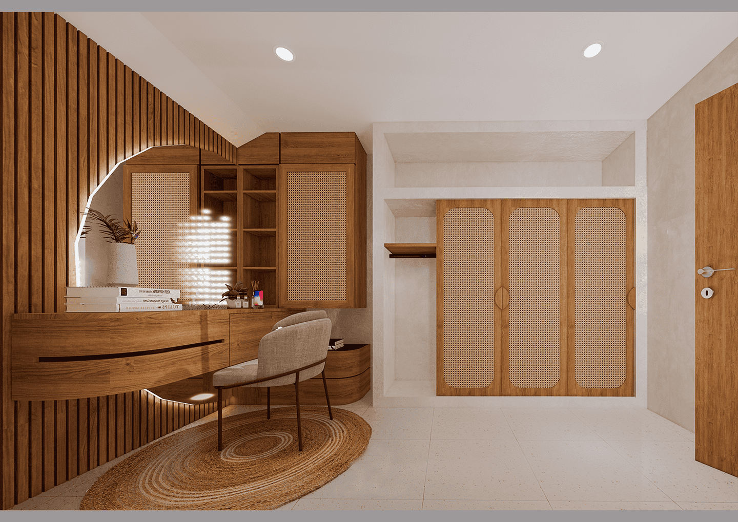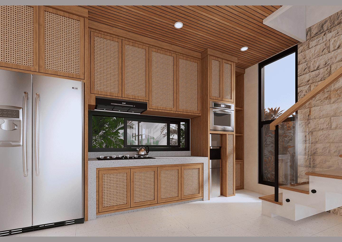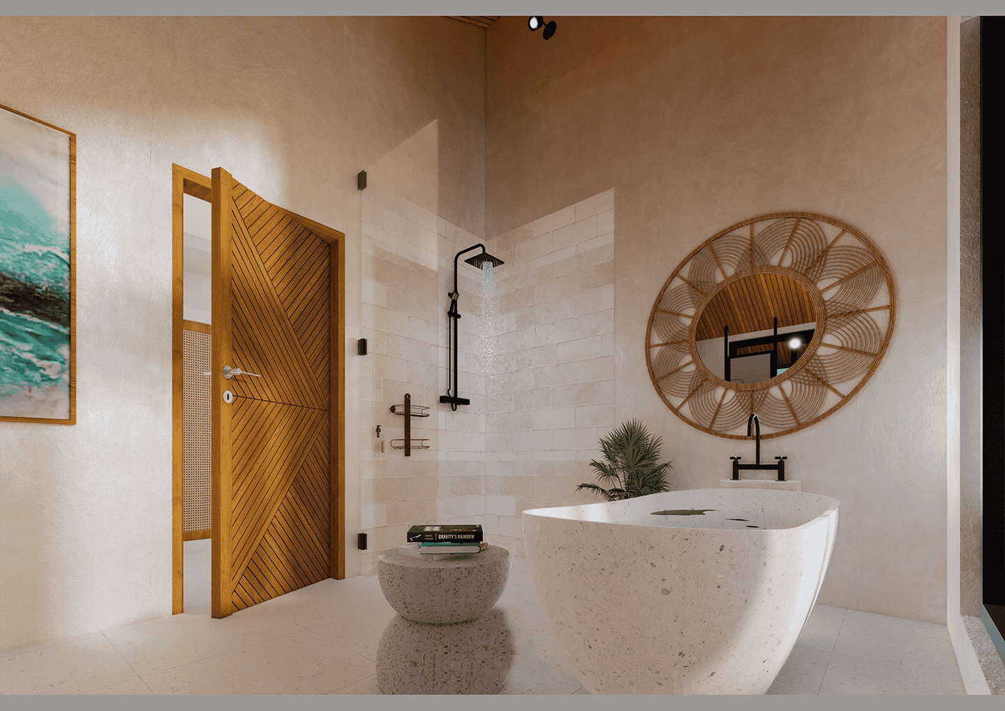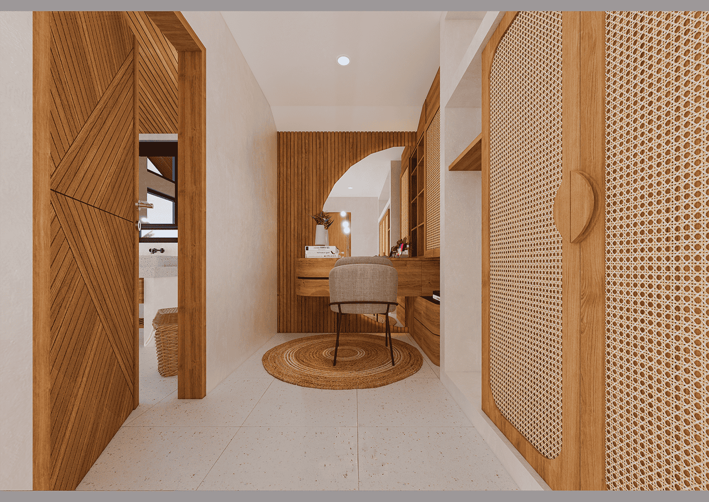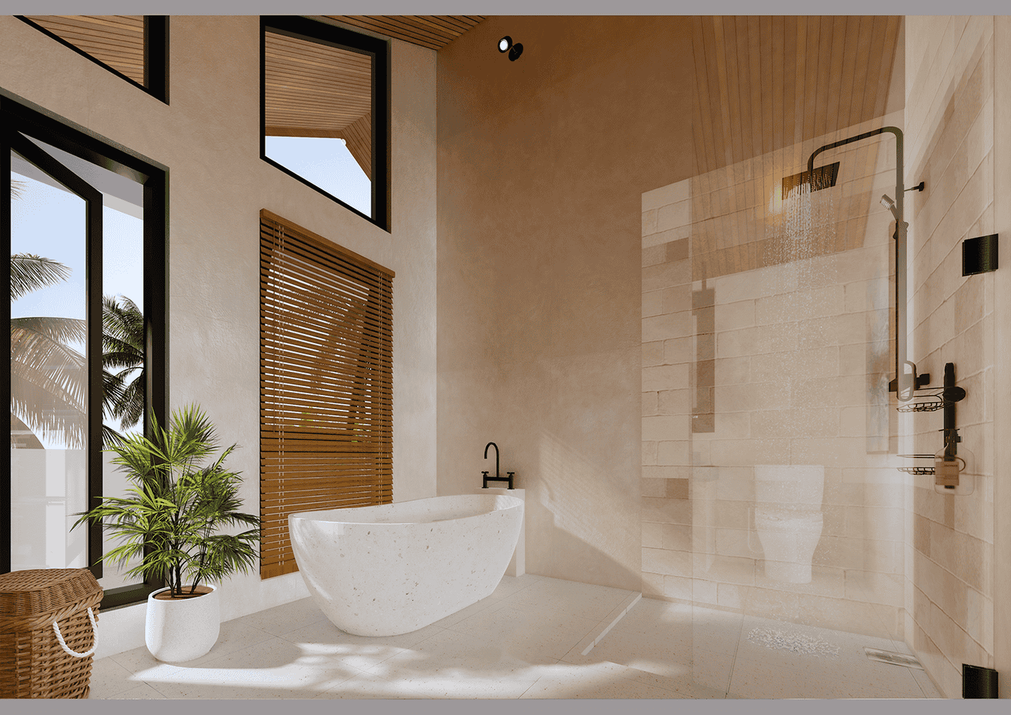 L’intérieur de la villa arbore un design tropical moderne avec une touche chaleureuse. De hauts plafonds, des finitions en bois naturel et de grandes baies vitrées créent une atmosphère aérée alliant confort intérieur et beauté extérieure. Chaque détail reflète un équilibre entre style et fonctionnalité, idéal pour la détente et la vie quotidienne.