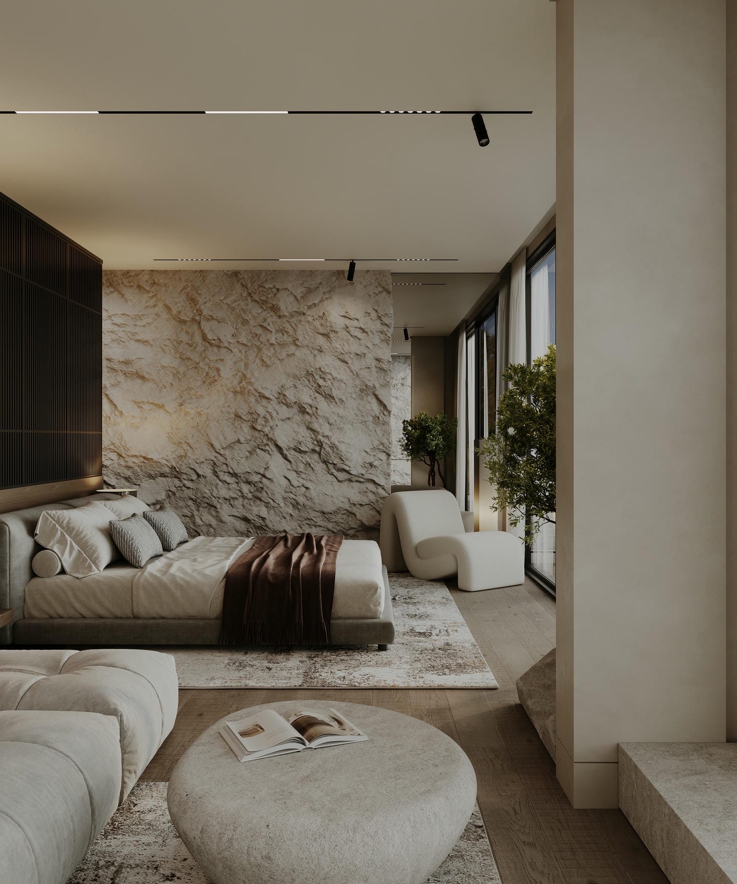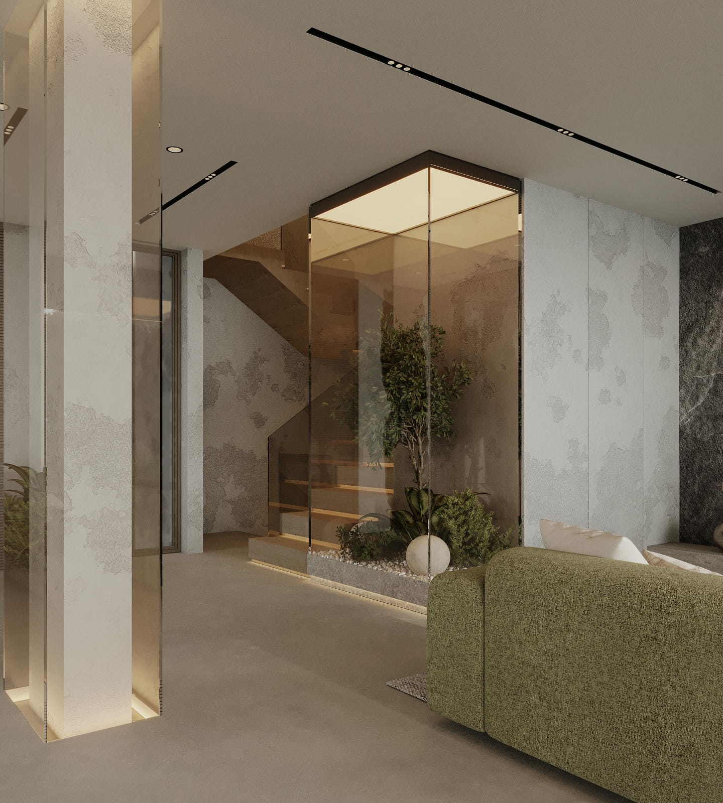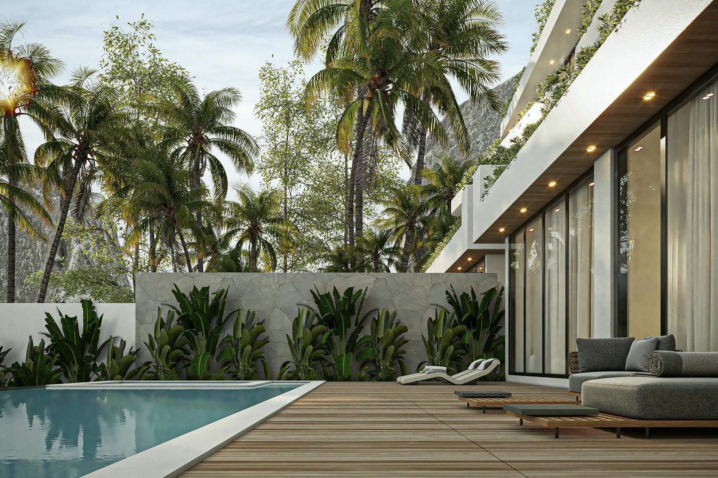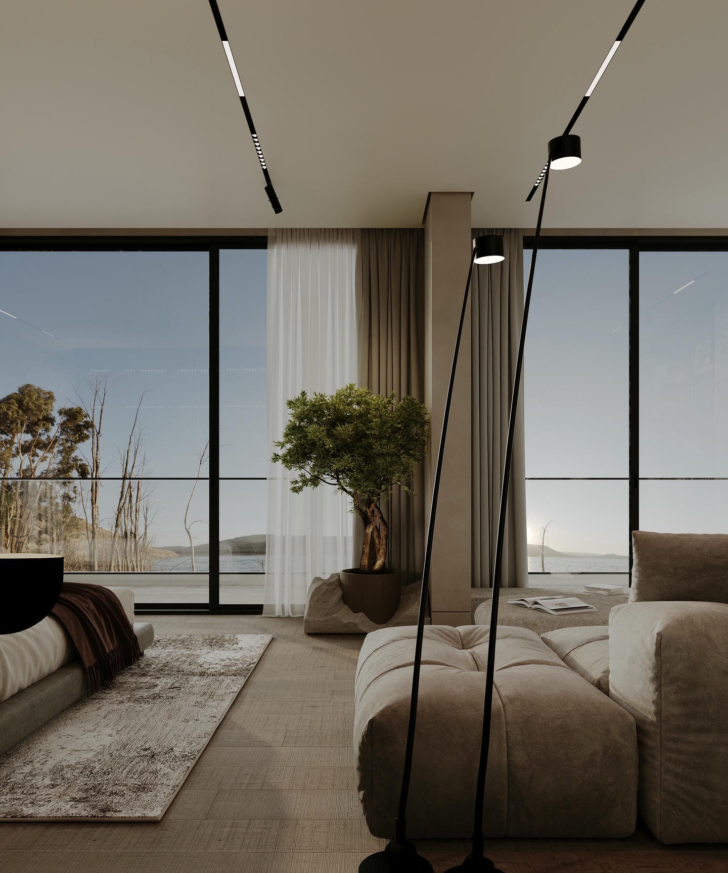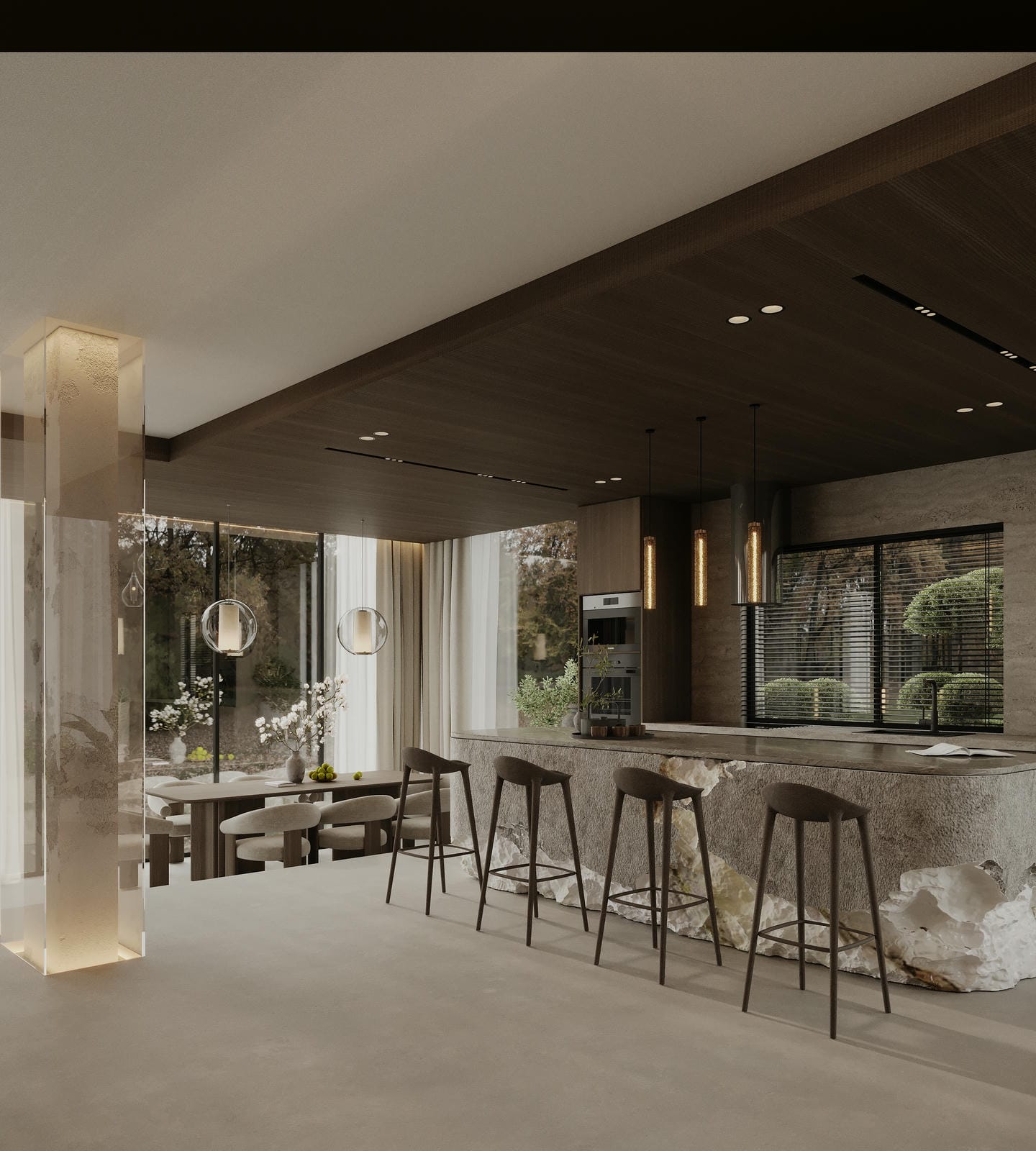 L’intérieur de la villa incarne parfaitement le minimalisme tropical moderne. L’espace de vie ouvert s’harmonise avec une palette de tons neutres, des textures élégantes et des baies vitrées du sol au plafond qui laissent entrer la lumière naturelle. Mobilier design, éléments décoratifs subtils et finitions raffinées créent un espace à la fois chic et confortable. Du cinéma maison souterrain à l’incroyable rooftop avec vue sur l’océan, cette villa ne cessera jamais de vous émerveiller.