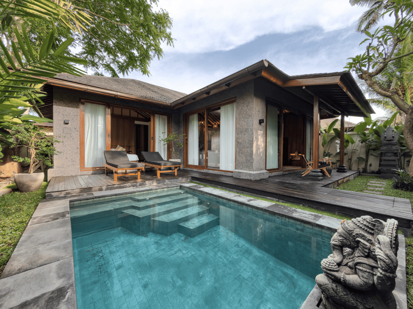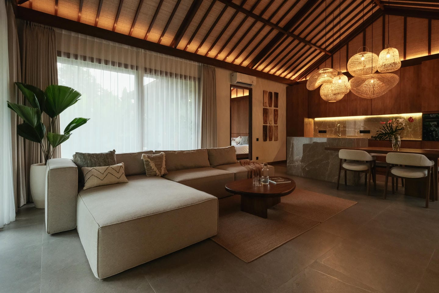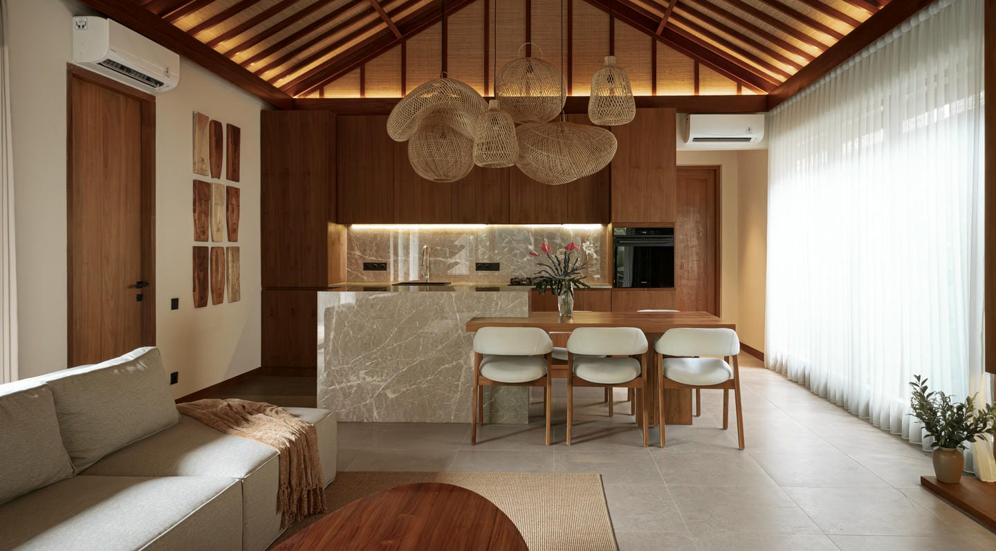 Cette villa de plain-pied propose un agencement fonctionnel et spacieux comprenant une chambre, un séjour lumineux, une cuisine ouverte moderne ainsi qu’une salle de bain privée avec espace dressing. La pièce s’ouvre directement sur le jardin luxuriant et la piscine panoramique privée, créant une harmonie parfaite entre intérieur et extérieur. Conçue dans un style balinais intemporel avec des finitions haut de gamme et des matériaux naturels, la villa allie charme esthétique et confort moderne dans un cadre tropical paisible.