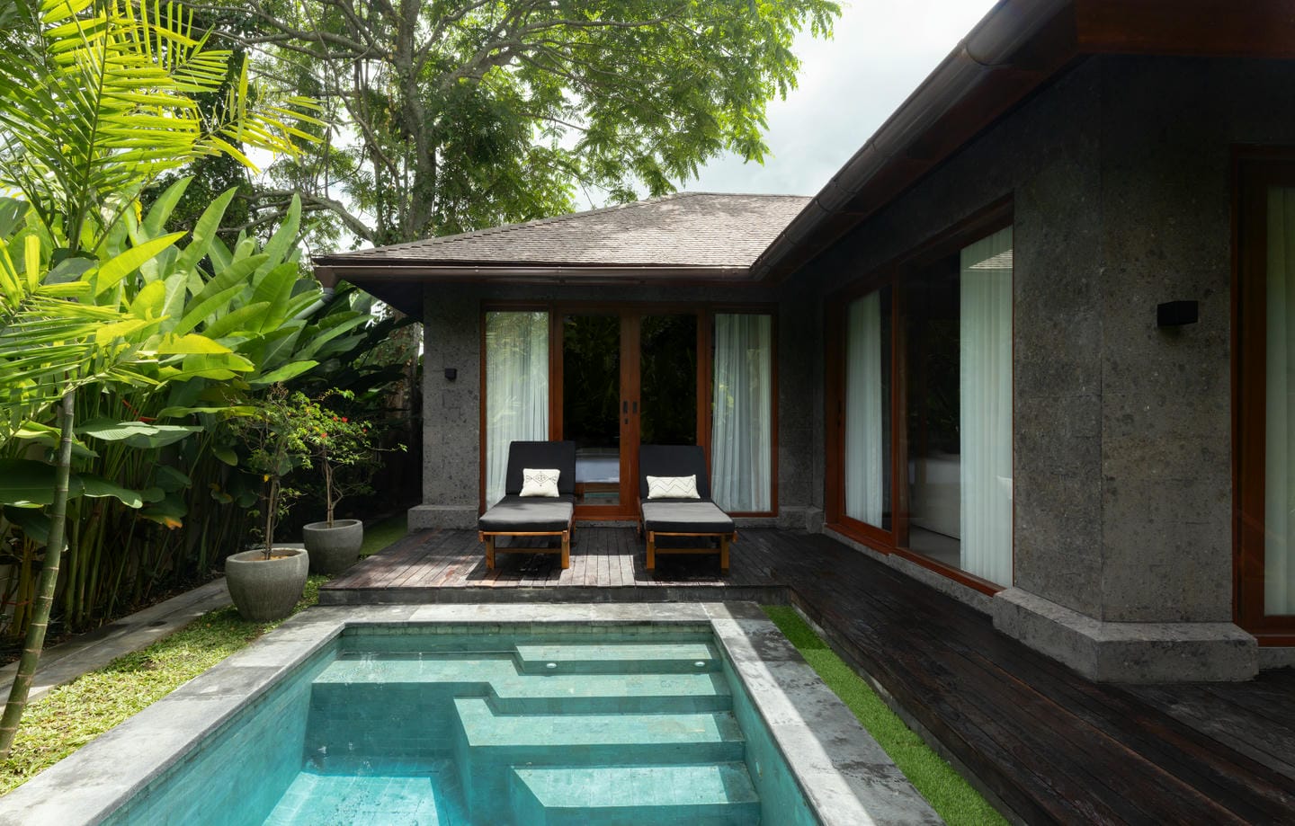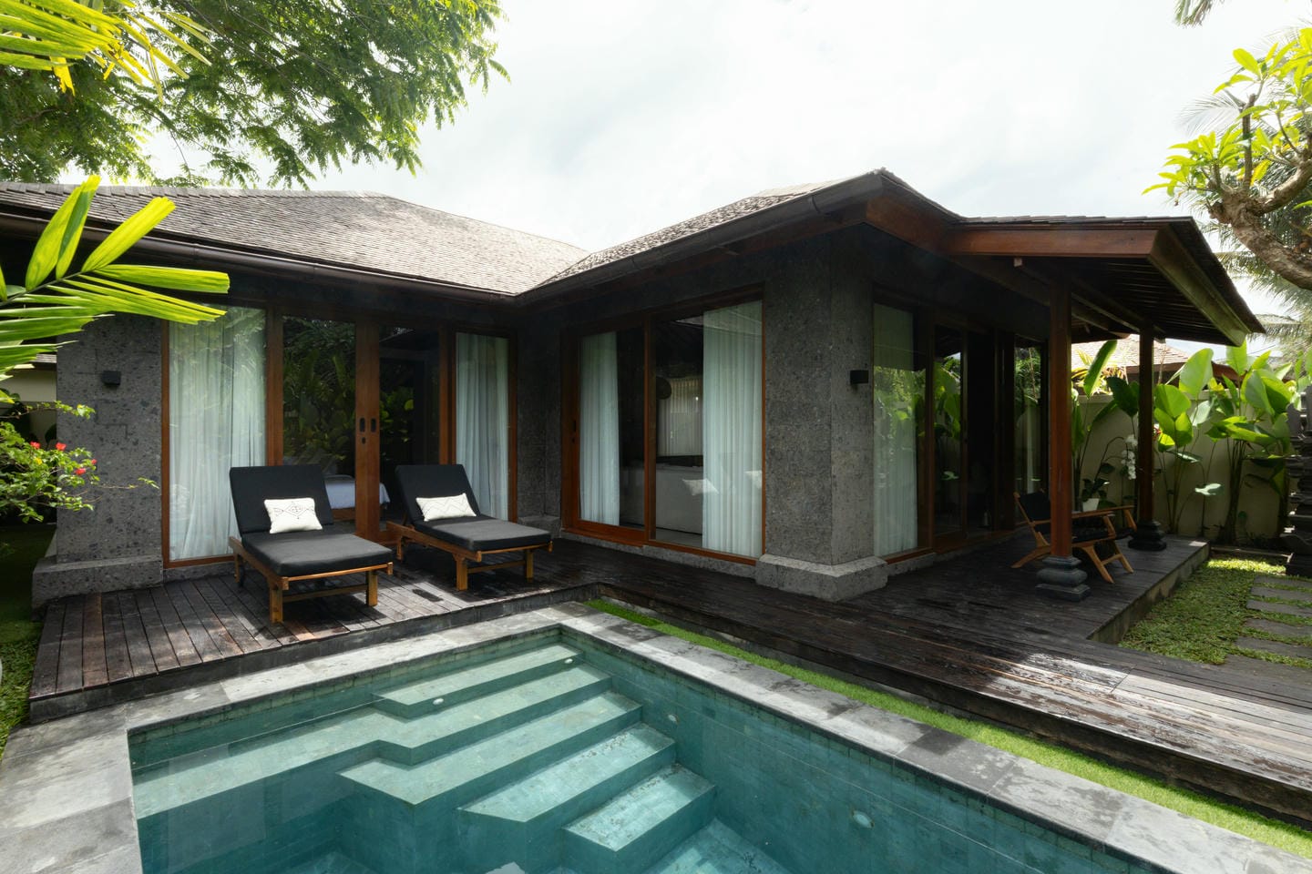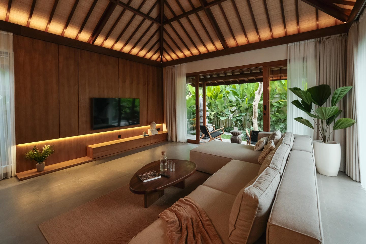 Cette villa de plain-pied propose un agencement fonctionnel et spacieux comprenant une chambre, un séjour lumineux, une cuisine ouverte moderne ainsi qu’une salle de bain privée avec espace dressing. La pièce s’ouvre directement sur le jardin luxuriant et la piscine panoramique privée, créant une harmonie parfaite entre intérieur et extérieur. Conçue dans un style balinais intemporel avec des finitions haut de gamme et des matériaux naturels, la villa allie charme esthétique et confort moderne dans un cadre tropical paisible.
