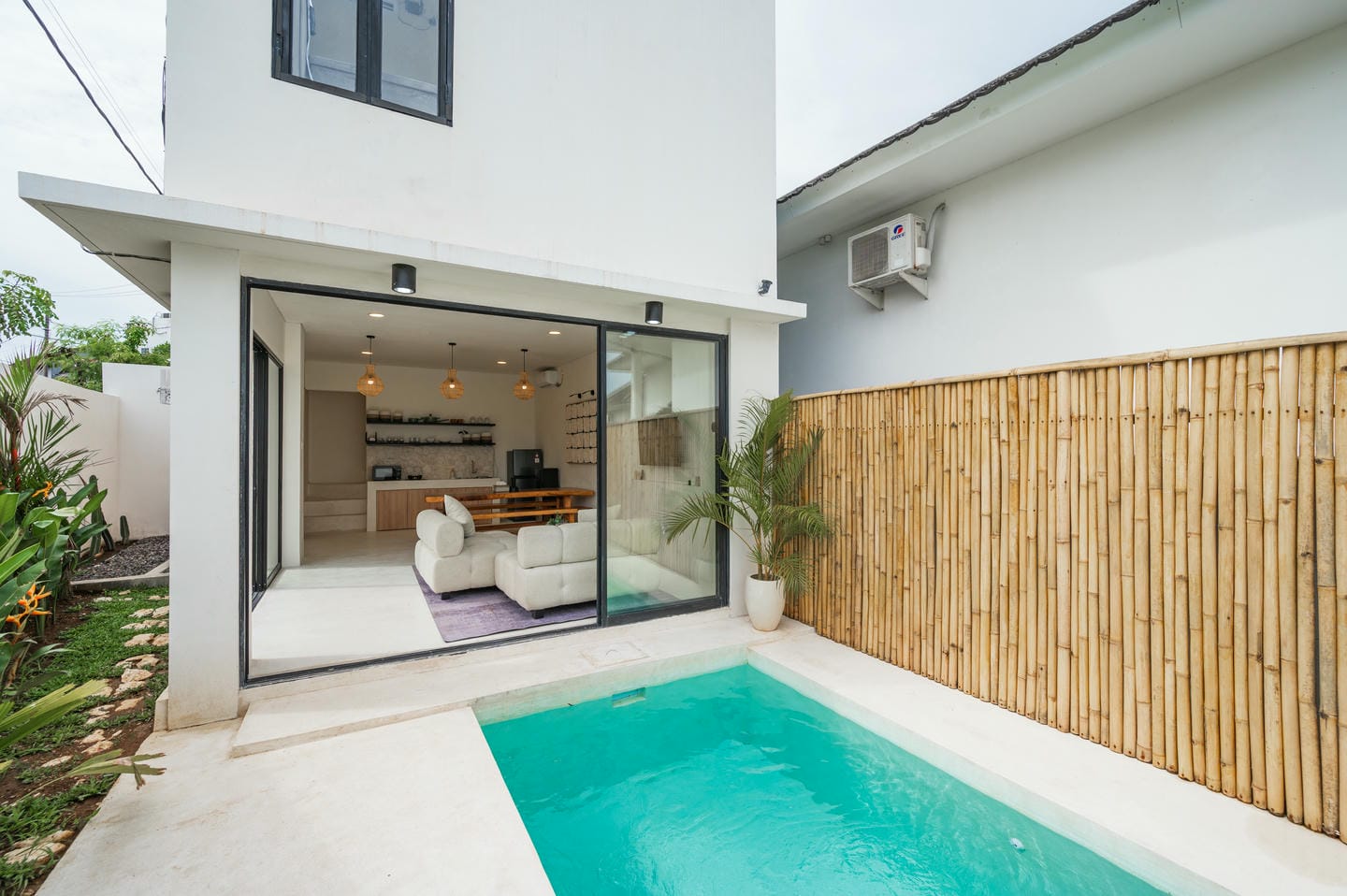 À l’extérieur, profitez d’une piscine privée entourée de clôtures en bambou et de plantes tropicales luxuriantes, ainsi que d’une douche extérieure, pour une expérience de vie balinaise authentique.