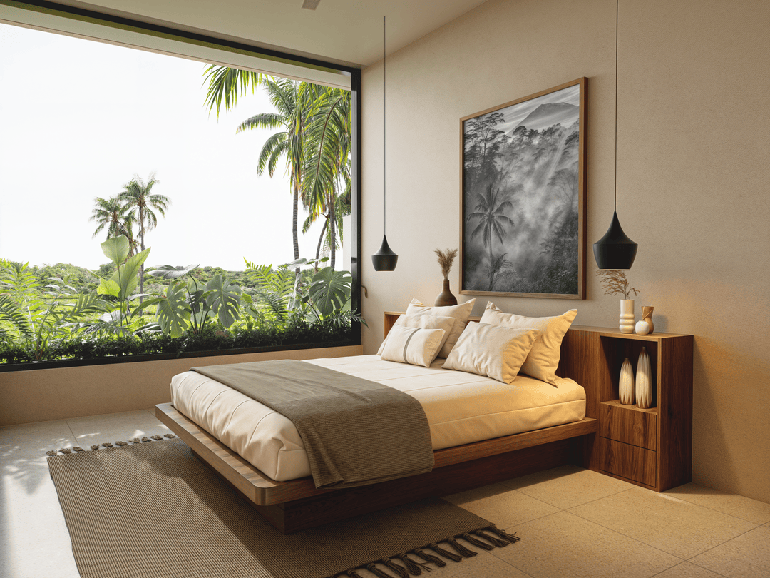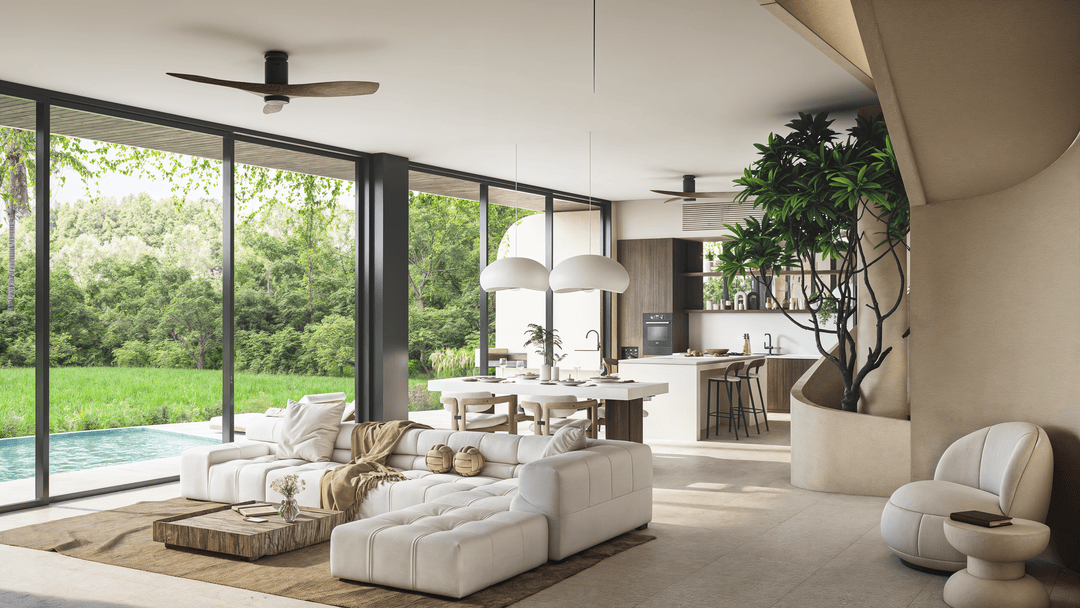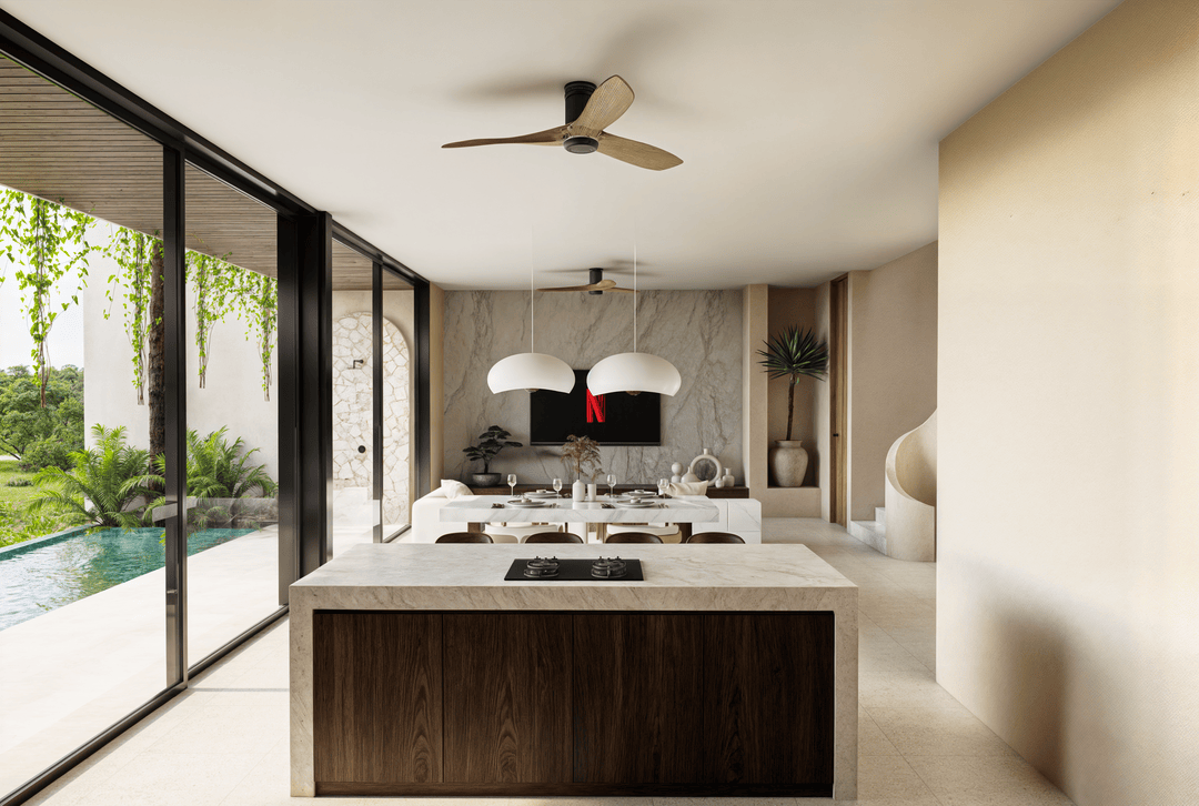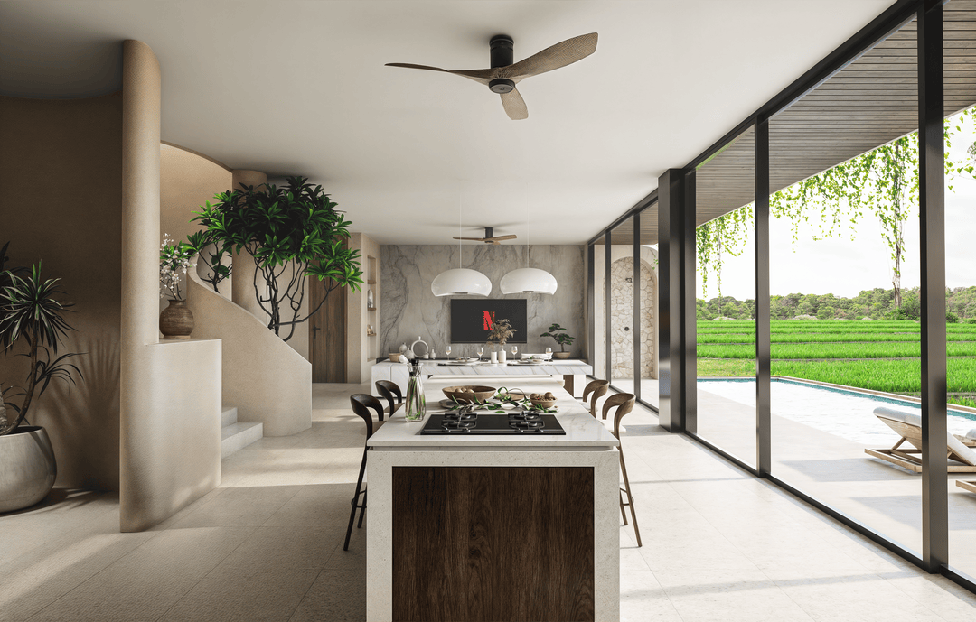 Cette villa minimaliste avec une touche d’élégance tropicale est proposée en off-plan. Elle comprend 2 chambres avec salles de bain ensuite, dont une suite parentale avec baignoire. Le séjour fermé est agrémenté de grandes baies vitrées et de hauts plafonds, apportant une atmosphère lumineuse et aérée. Une salle d’eau, une cuisine entièrement équipée, un espace repas et un îlot central complètent la maison, alliant confort et sophistication moderne.