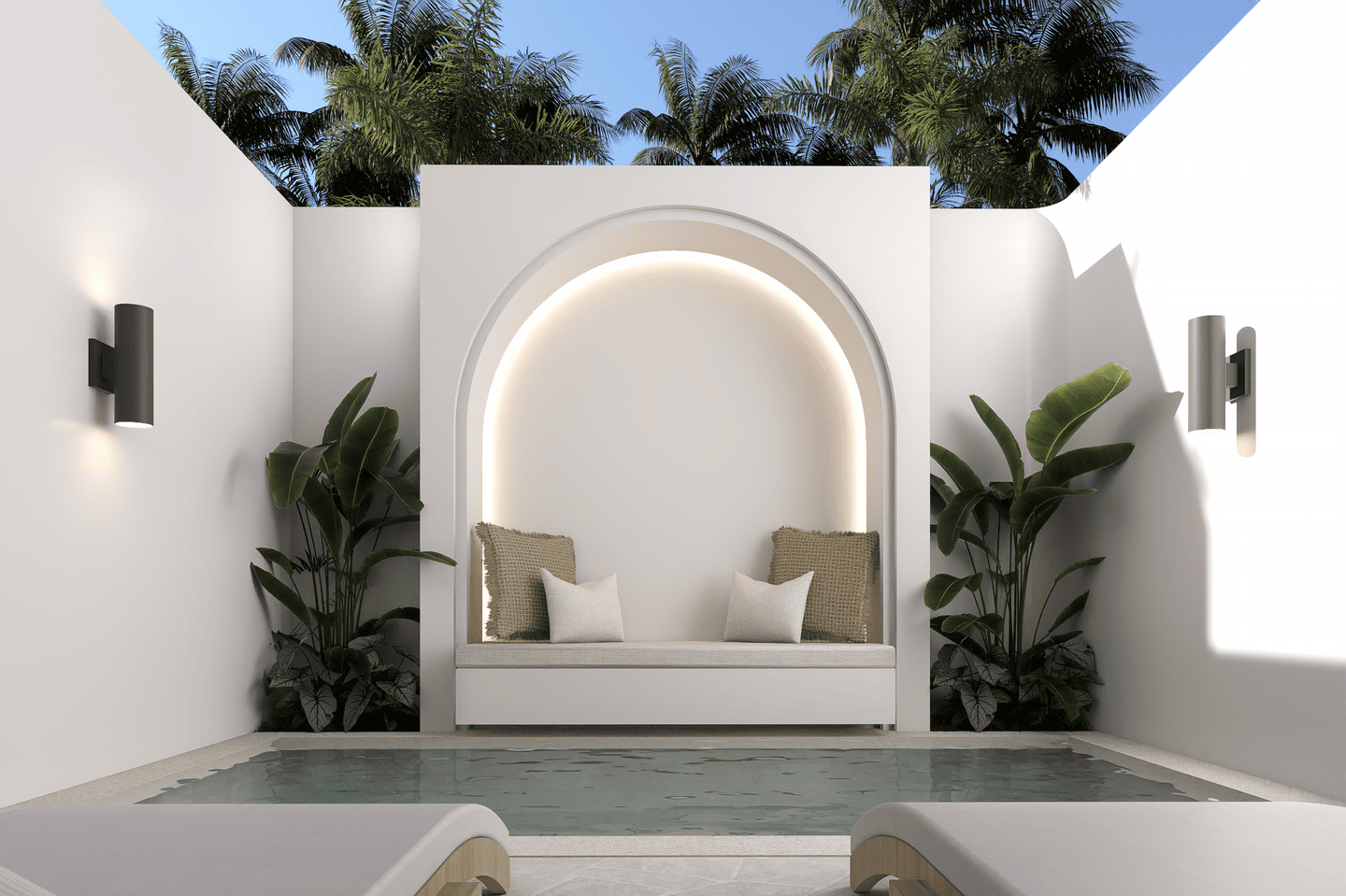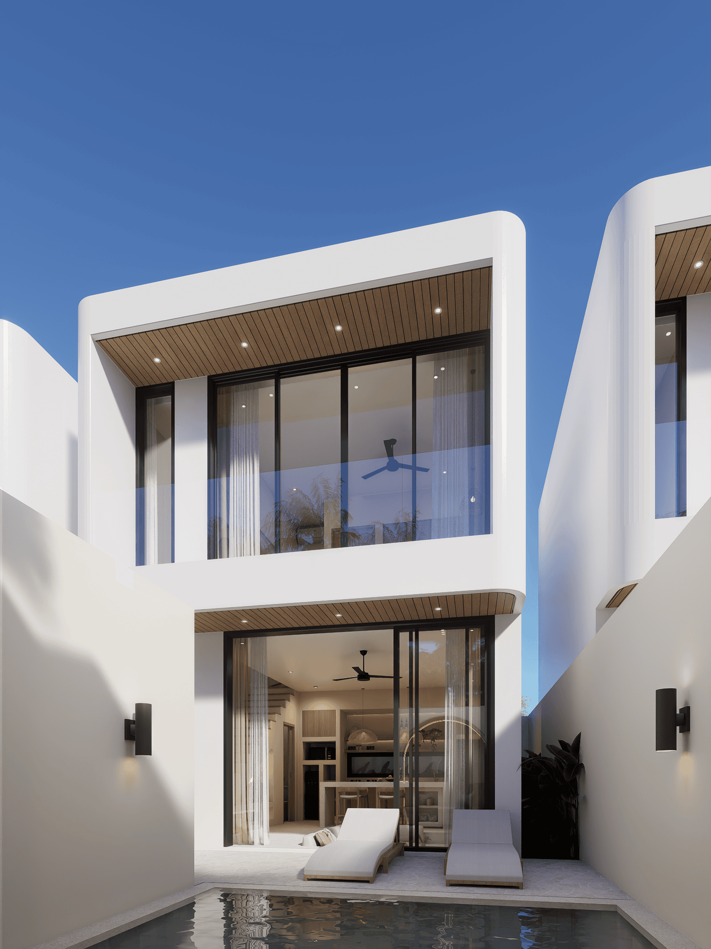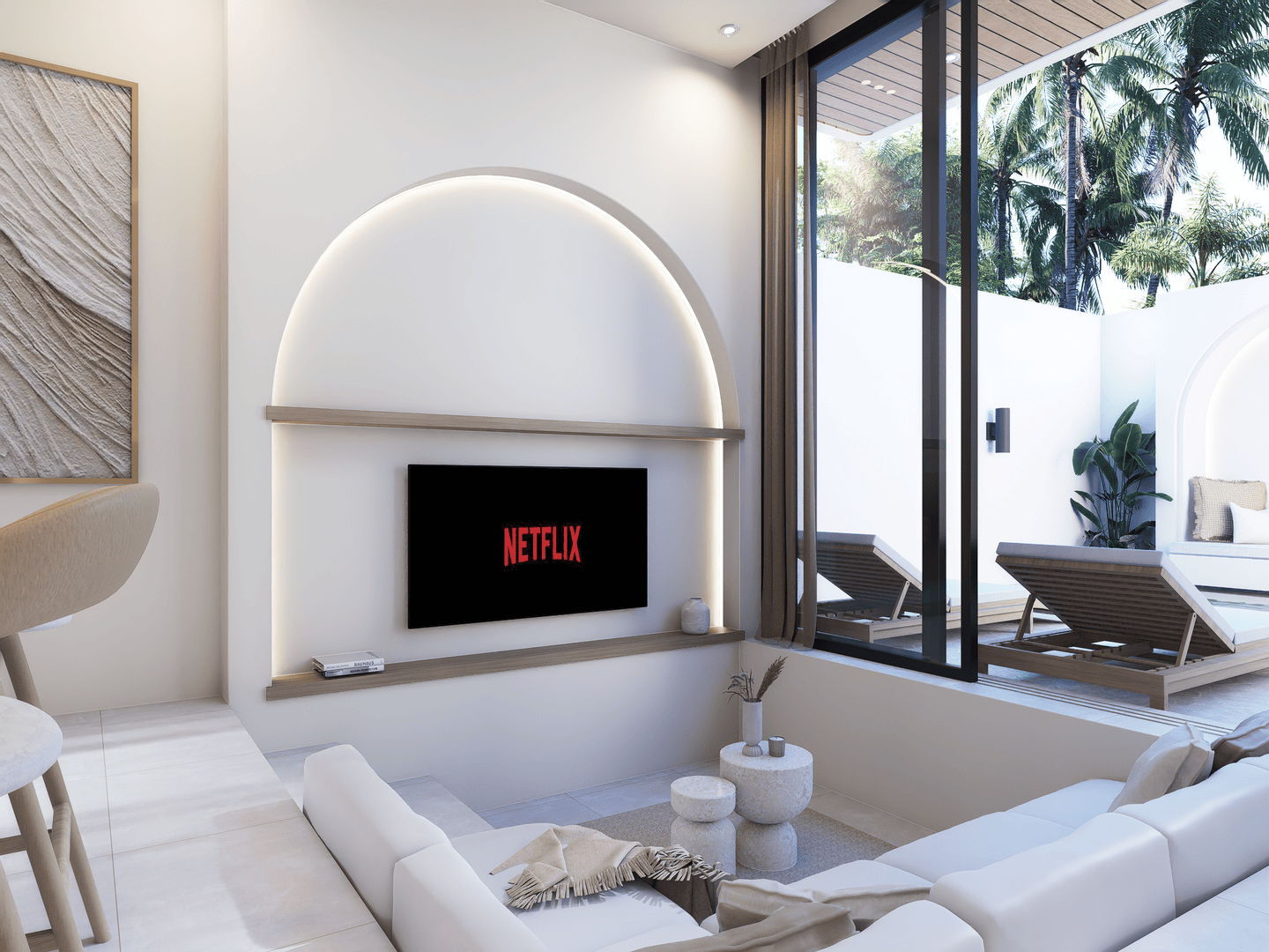 À l’extérieur, profitez d’une piscine privée entourée d’un espace lounge et de transats — un cadre idéal pour se détendre sous le soleil de Bali.