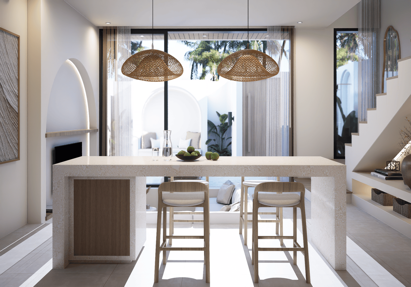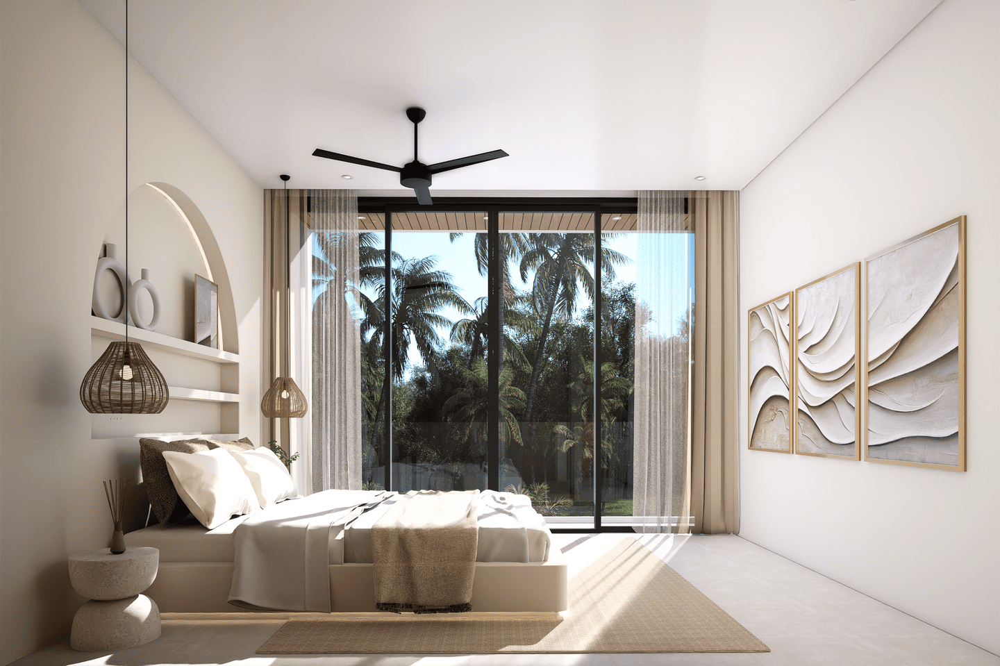 Cette villa sur plan comprend une chambre avec salle de bain attenante, un élégant salon en contrebas et de grandes baies vitrées laissant entrer la lumière naturelle, créant une atmosphère ouverte et lumineuse. Elle est entièrement meublée et équipée d’une cuisine moderne ainsi que d’une salle d’eau pour plus de commodité.