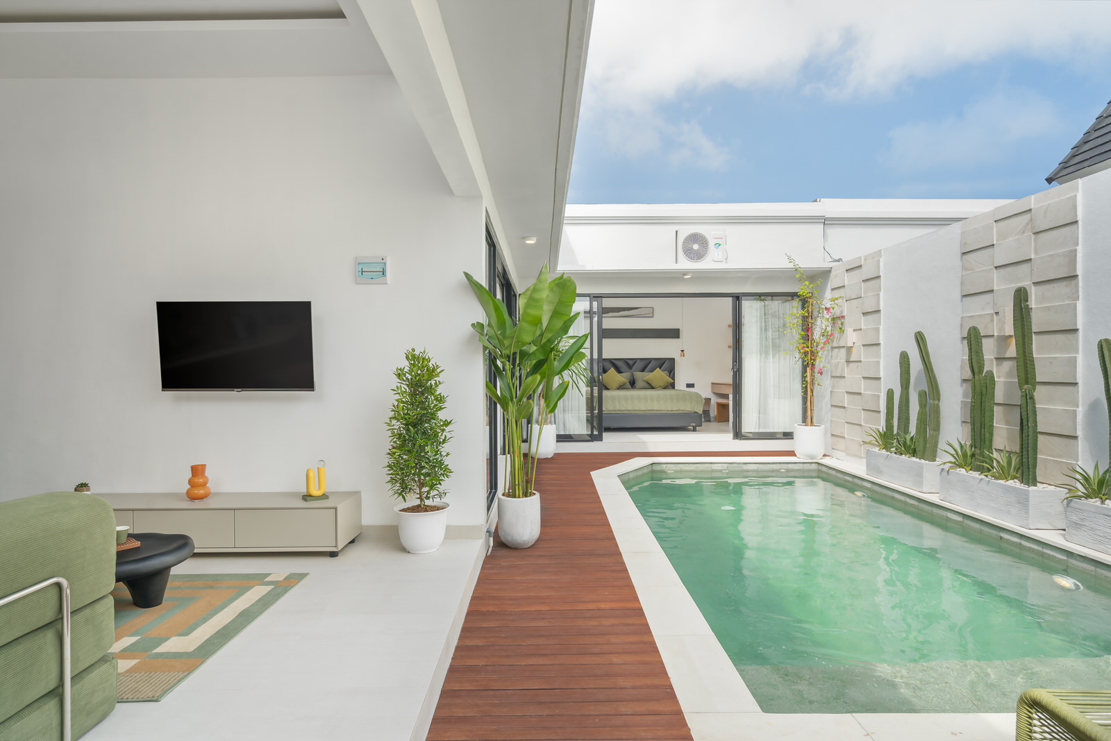 Idéalement située au cœur de Seminyak, cette villa de deux chambres offre un accès facile aux meilleurs cafés, boutiques et lieux de vie nocturne de Bali. La plage est à seulement quelques minutes, ce qui en fait le lieu idéal pour ceux qui souhaitent profiter à la fois de la détente et de l’atmosphère animée de l’île.