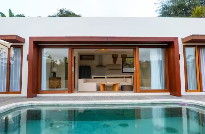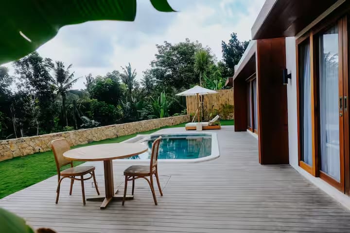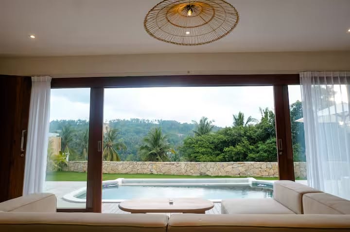 Cette villa est un refuge tropical unique, parfait pour ceux qui recherchent une combinaison de design contemporain, de beauté naturelle et de couchers de soleil enchanteurs sur les collines de Kuta, Lombok.