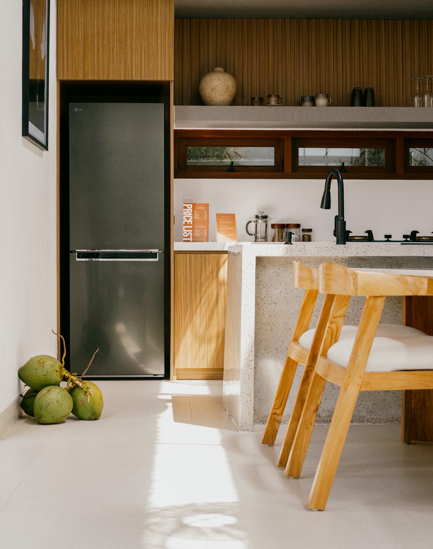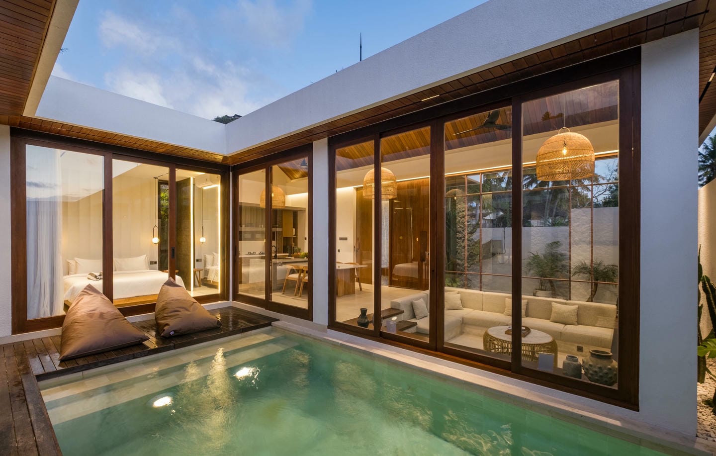 Proposée en pleine propriété (freehold) et vendue entièrement meublée, cette villa de plain-pied présente un design tropical moderne avec des espaces de vie ouverts, des matériaux naturels et de hauts plafonds inclinés qui optimisent la lumière naturelle et la circulation de l’air. La cuisine et le séjour en contrebas créent une circulation fluide et harmonieuse. La villa comprend deux chambres avec salles de bains privatives, chacune dotée de baies vitrées du sol au plafond offrant une vue sur des éléments extérieurs, ainsi qu’une piscine privée située au cœur de la propriété, pensée pour la détente et un excellent potentiel locatif.