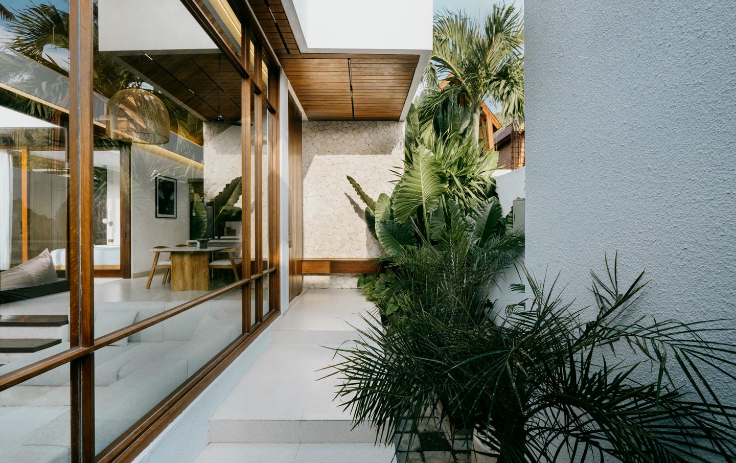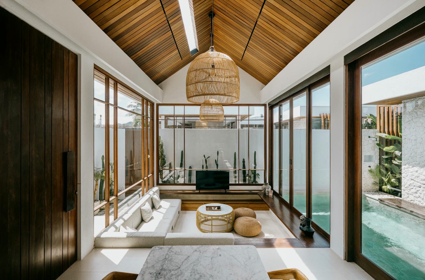 Le design tropical moderne de plain-pied, entièrement meublé, avec piscine privée et une parfaite harmonie entre intérieur et extérieur.